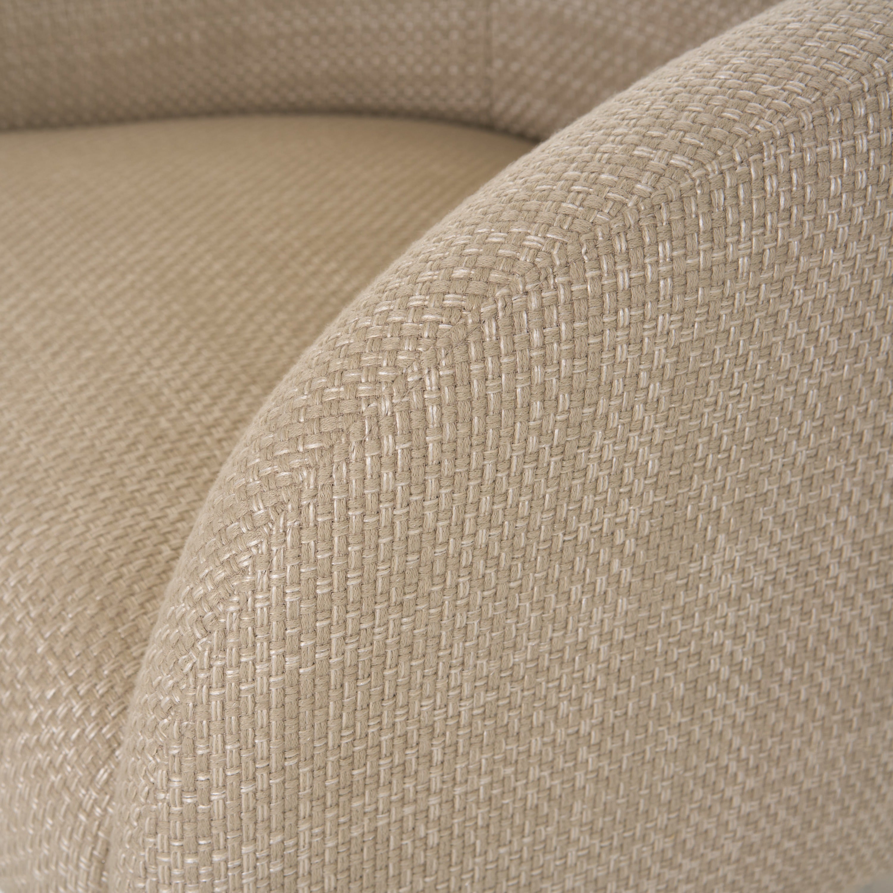 The Modrest Halton Accent Chair combines contemporary style, plush comfort, and quality craftsmanship. Upholstered in a durable beige polyester blend fabric, it complements various interior aesthetics. With generously padded foam seat and back, solid ash frame, and elegant round arms, this chair is both inviting and stable. Minimal assembly is required, making it a hassle-free addition to your living space.