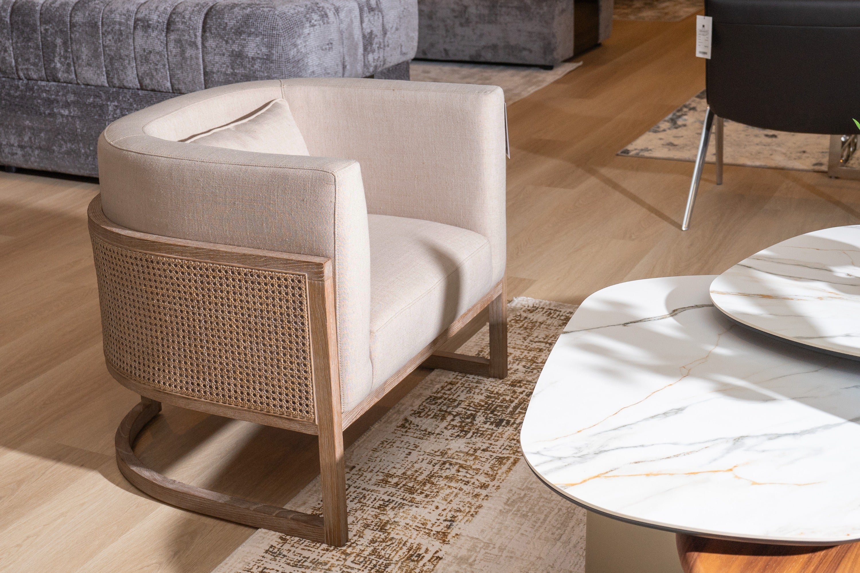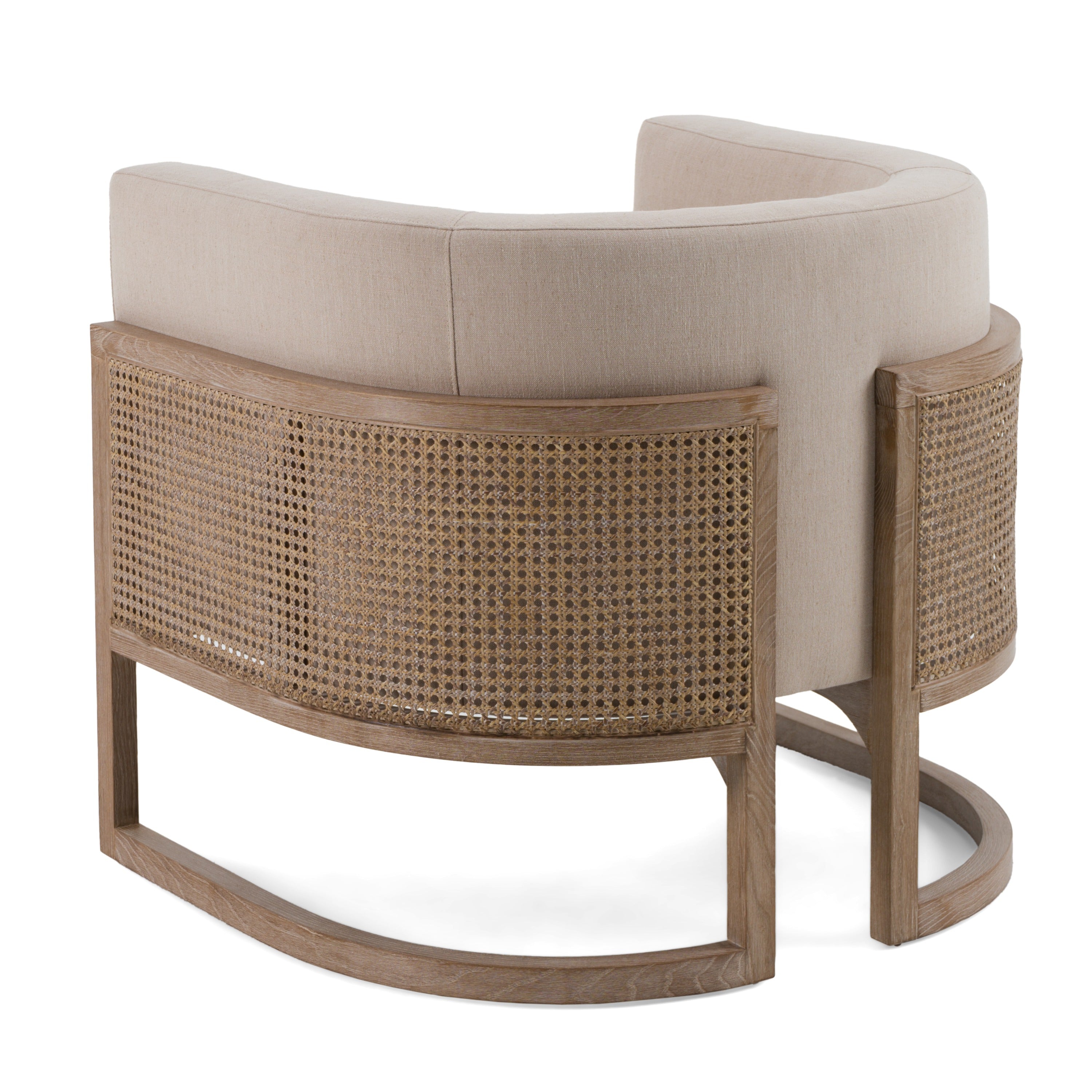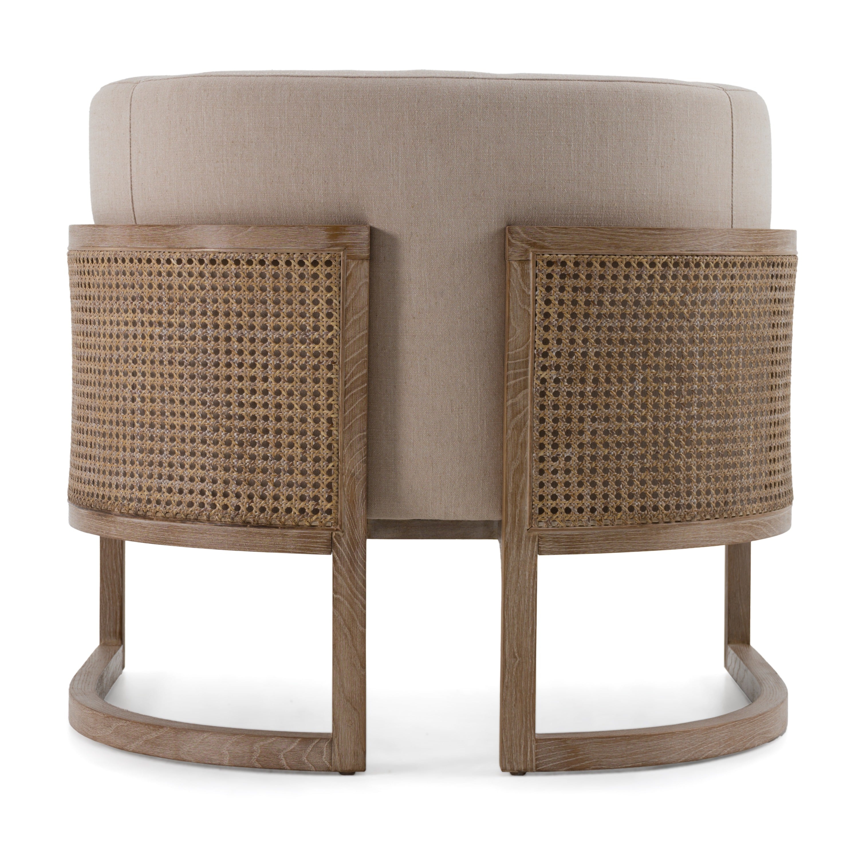 The Modrest Haney Accent Chair combines modern aesthetics with comfort. Upholstered in grey polyester fabric, this chair features a cushion back and square arms. Its grey solid oak legs are complemented by a touch of rattan. The seat construction utilizes coil springs, and it comes with a throw pillow for added coziness. With a blend of materials like 54% polyester, 36% VI (viscose), and 10% linen, this chair is both stylish and inviting.