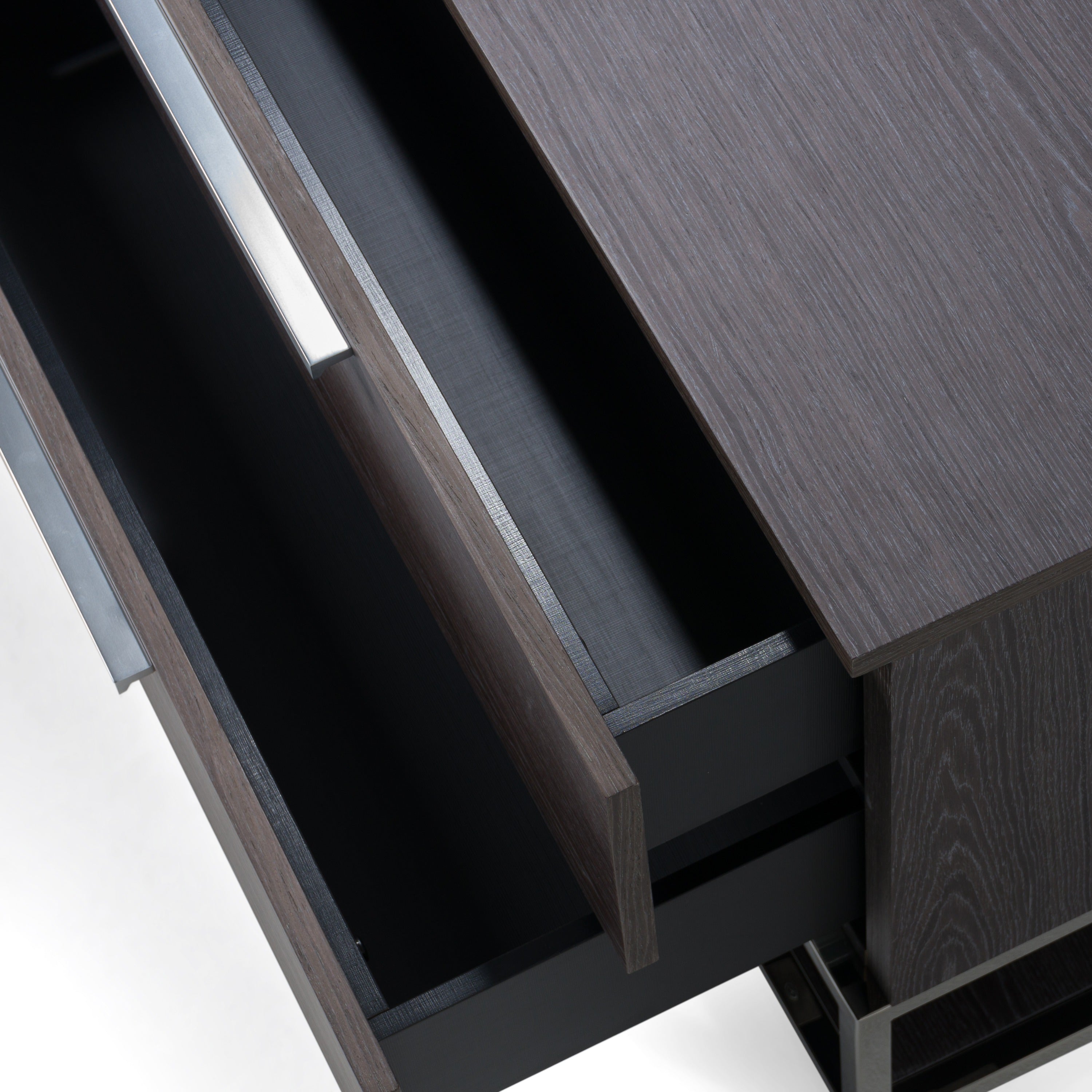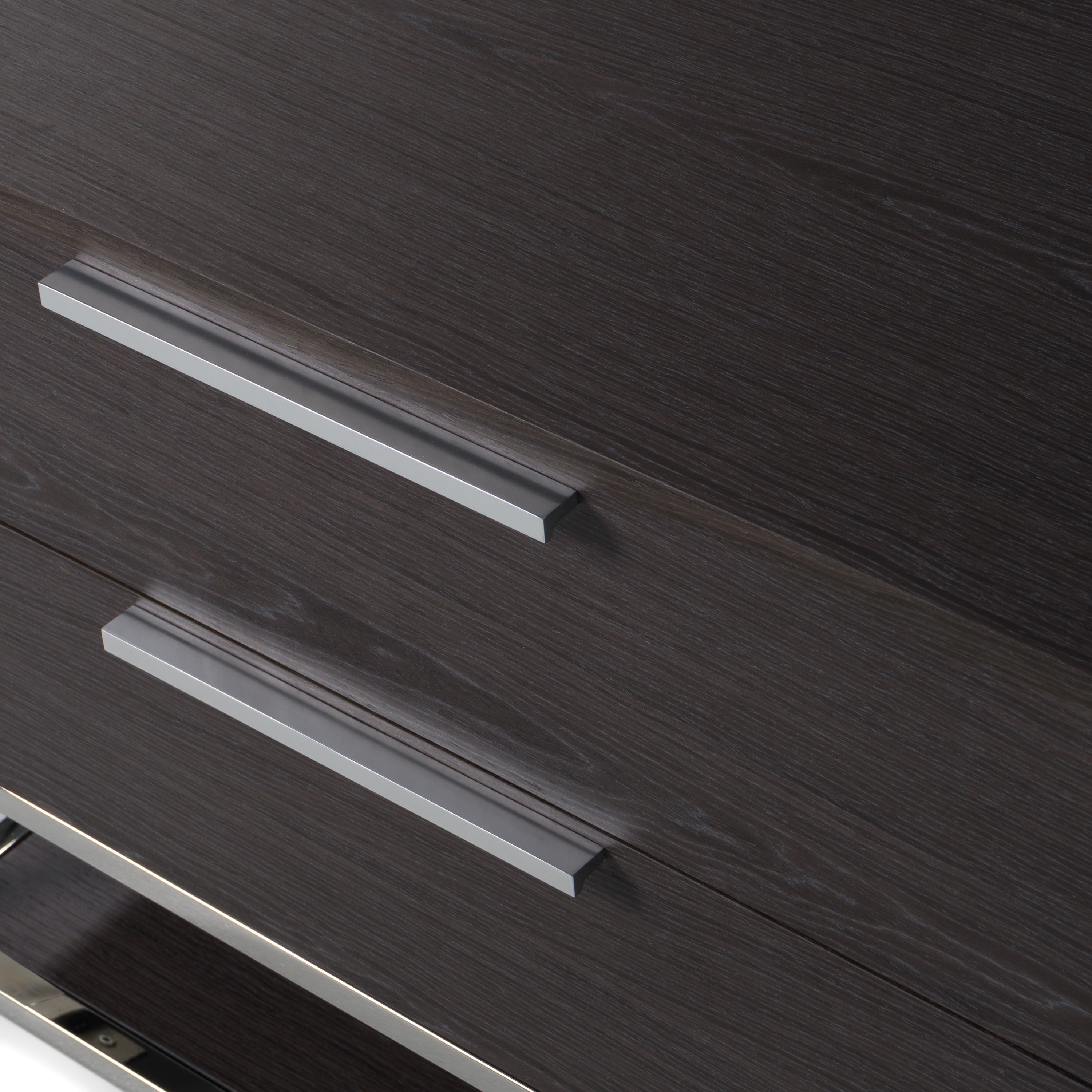 The Modrest Helenora Modern Grey Elm Nightstand embodies understated luxury with its rich grey elm veneer finish and striking stainless steel accents. This nightstand offers a harmonious blend of sleek modern lines and timeless elegance, seamlessly integrating into contemporary spaces. With soft-closing drawers and an impeccable attention to detail, it creates a refined yet practical focal point, inviting sophistication and effortless style into your bedroom sanctuary.