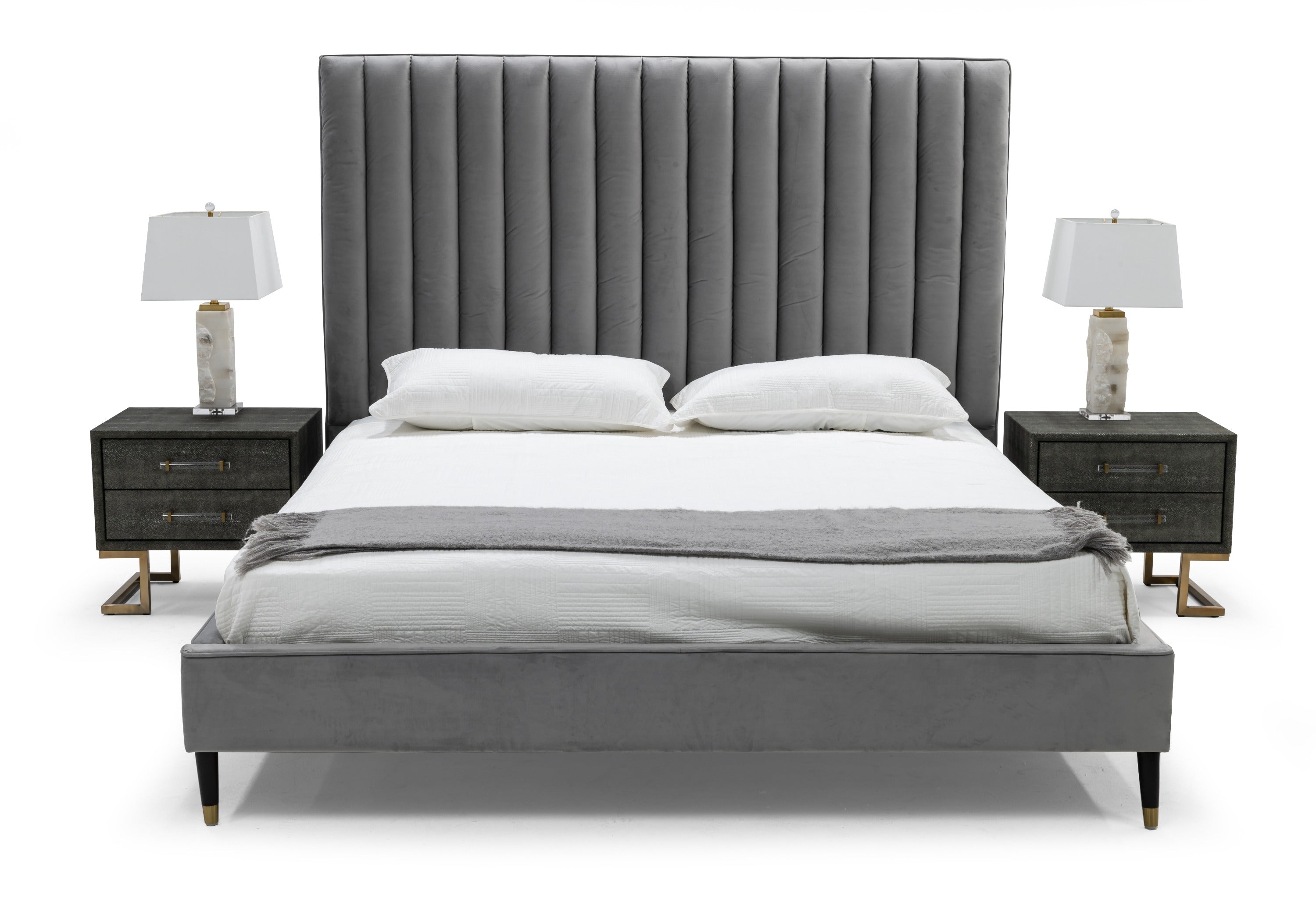 The Hemlock Bed is the perfect grand bed for your glam home. The channel tufting is complimented by the soft velvet upholstery. Adorned with tapered legs that add a touch of mid-century style, this piece is truly versatile.