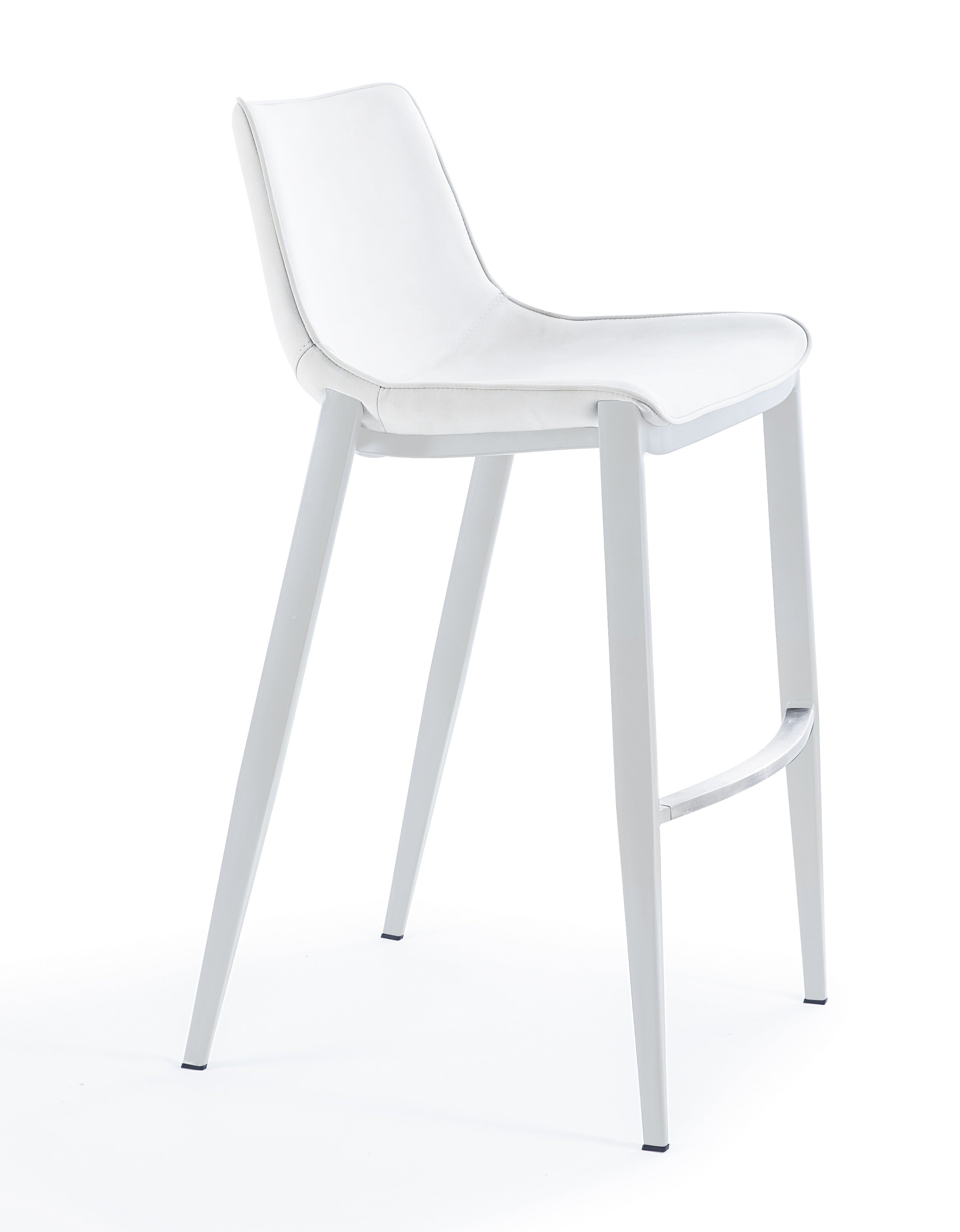 Modern style merges with everyday casual with the Jane Counter Chair. This sleek chair pulls up to the bar perfectly thanks to its slender profile. It's curved seat is comfy and is upholstered in optional faux white leather with seamless stitching. Stainless steel legs come with protective plastic feet to safeguard your flooring from scratches.