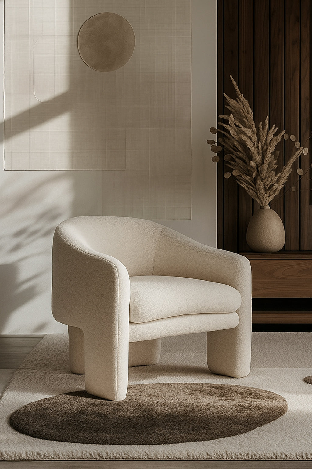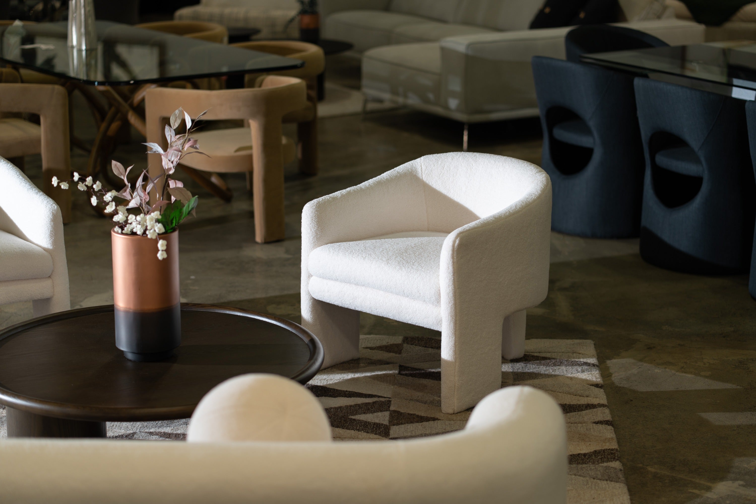 Stylish and chic, the Khan Accent Chair is made from soft cream upholstery that wraps the entire frame. Lounge ready with a wide, low-slung seat.