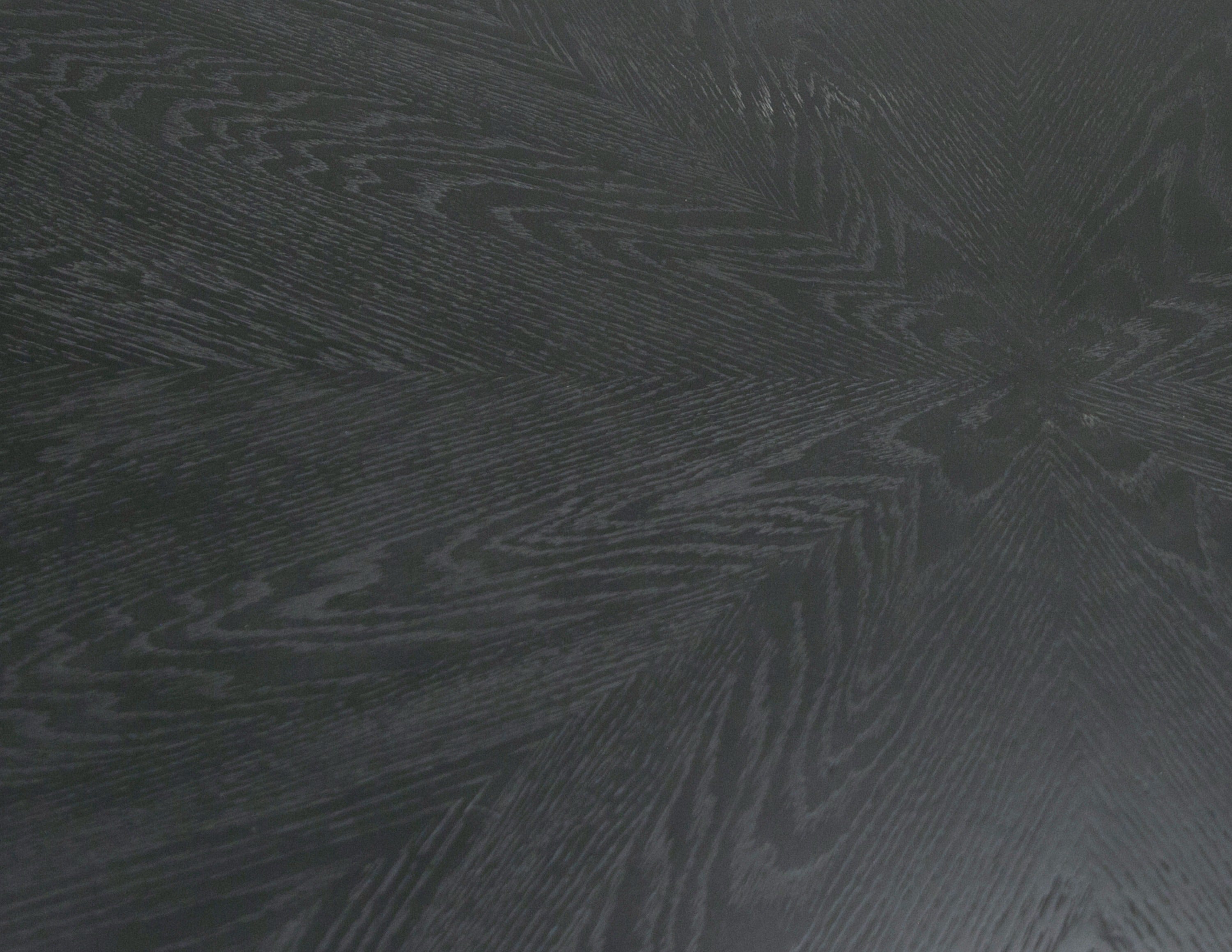 The Lander Modern Mid Black Oak Round Dining Table is a beautiful addition to any dining room. The deep black veneer wood top and tambour pedestal base provide a simple yet stylish look that creates an elegant atmosphere.