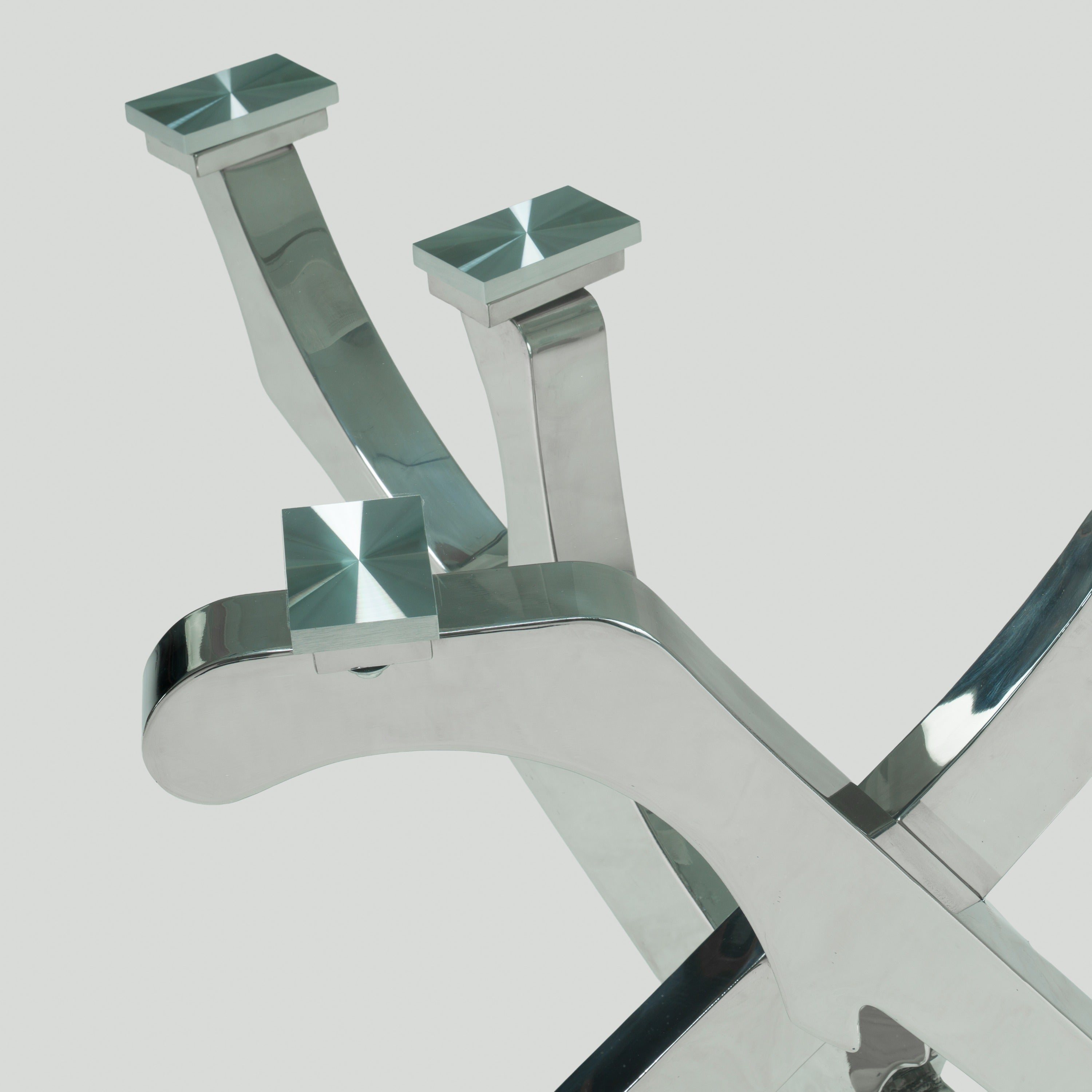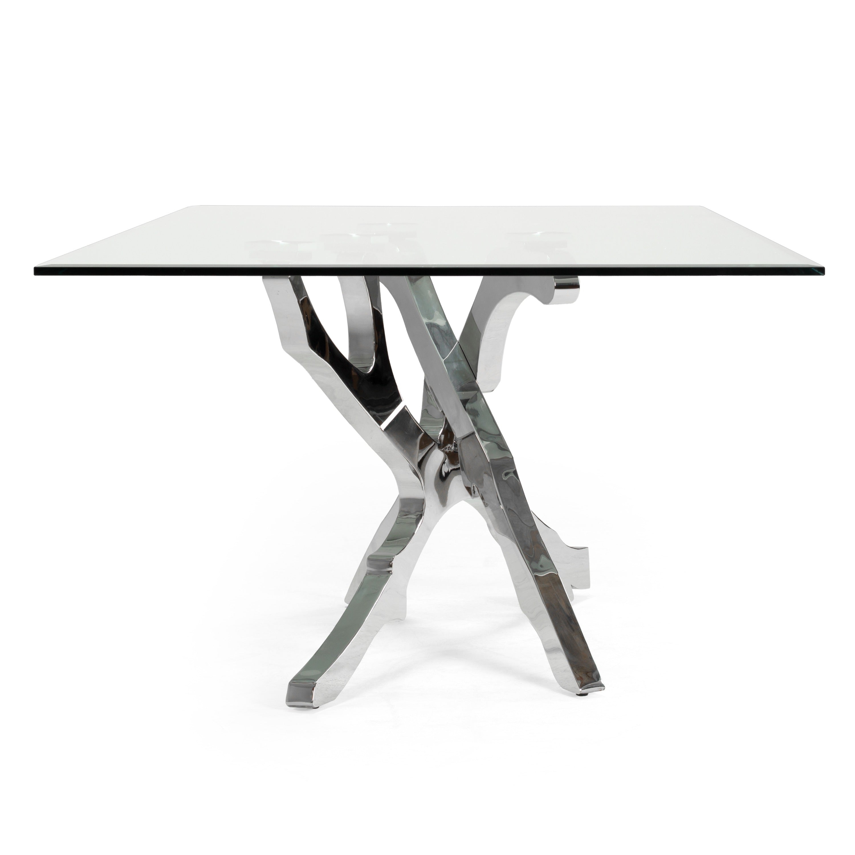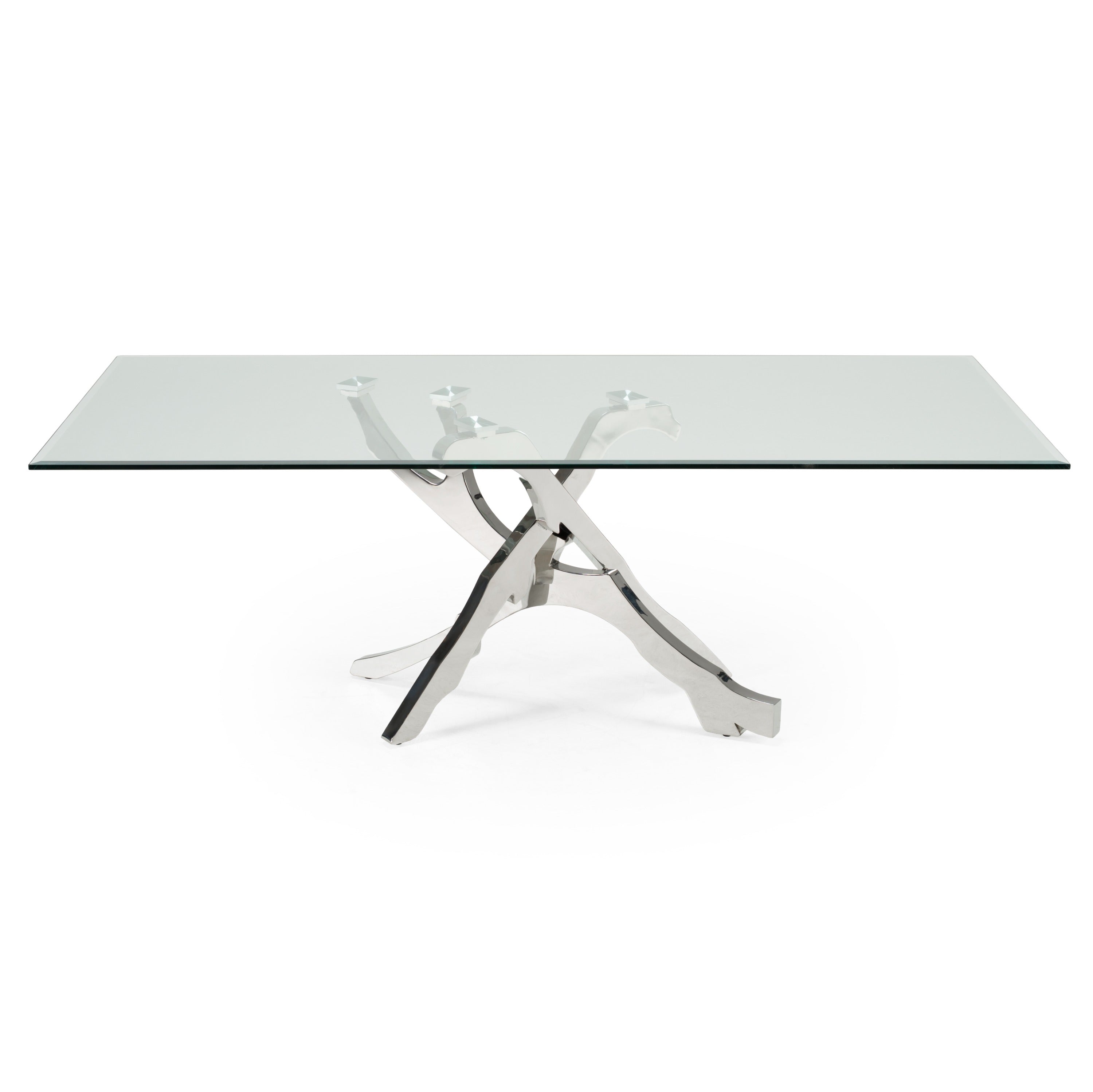The sculptural base of the Legend Dining Table is a marvel of interior styling. The stainless-steel pedestal base twists and turns creating natural and modern interpretive shapes. The strong contrast between the metal and glass top creates drama in any space. Pair it with the full legend collection for a dining experience that will take your breath away.