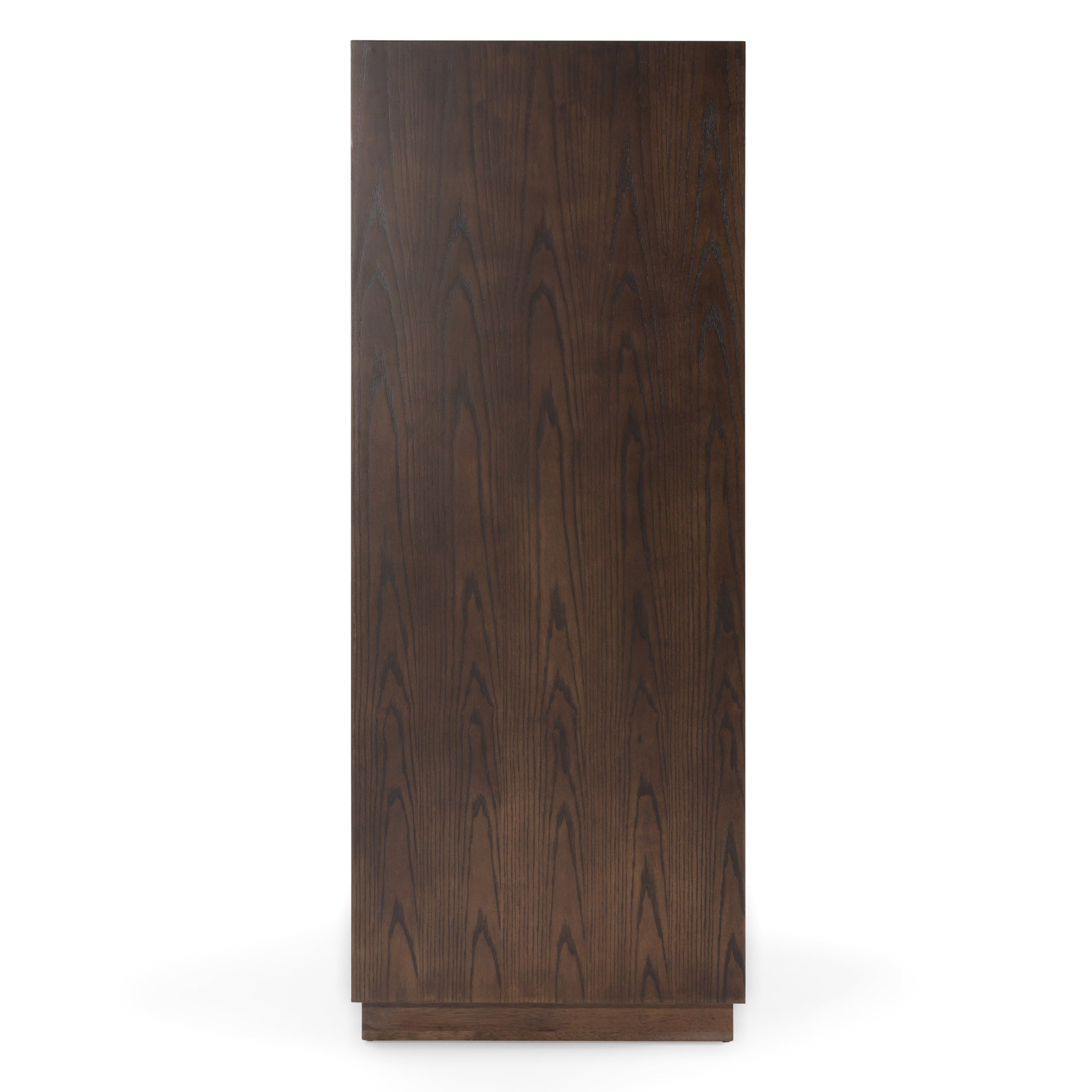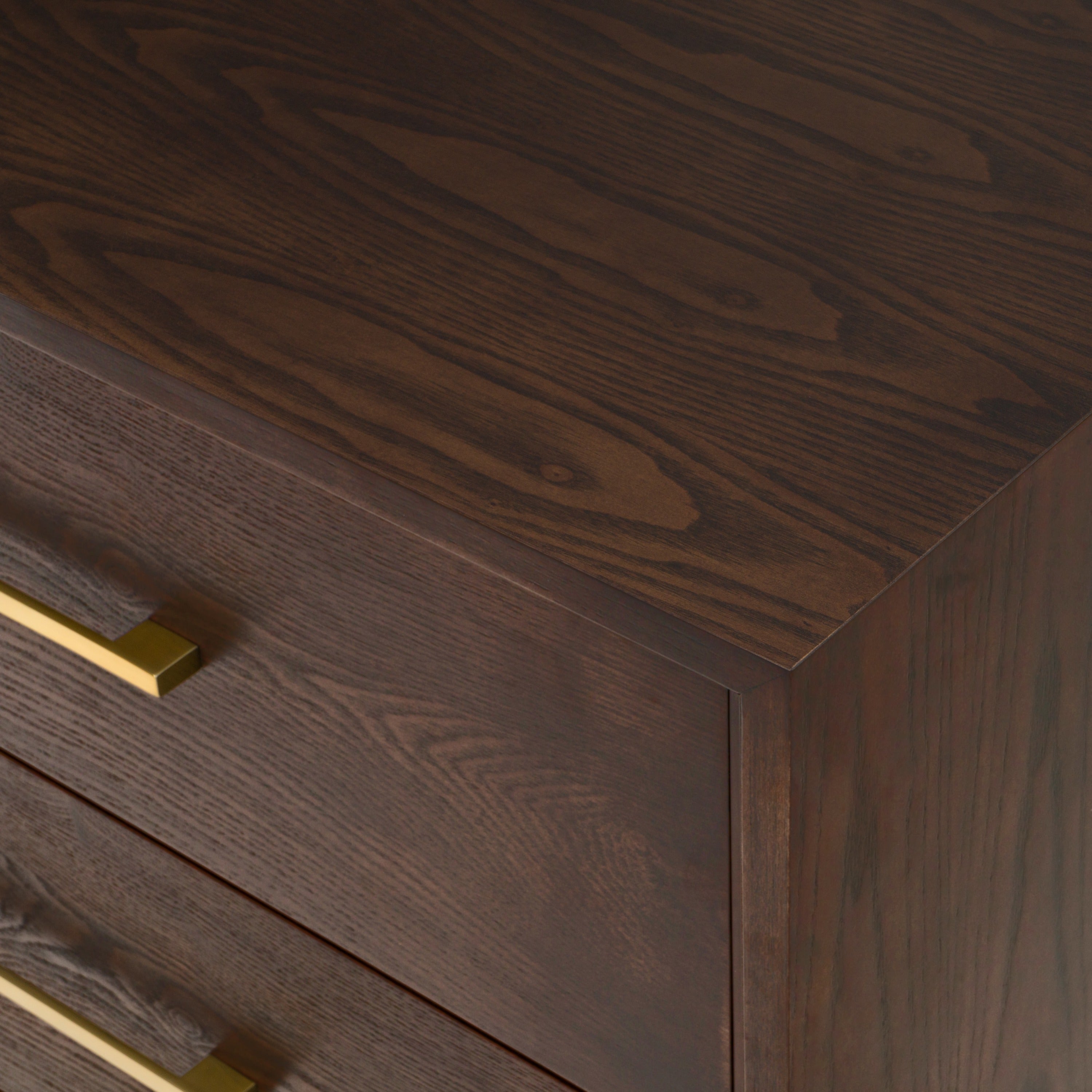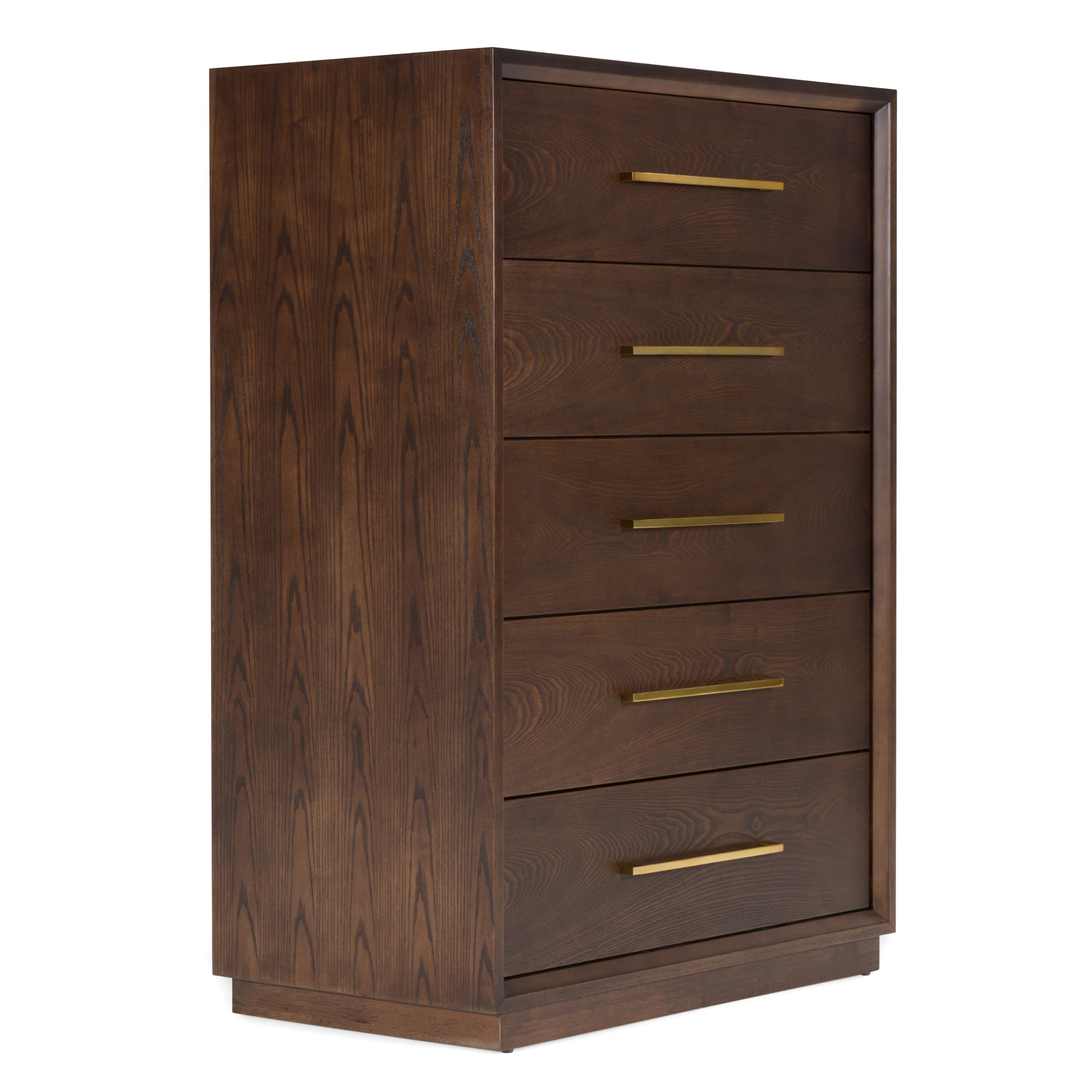 The Modrest Manhattan Contemporary Cherry and Gold Chest is a sophisticated blend of timeless design and modern luxury. Its rich cherry finish is beautifully complemented by sleek gold handles, exuding elegance and refined craftsmanship. With five spacious drawers, this chest offers both style and practicality, making it a statement piece in any bedroom. Perfectly balancing form and function, the Manhattan chest invites a touch of opulence into your home, elevating your space with its bold yet understated allure.
