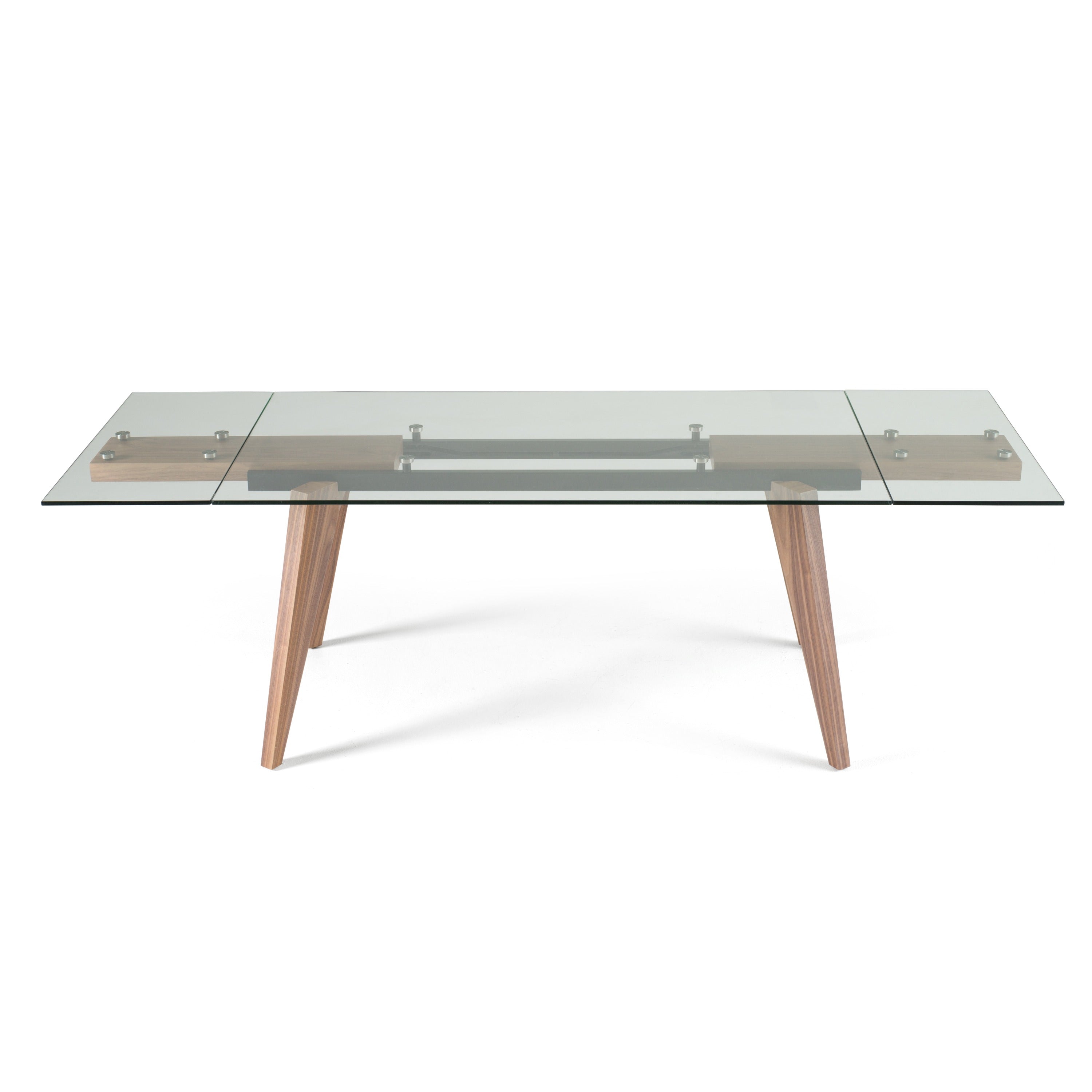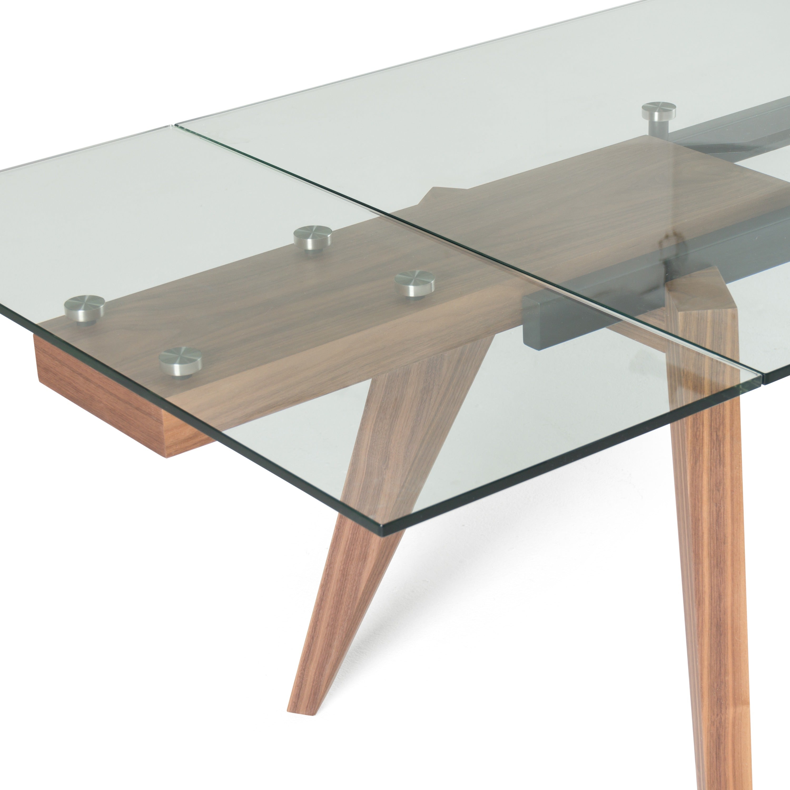 The Modrest Marcus Dining Table exudes modern elegance with its sleek glass top and rich walnut accents. Its minimalist design is enhanced by angular walnut legs that provide a sturdy yet stylish foundation. The extendable feature allows for versatile dining experiences, making it perfect for gatherings or intimate meals. This table beautifully blends functionality and contemporary aesthetics, making it a stunning centerpiece for any dining space. Additionally, it accommodates up to 8 people, ensuring ample seating for friends and family.