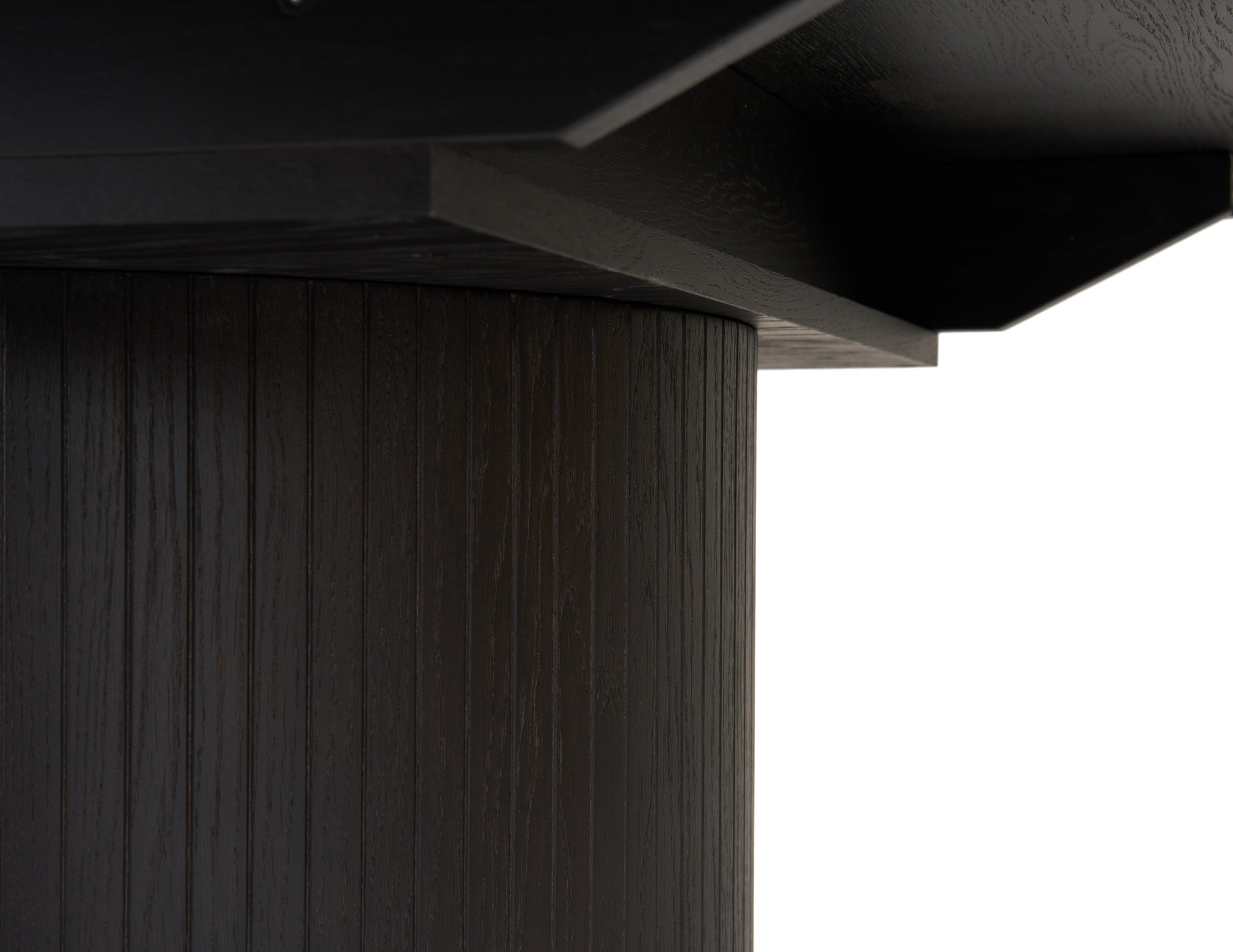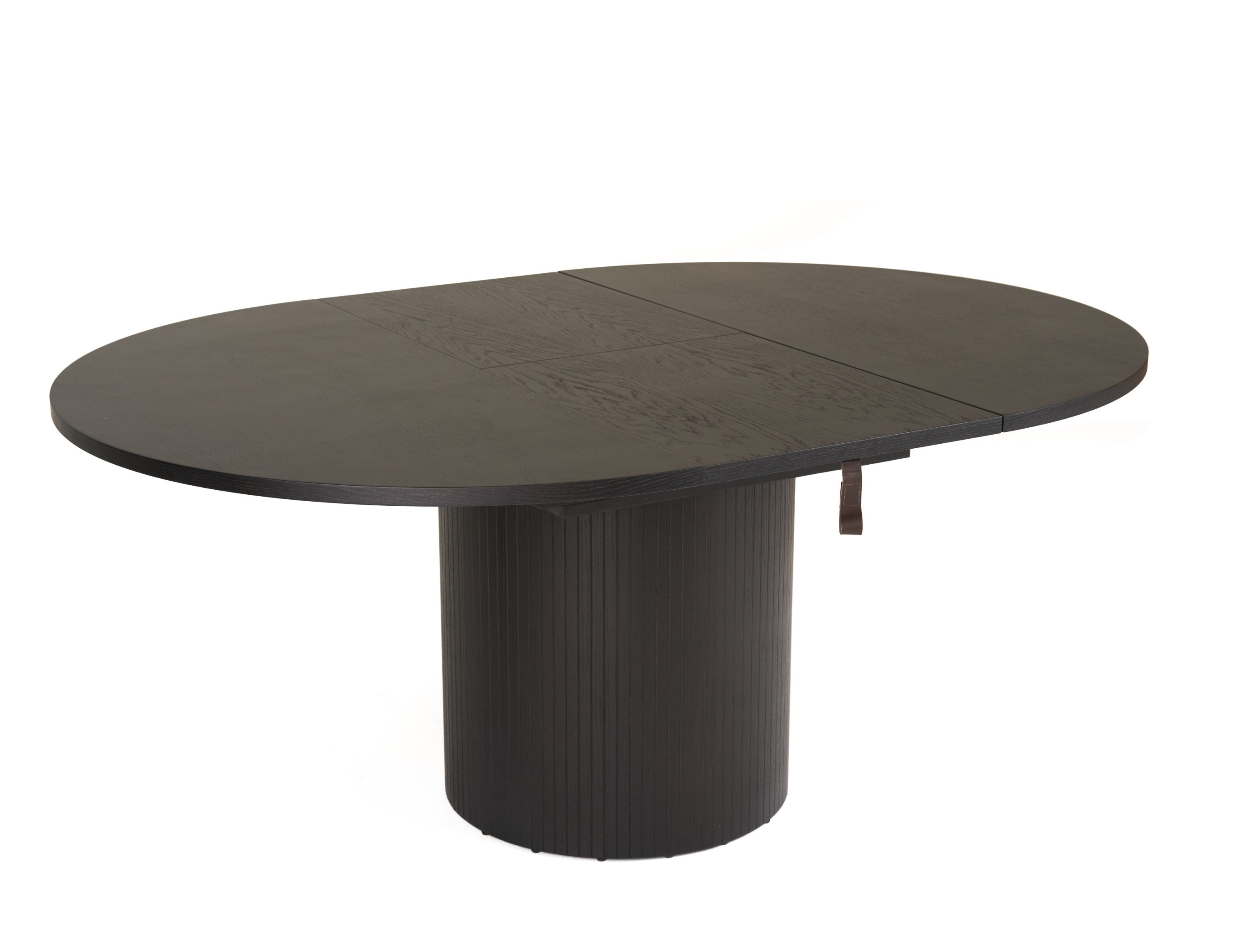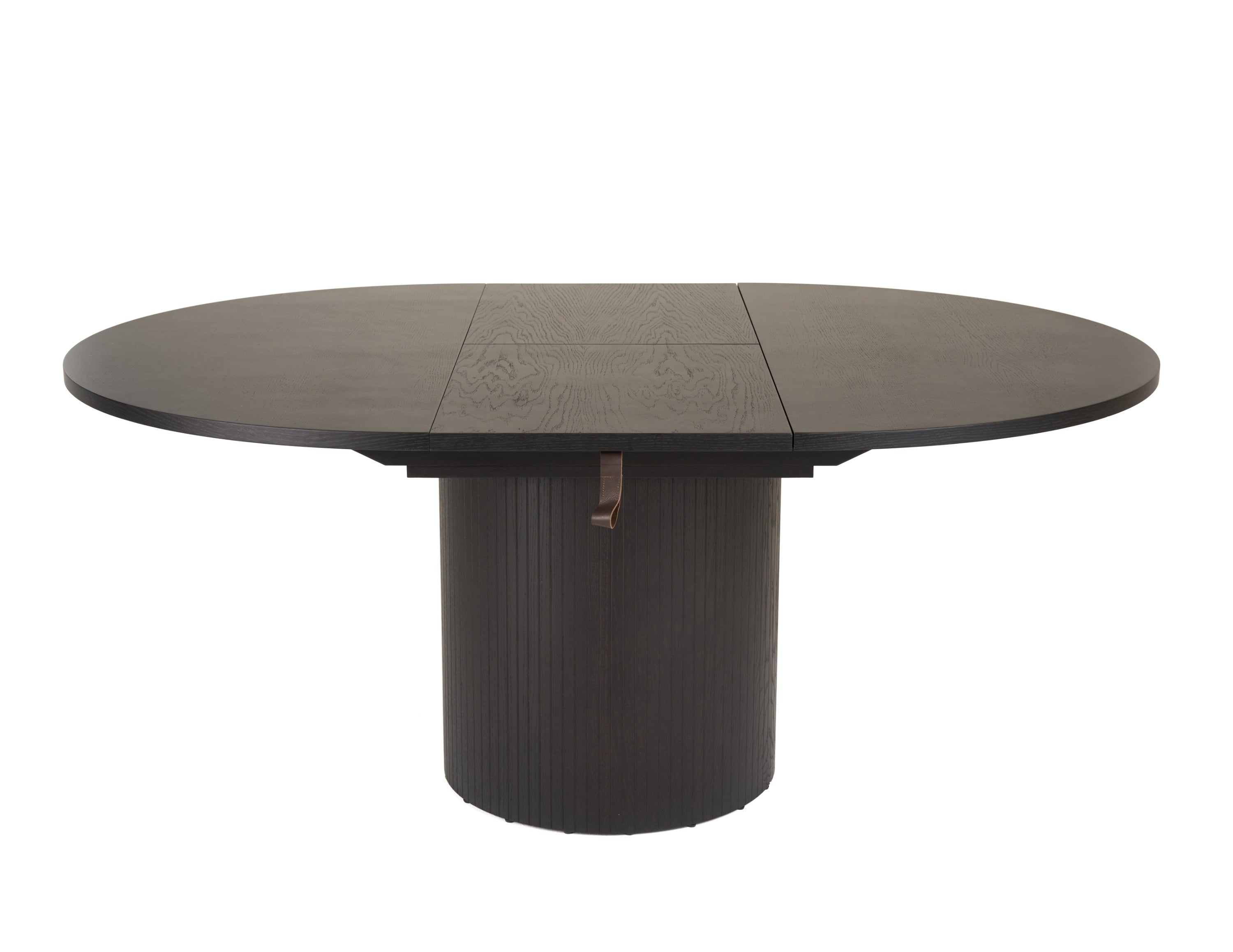 Update your dining room with the Miami Round Dining Table! The surface and base of the table are made of oak wood with a black veneer finish. The Miami combines excellent quality materials and superb design that will make it a beautiful addition to any dining space. The table comfortably seats four and up to six with the extension.