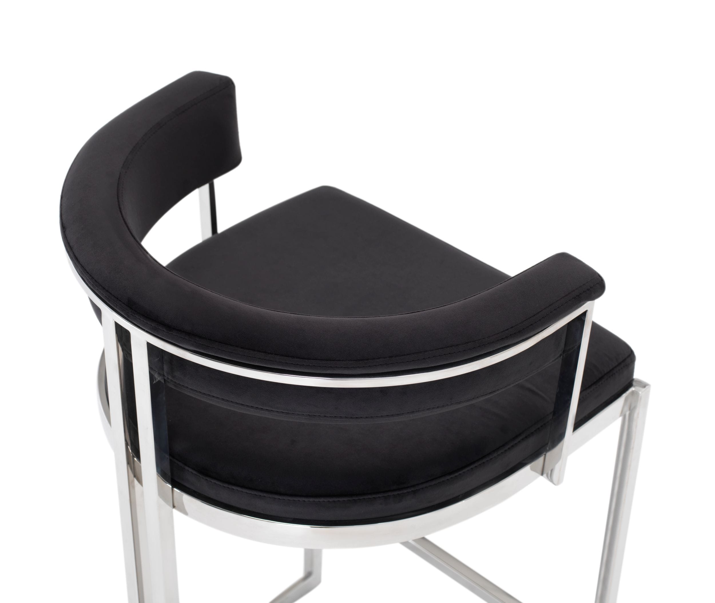 The Munith Counter Stool is a simple modern bar stool that has an element of art deco design. The tall, tubular base is the perfect setting for its complimentary velvet upholstery and low back rest. Pair with the Munith Bar Table to create a perfectly matched space.