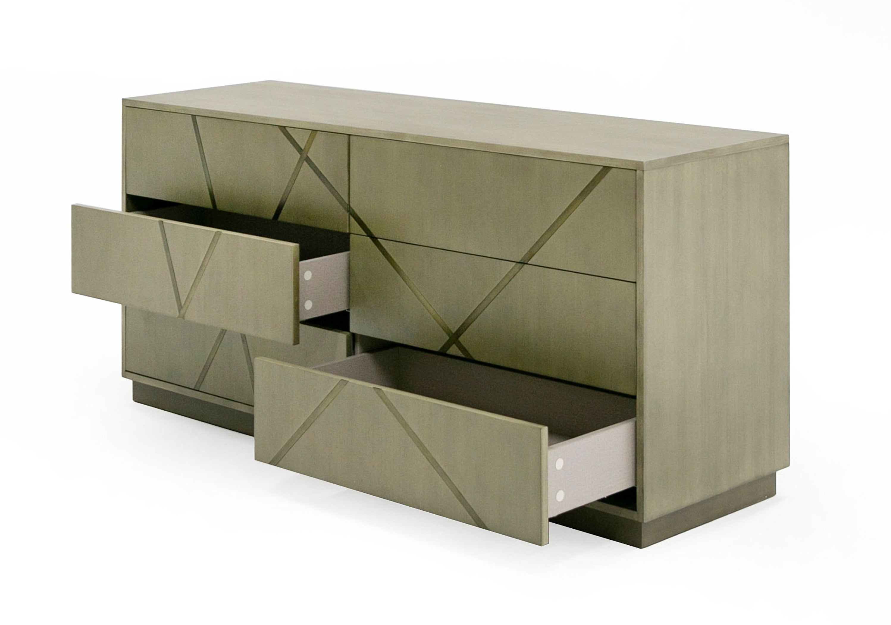 When are two X s better than one? Look no further than the Nixa Dresser, which gives you six soft closing drawers with integrated finger pulls. This dresser has a birch wood finish along with its brushed bronze metal double “X” details and metal support base. Fully assembled.