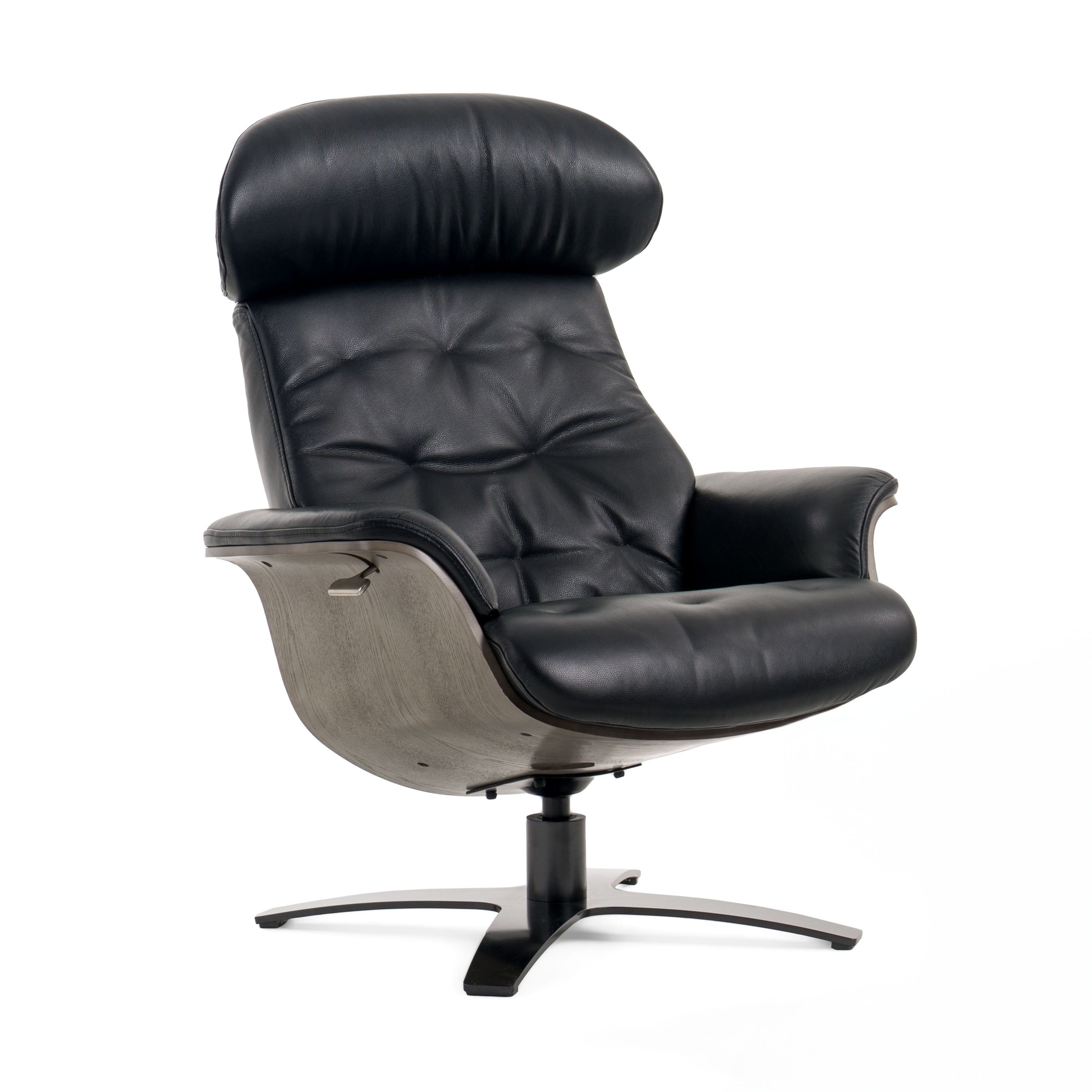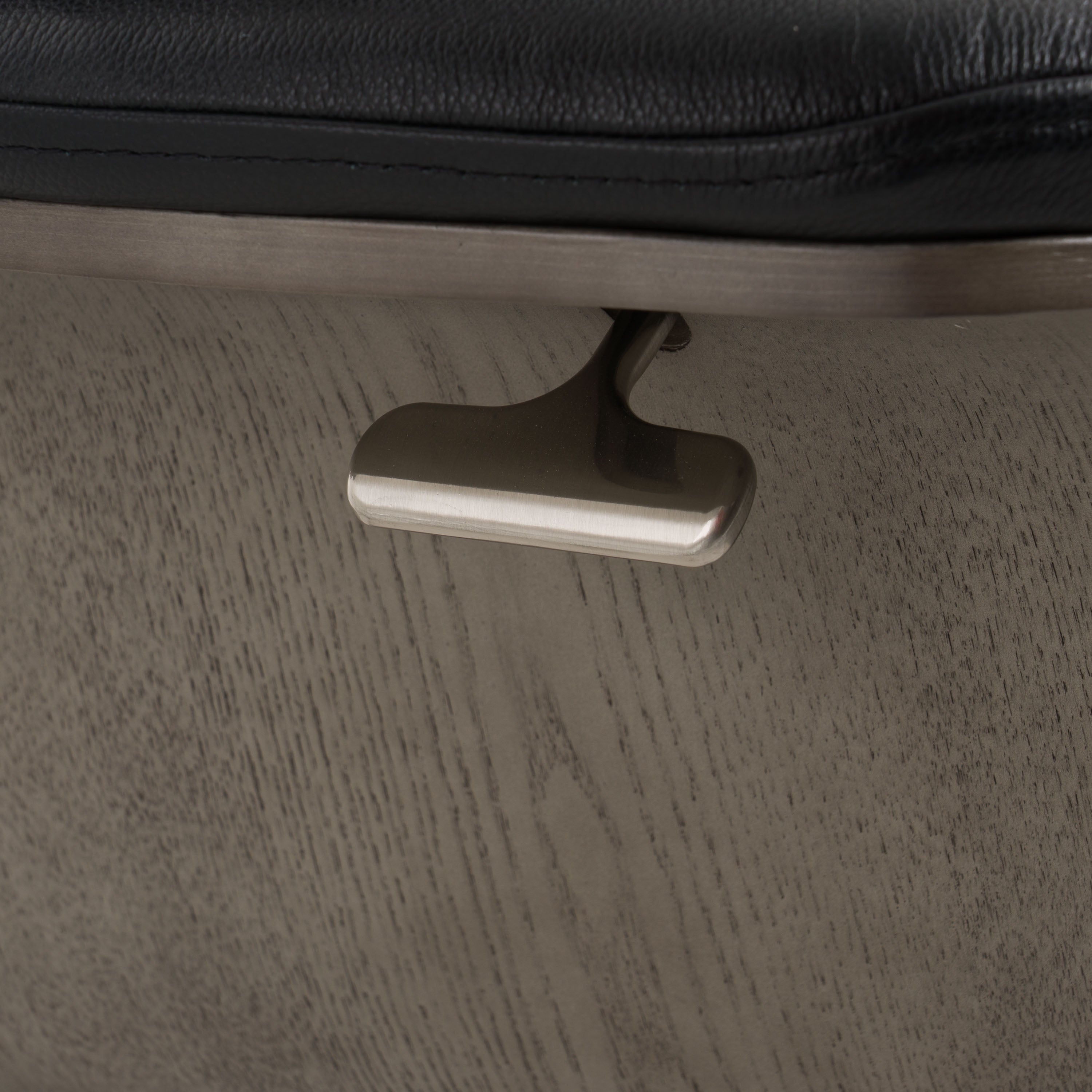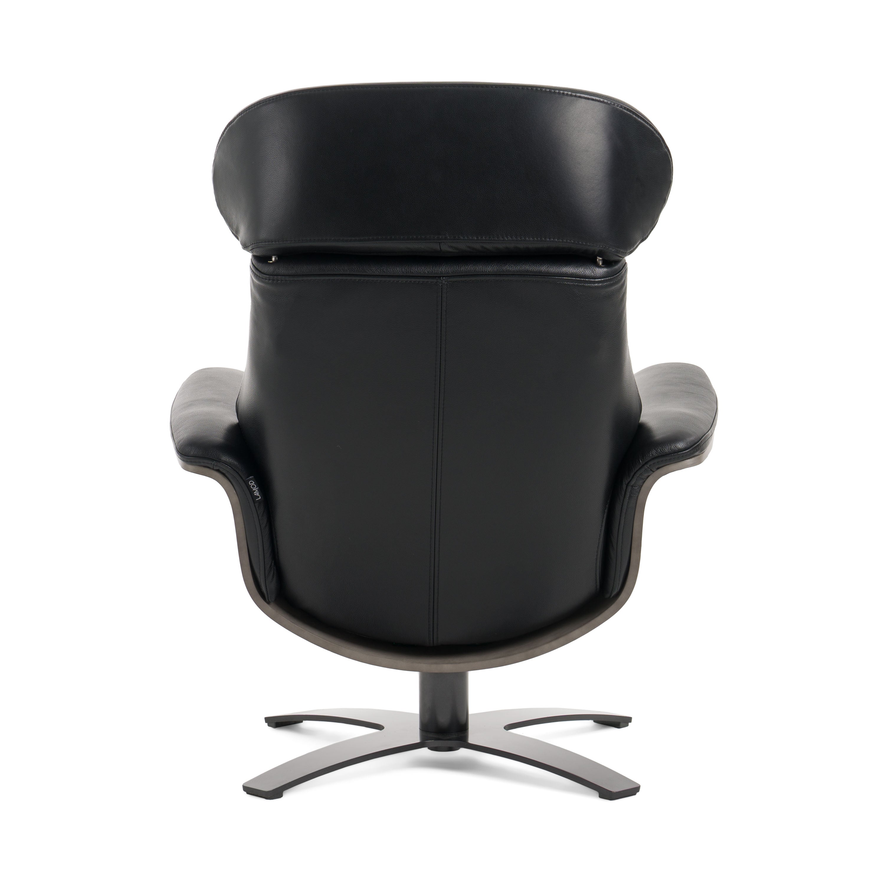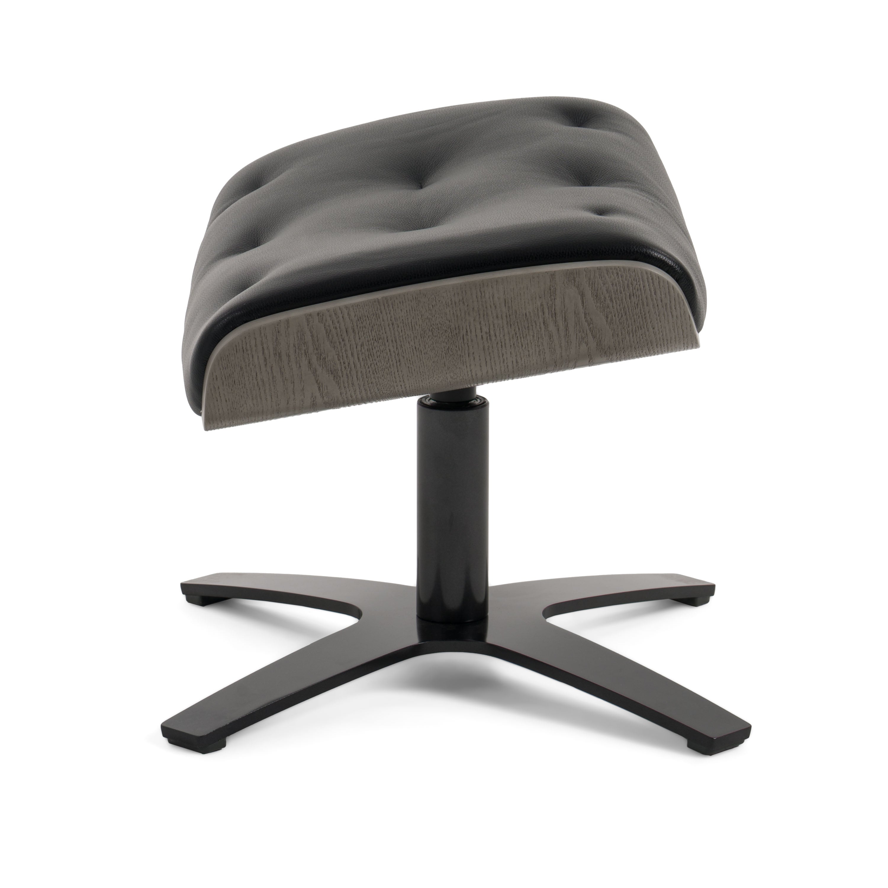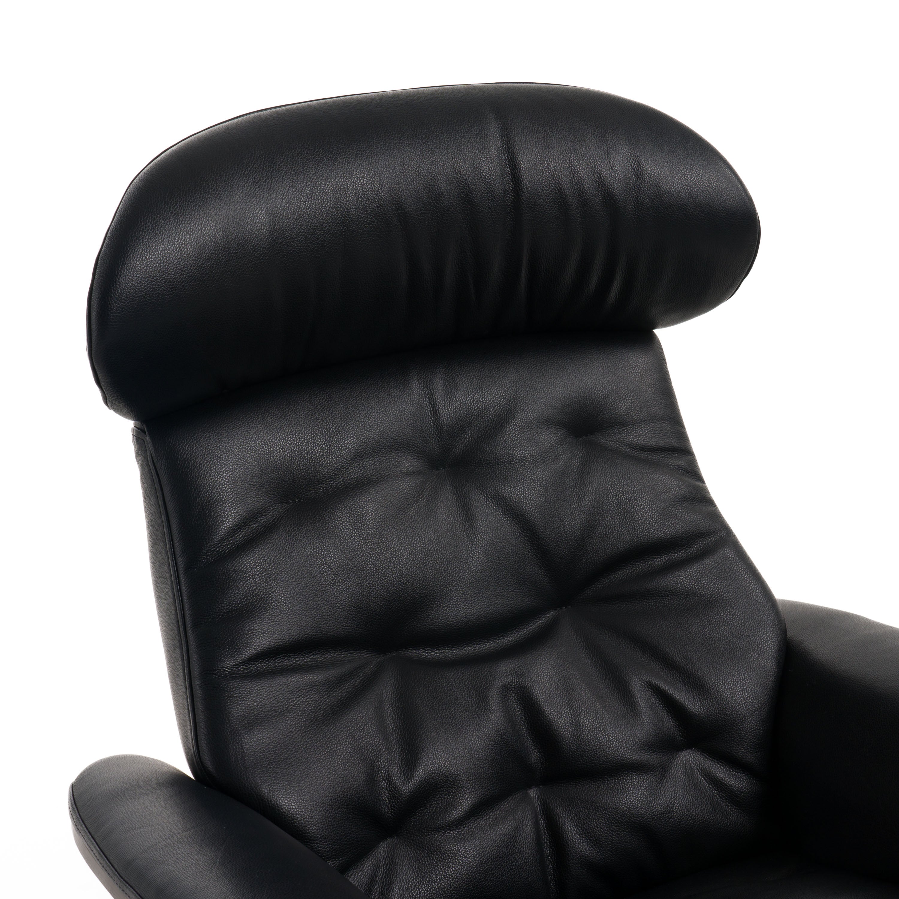 The Modrest - Nowak Modern Black Lounge Chair & Ottoman Set is a stylish and comfortable addition to any living space. The set includes a chair and an ottoman, both upholstered in genuine black leather. The chair features a metal frame, wood veneer back, fixed armrests, and a full-circle swivel. With an adjustable seat height and a sleek design, this lounge chair and ottoman set is perfect for relaxation and modern aesthetics