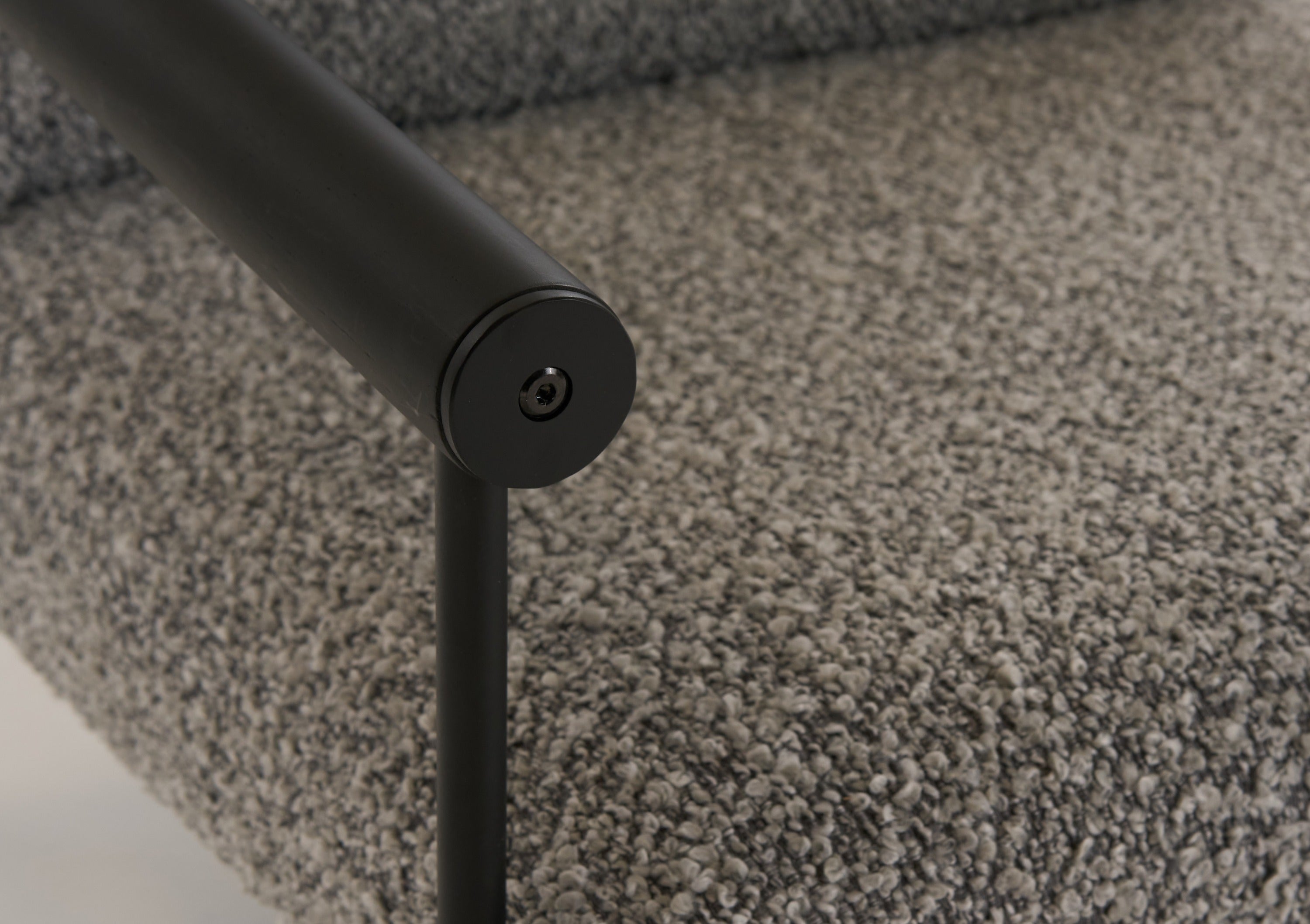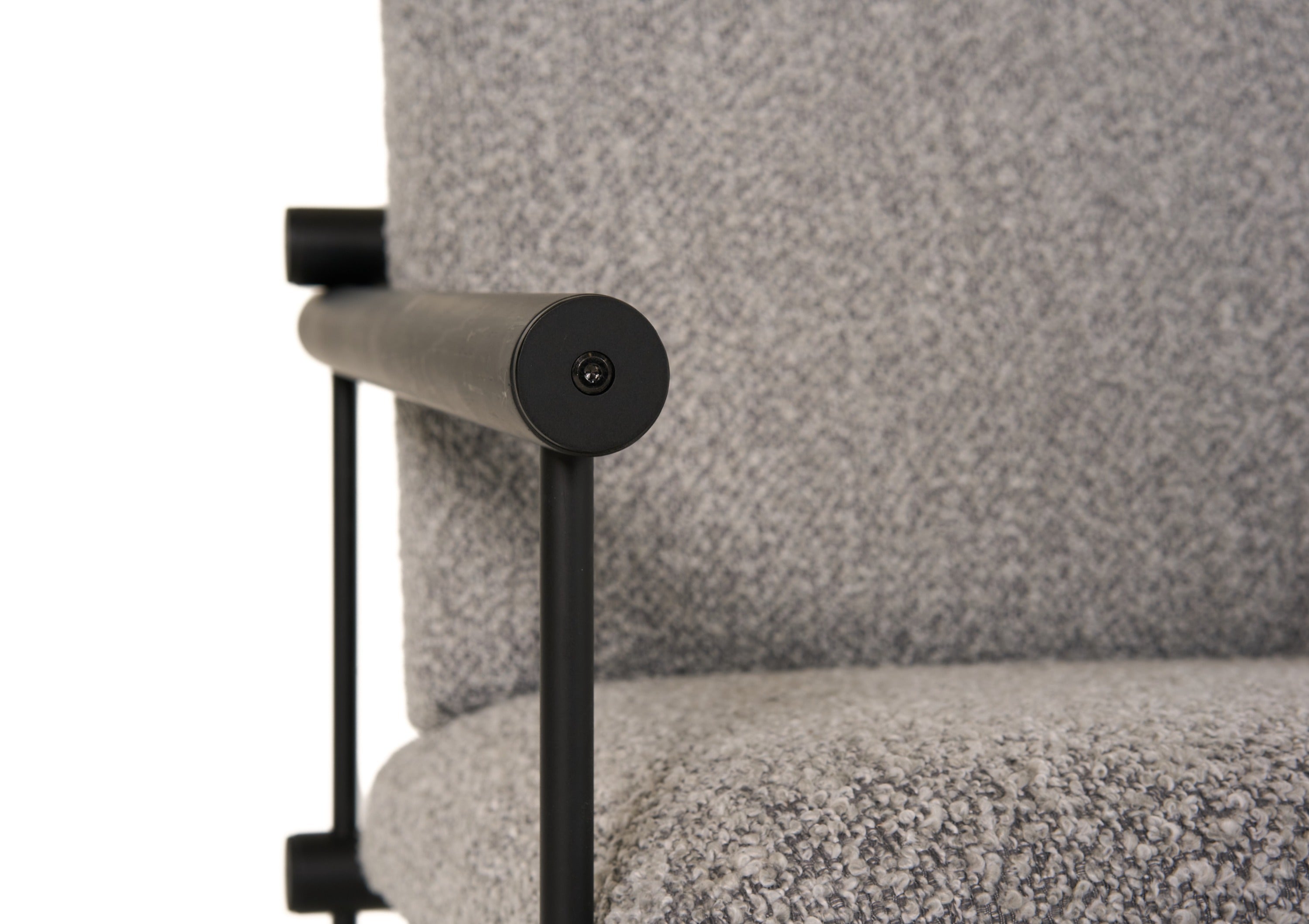 The Modrest Ravina Accent Chair showcases a contemporary design with a striking combination of modern grey fabric and sleek black accents. Its minimalist silhouette features a comfortable seat and backrest, complemented by sturdy, tubular arms. The textured upholstery adds visual interest and warmth, creating an inviting focal point in any living space. Perfect for lounging or enhancing cozy corners, this chair effortlessly blends style with functionality, making it a chic addition to modern interiors.