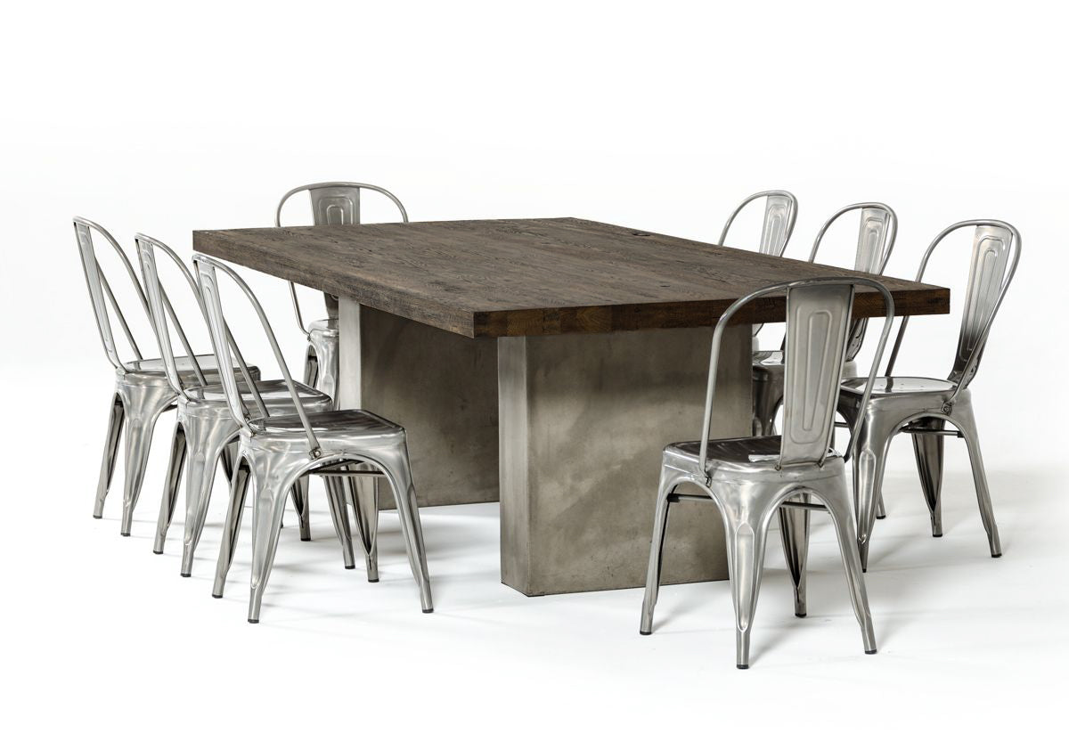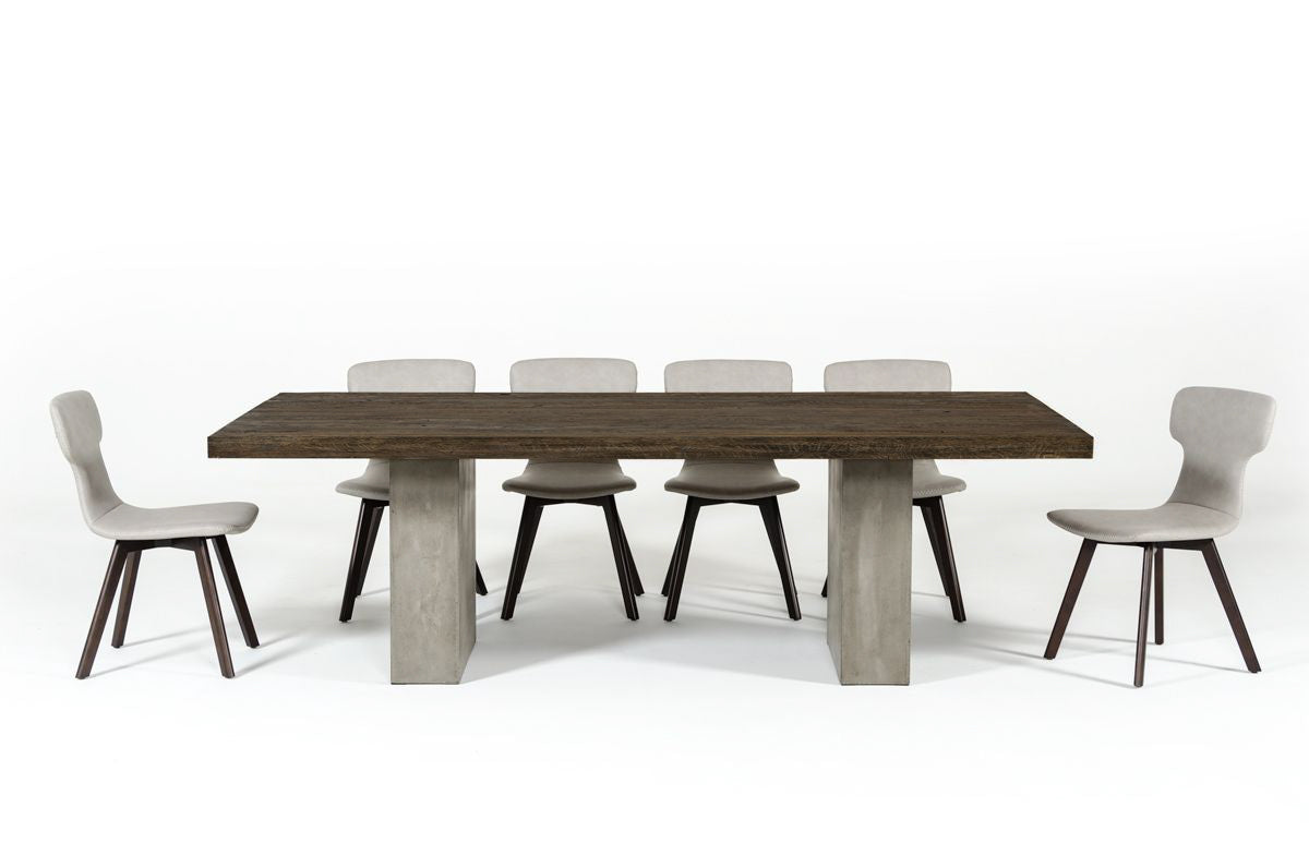 A splendid combination of oak and concrete, the Modrest Renzo Modern Oak & Concrete Dining Table exudes an organic elegance. Featuring a rectangular heritage Oak table top with wood markings, it is perched on solid dark grey fiber reinforced natural concrete base. The rawness of the materials used emphasized the eco-friendly feel of this modern dining table that will add warmth to your dining room.