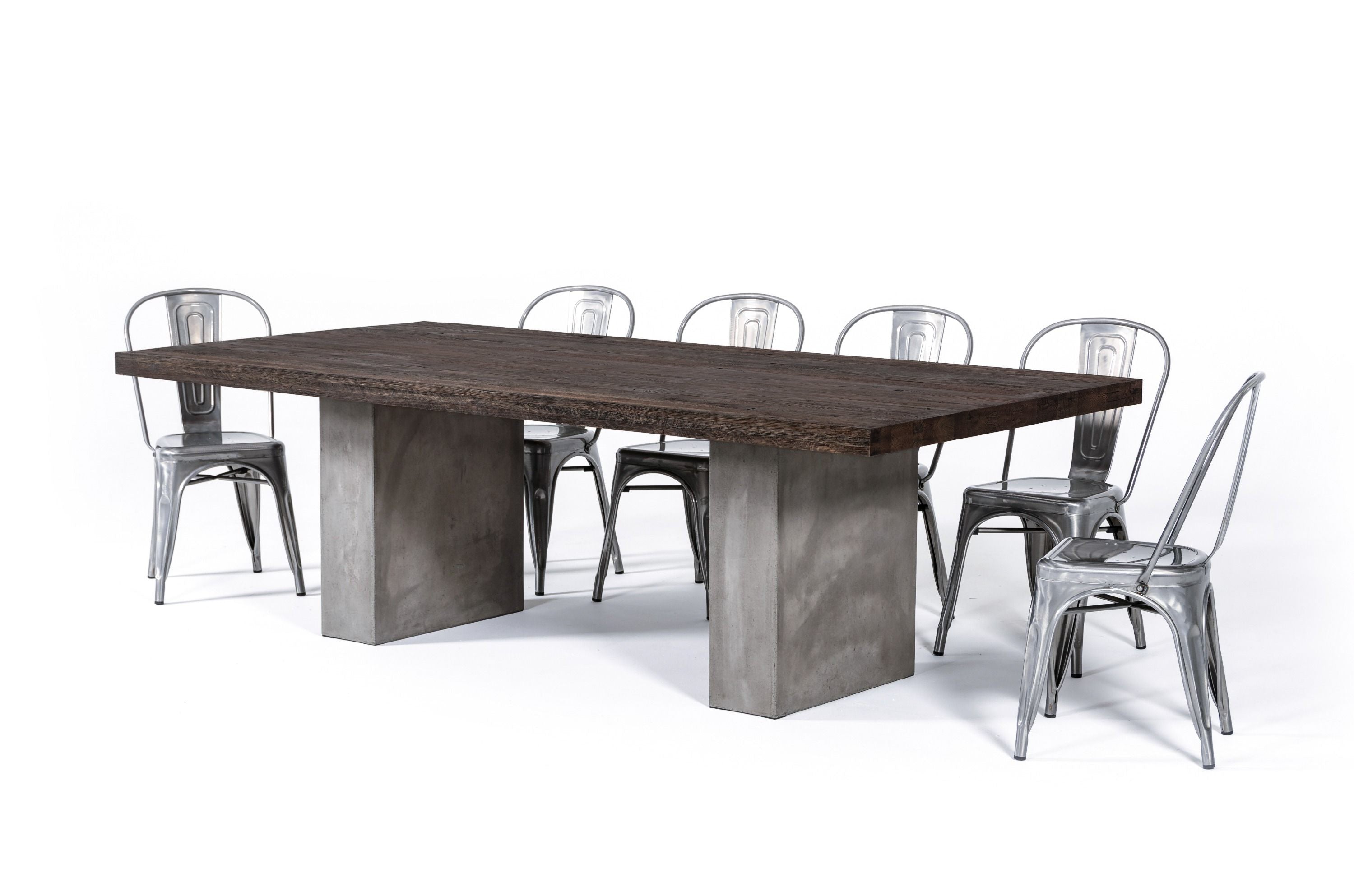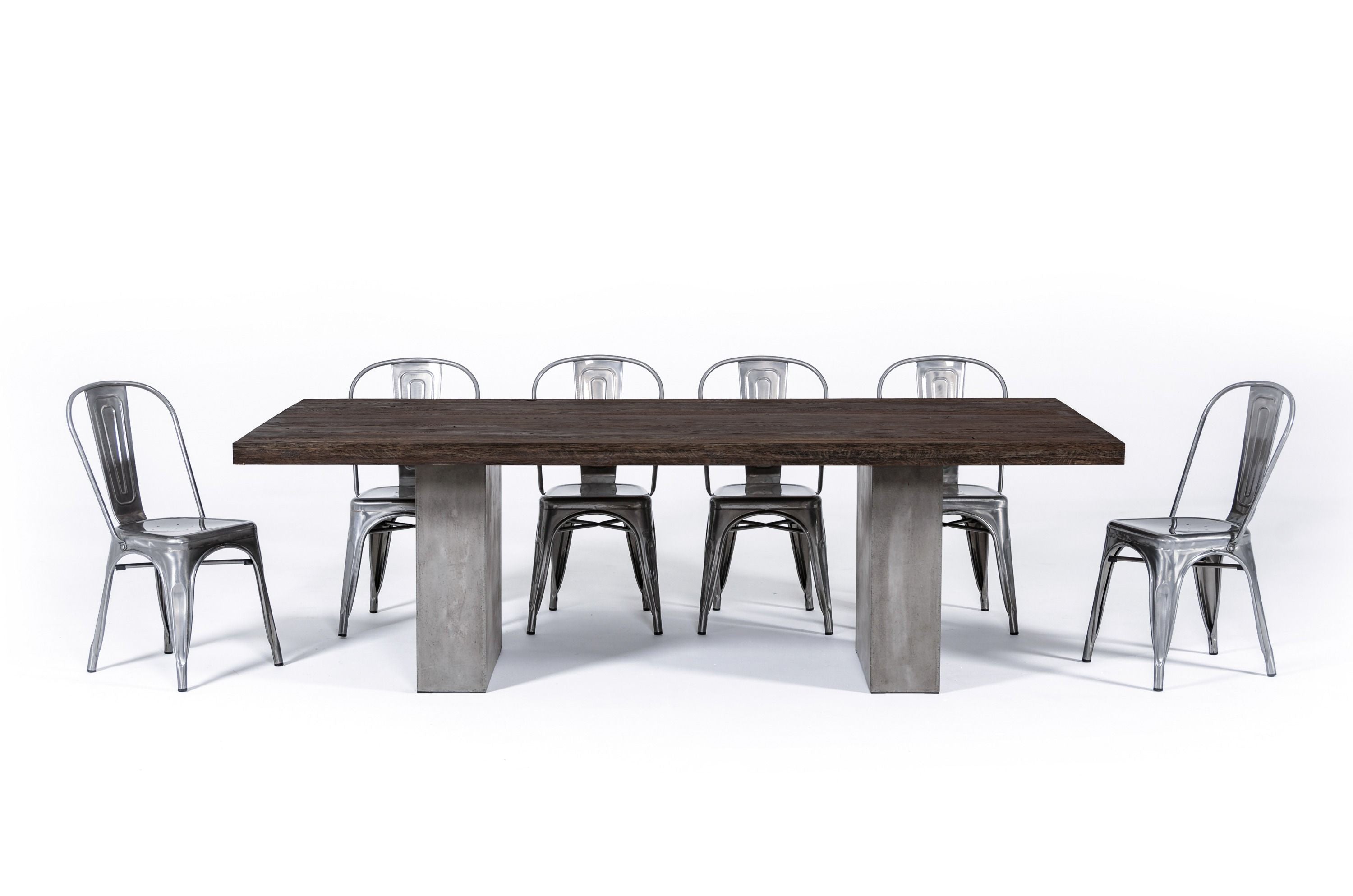 A splendid combination of oak and concrete, the Modrest Renzo Modern Oak & Concrete Dining Table exudes an organic elegance. Featuring a rectangular heritage Oak table top with wood markings, it is perched on solid dark grey fiber reinforced natural concrete base. The rawness of the materials used emphasized the eco-friendly feel of this modern dining table that will add warmth to your dining room.