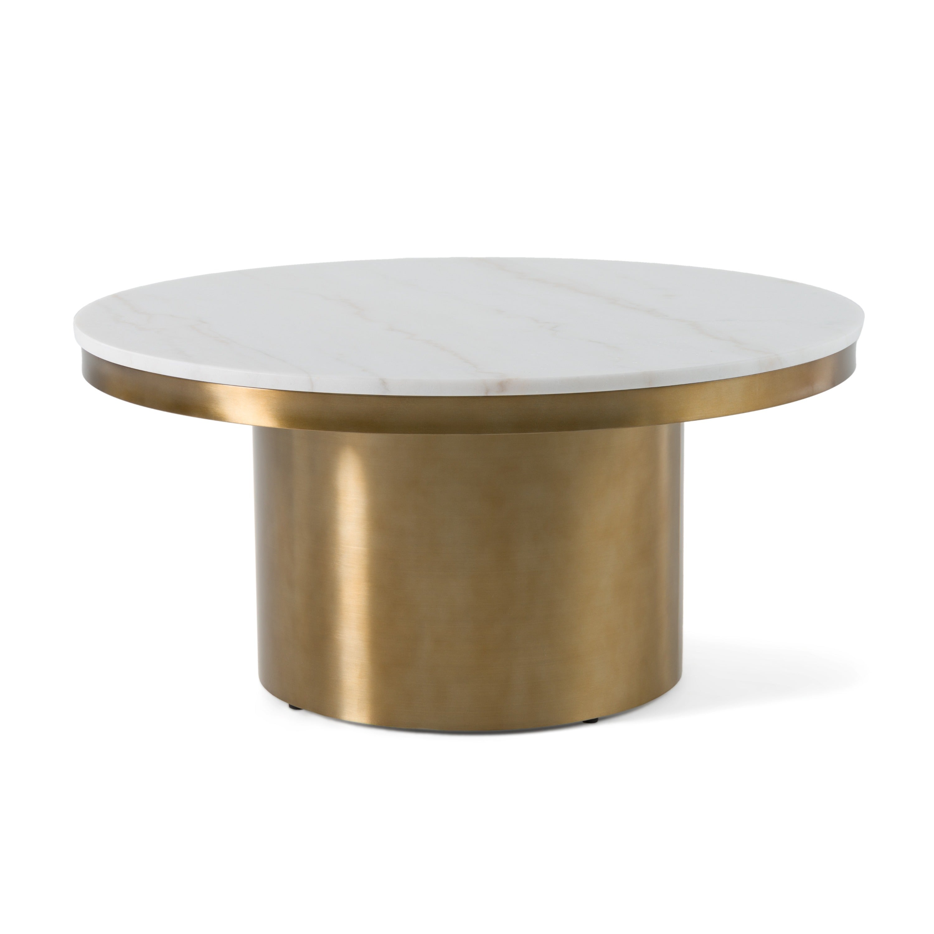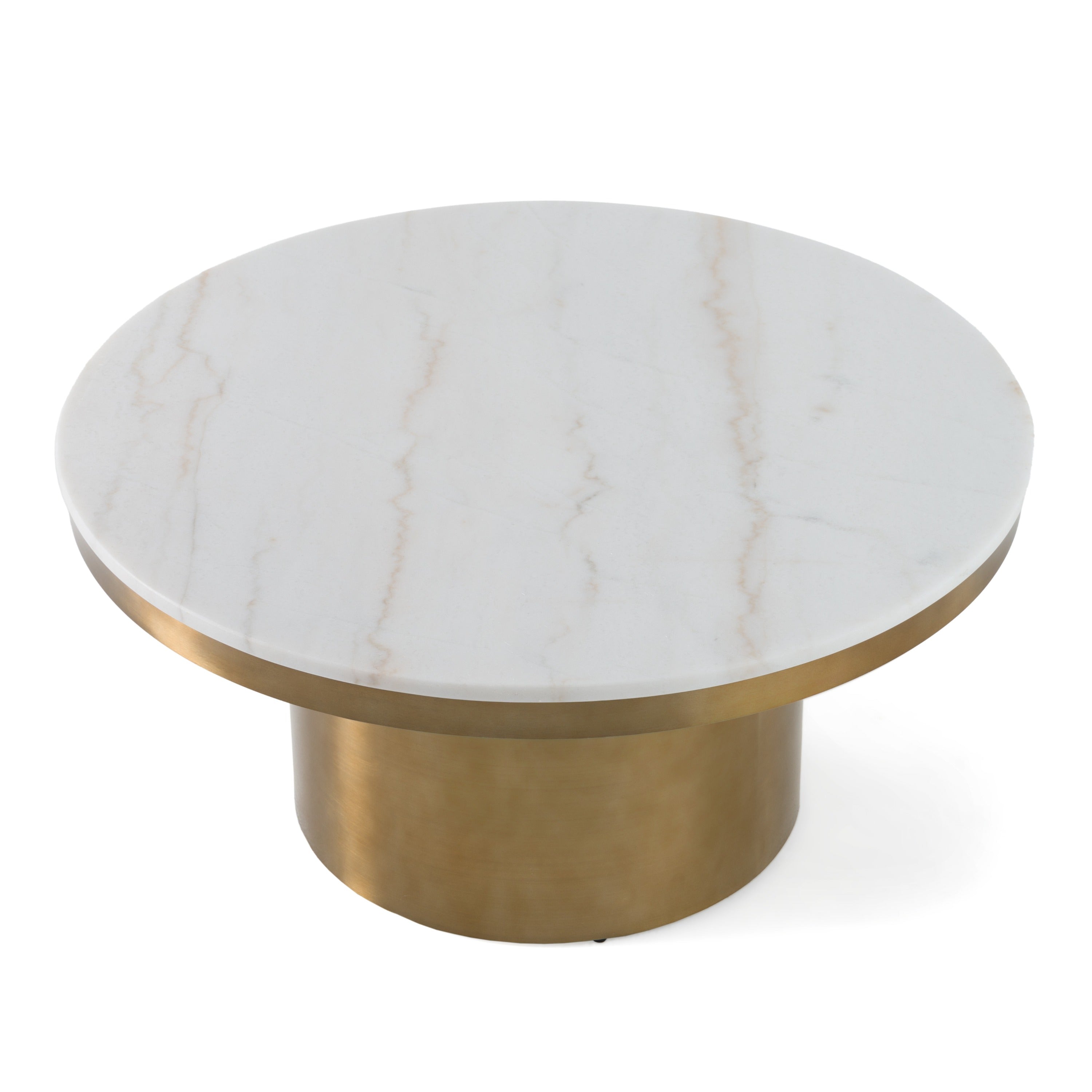 The Rocky Coffee Table is the perfect mix of modern and glam. The round stone top is elegant and unique and it contrasts the polished gold stainless steel of the base. Perfect with a velvet tufted sofa for a luxury look.