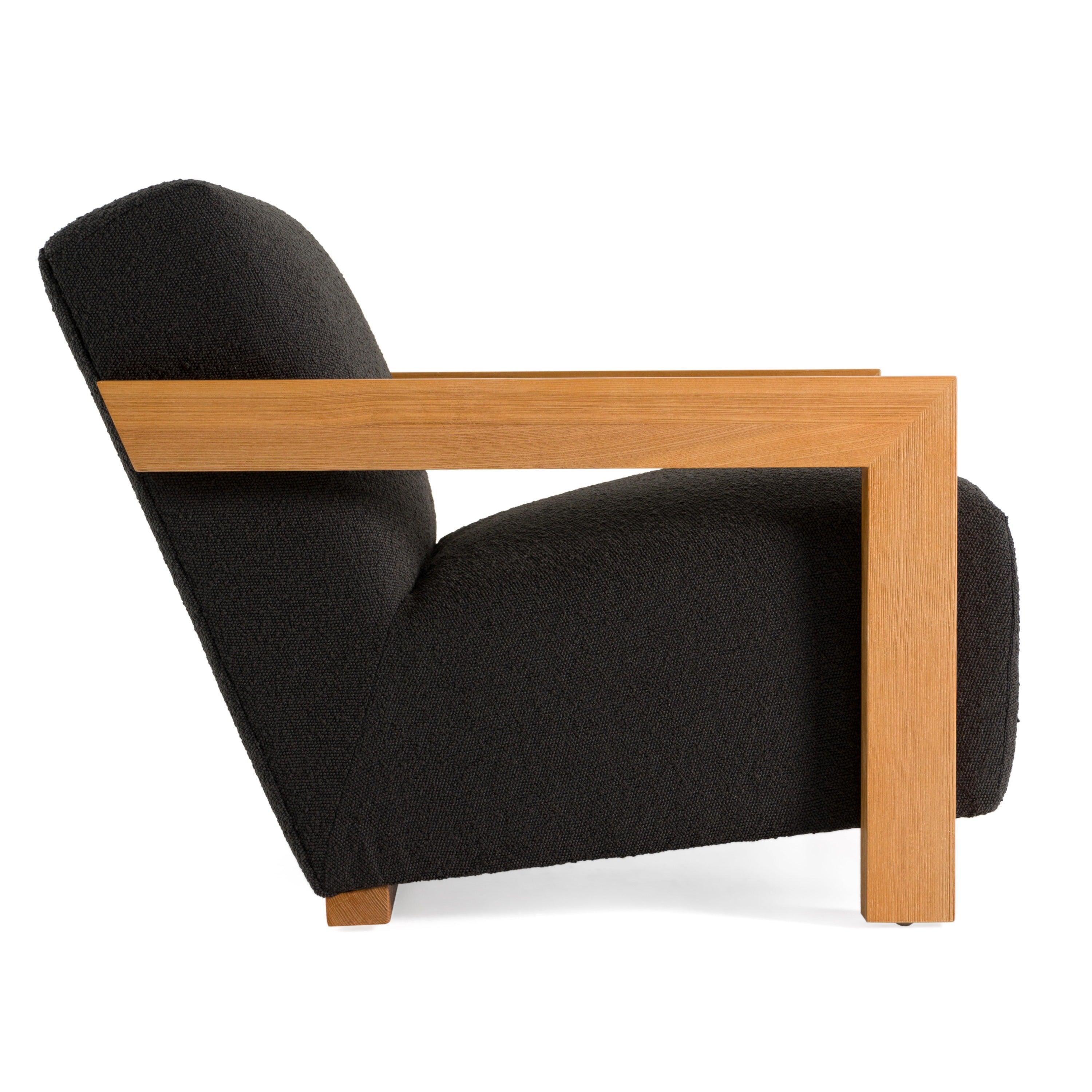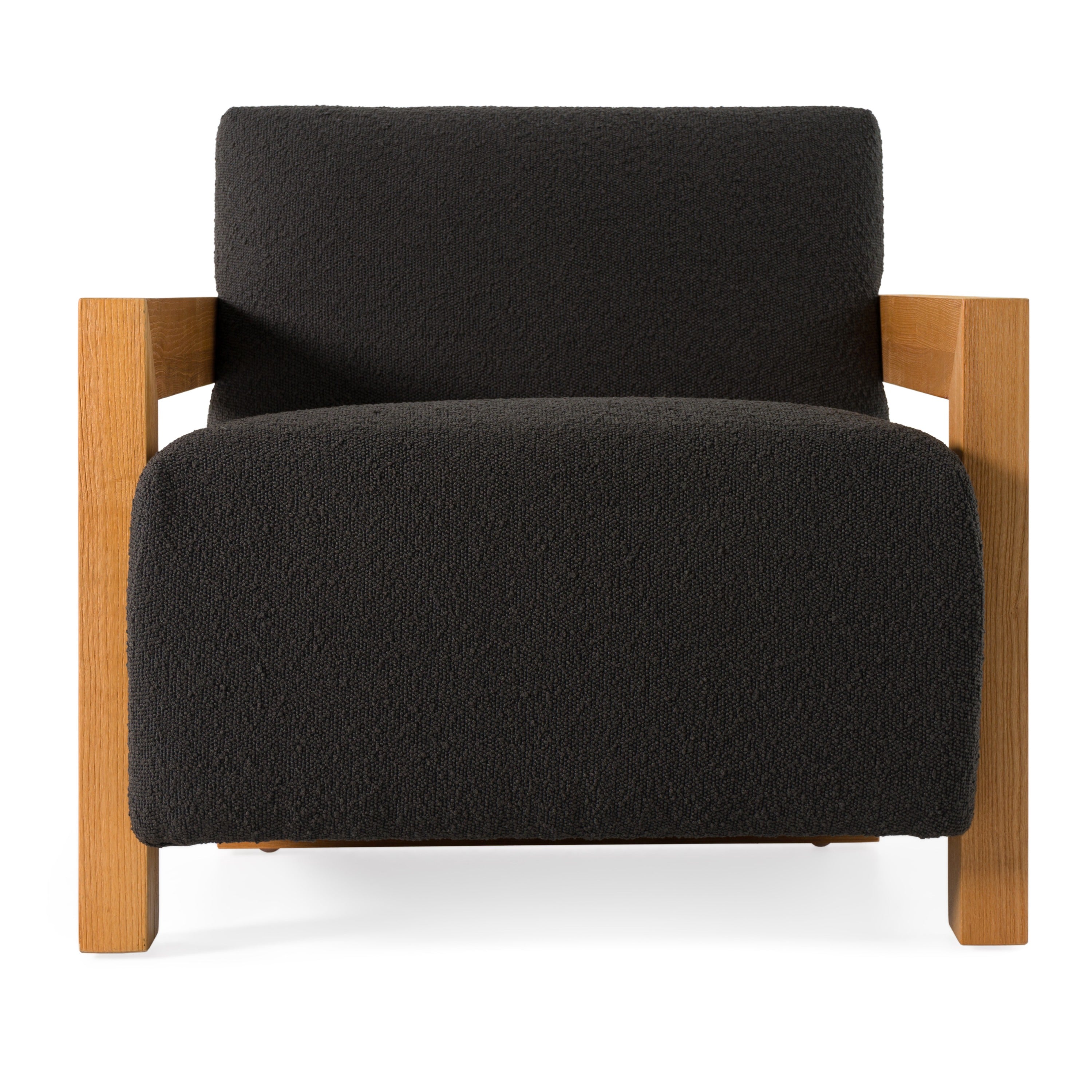 The Modrest Rosen Accent Chair seamlessly blends modern aesthetics with comfort. Upholstered in a black 100% polyester fabric, this chair features natural solid oak arms that add a touch of sophistication. Its tight back design ensures a sleek appearance, while the foam and waterfowl cushion fill provides plush comfort. With coil spring seat construction and square arms, this chair is both stylish and inviting. Perfect for contemporary living spaces, it effortlessly combines form and function.