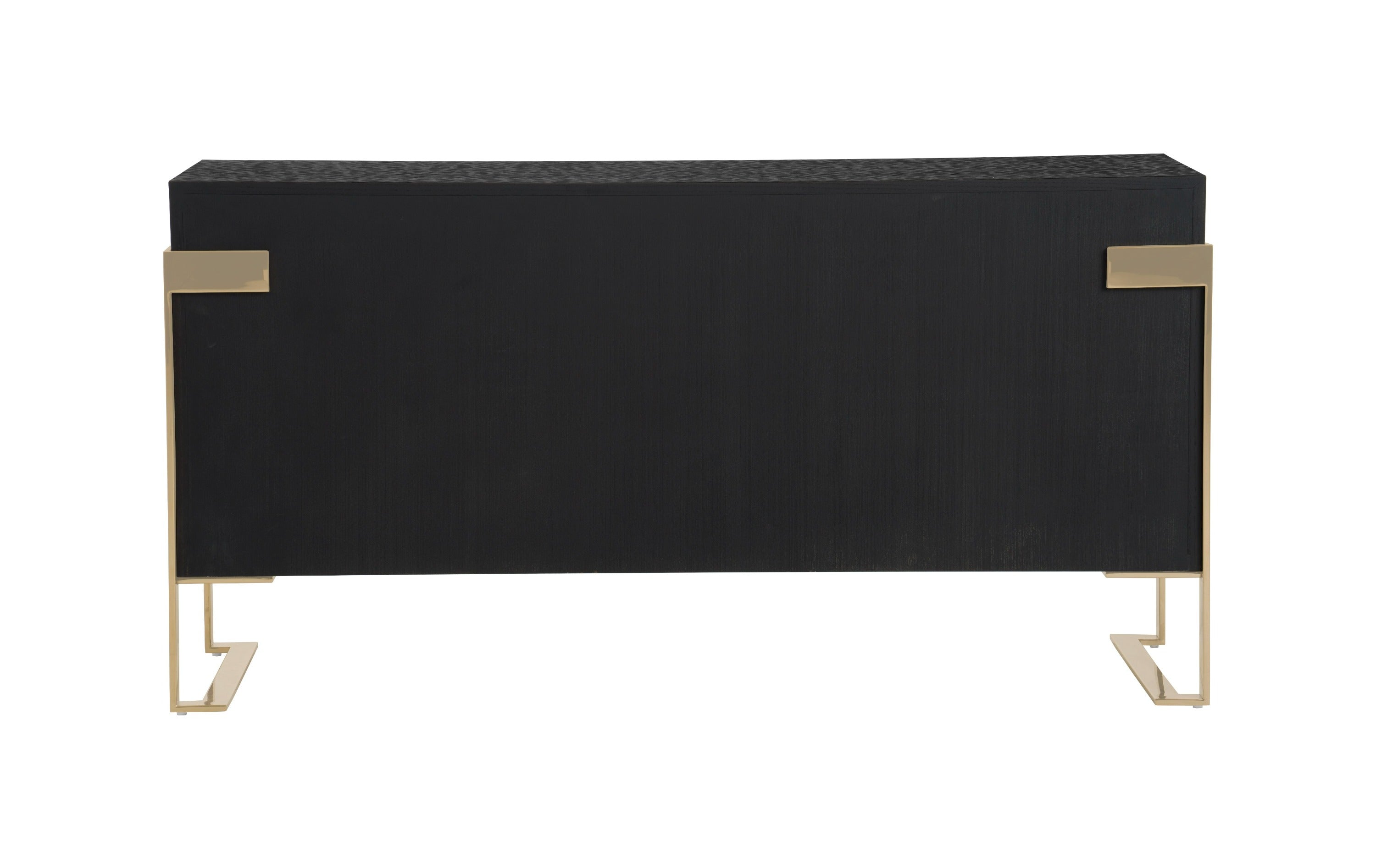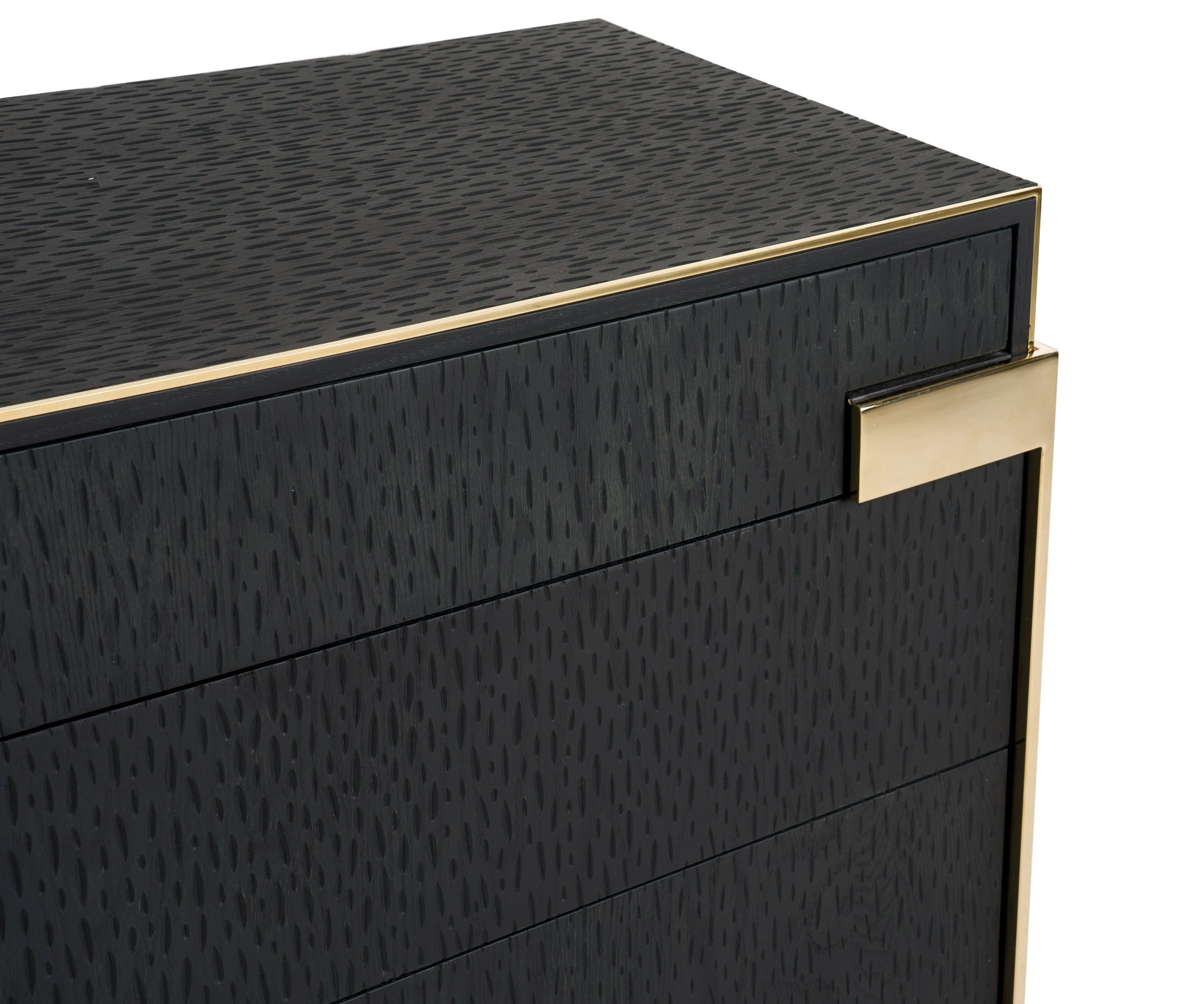 The Modrest Rothsay Modern Wenge and Gold Dresser is a stylish and contemporary addition to any space. This dresser is crafted with a Wenge Oak Veneer finish with gold stianless steel legs. The 6 included drawers create ample space for your bedroom essentials. The dresser s sleek design and rich wood tones make it a versatile choice for various interior styles.