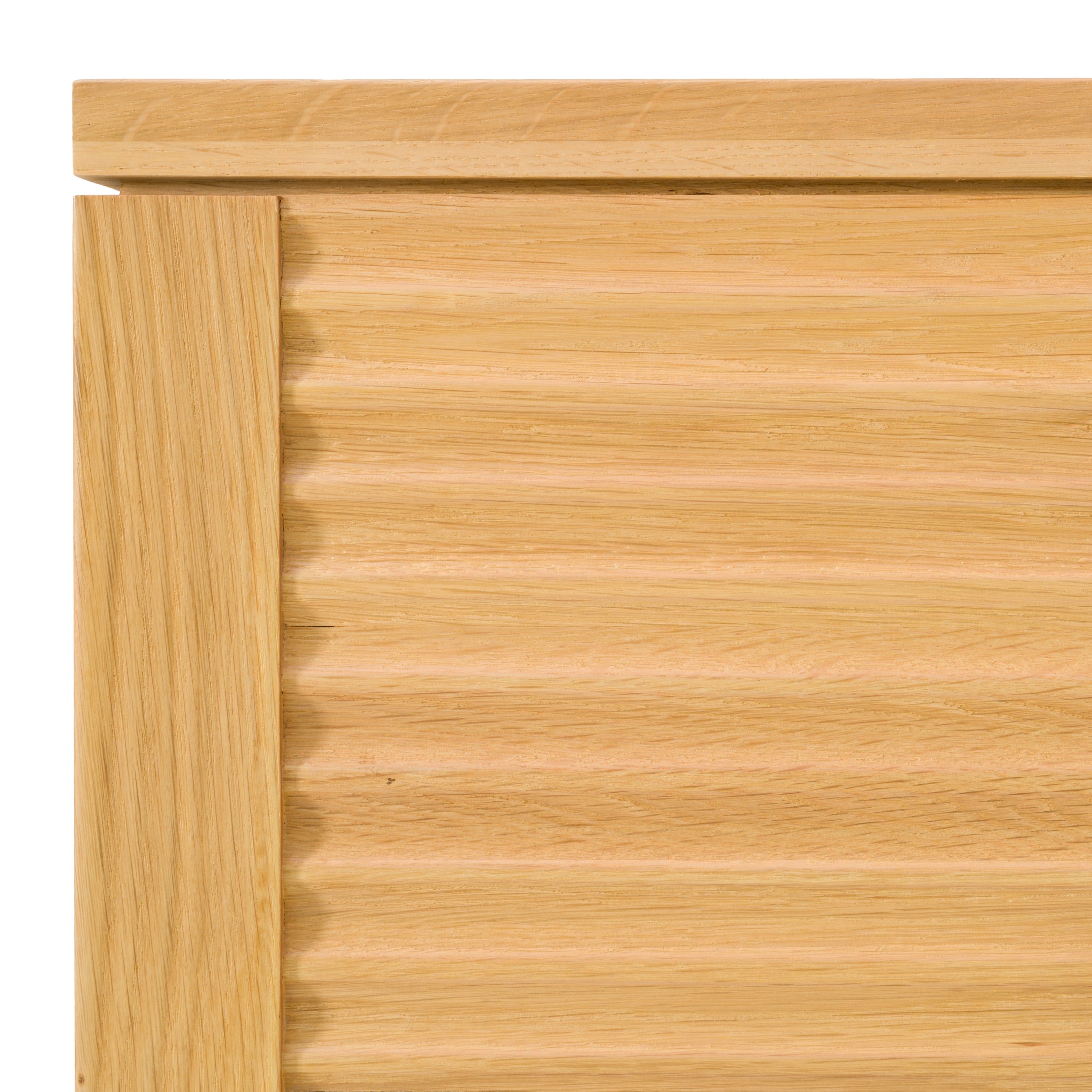 The Modrest Seattle Modern Natural Oak Bed combines sleek design with sturdy construction. Crafted from a blend of solid and manufactured wood, this bed ensures durability and longevity. The oak wood species adds a touch of natural elegance. With slats included, there s no need for a box spring, and the center support provides extra stability. Ideal for a comfortable night s sleep, it accommodates a mattress thickness of up to 8 inches. Assembly is required, but the result is a stylish and functional addition to your bedroom.
