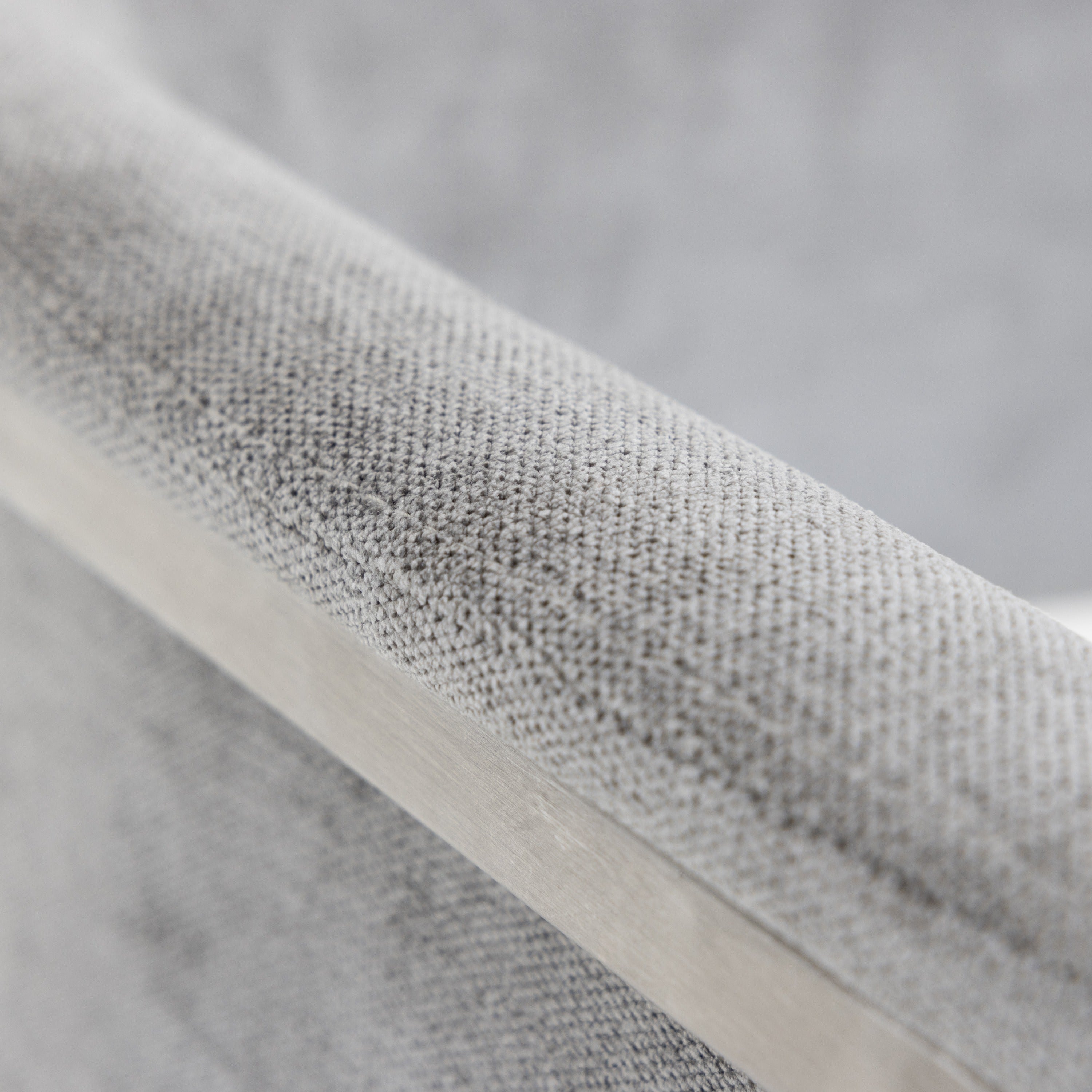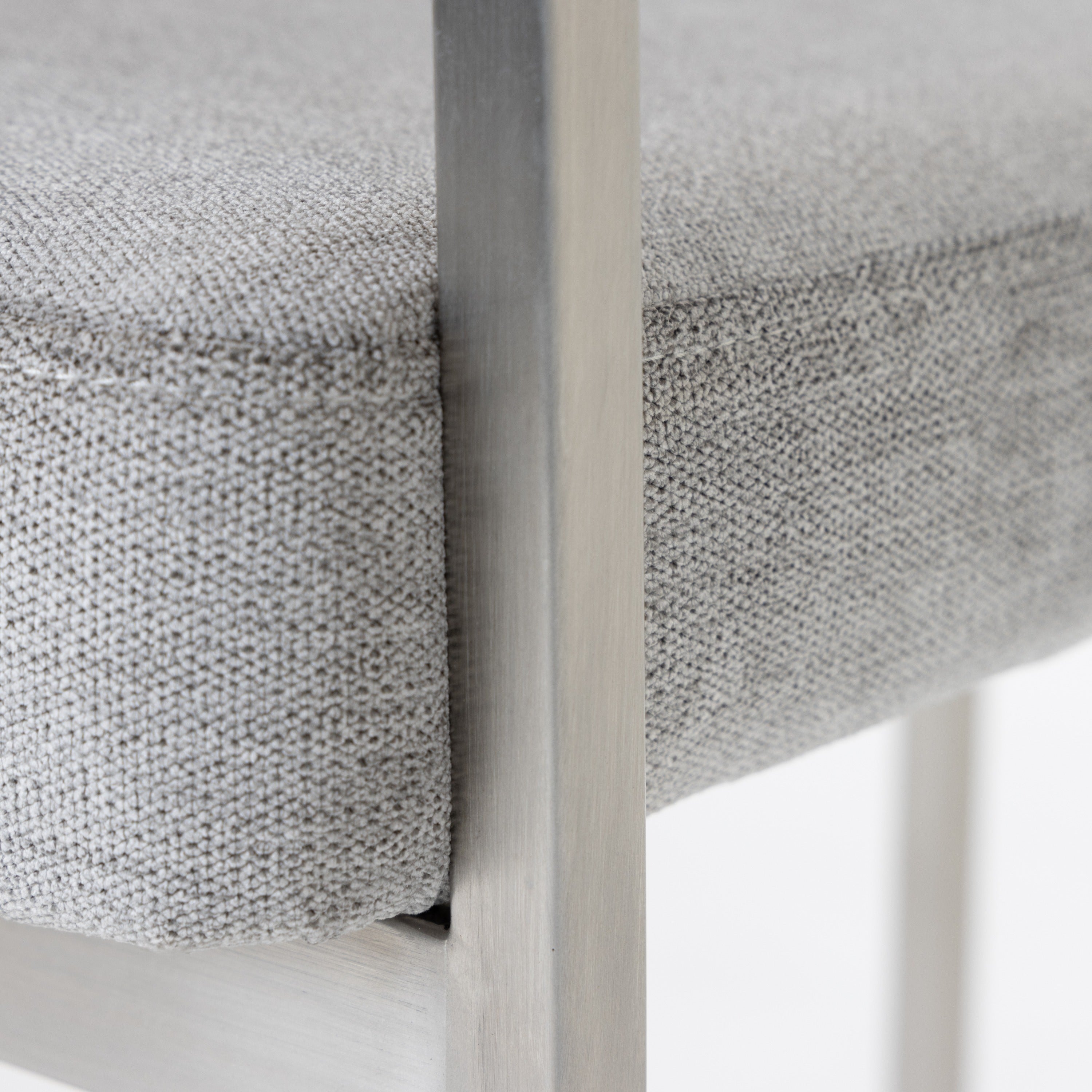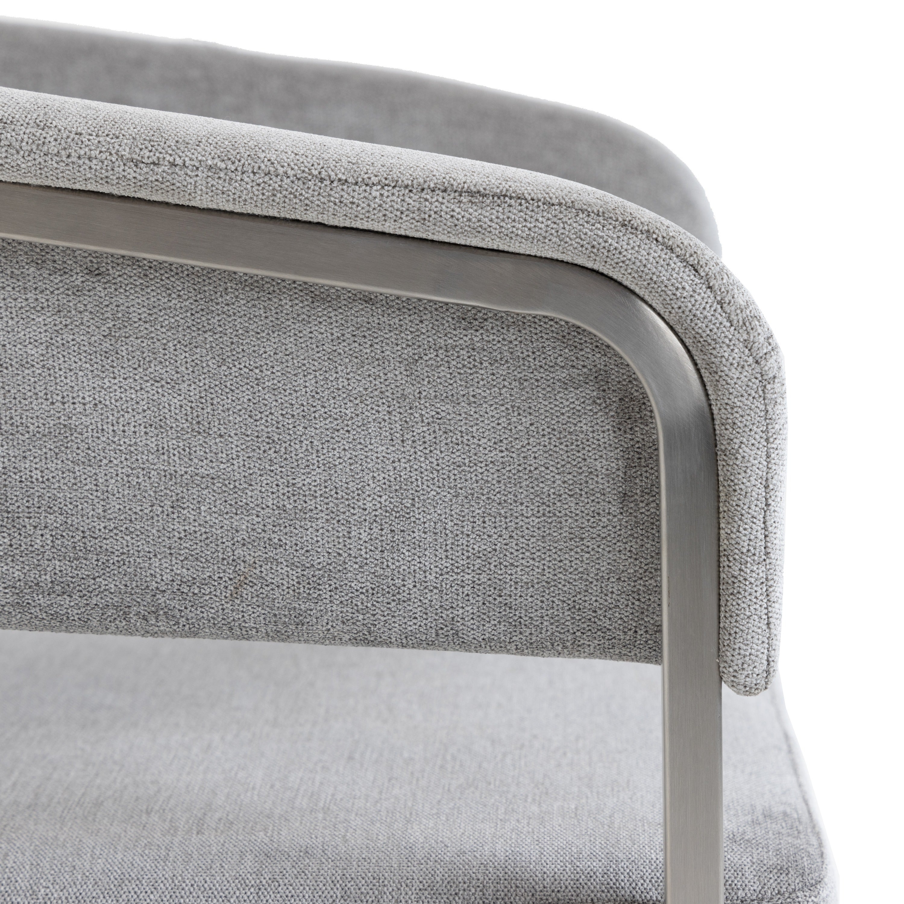 The Modrest Sebastian counter chair exudes modern elegance with its sleek design. Upholstered in soft grey fabric, it features a gently curved back and padded seat for optimal comfort. The stainless steel frame adds a touch of sophistication, enhancing its contemporary aesthetic. Perfect for modern kitchens or bar settings, this chair effortlessly combines style with functionality, making it a chic seating choice.