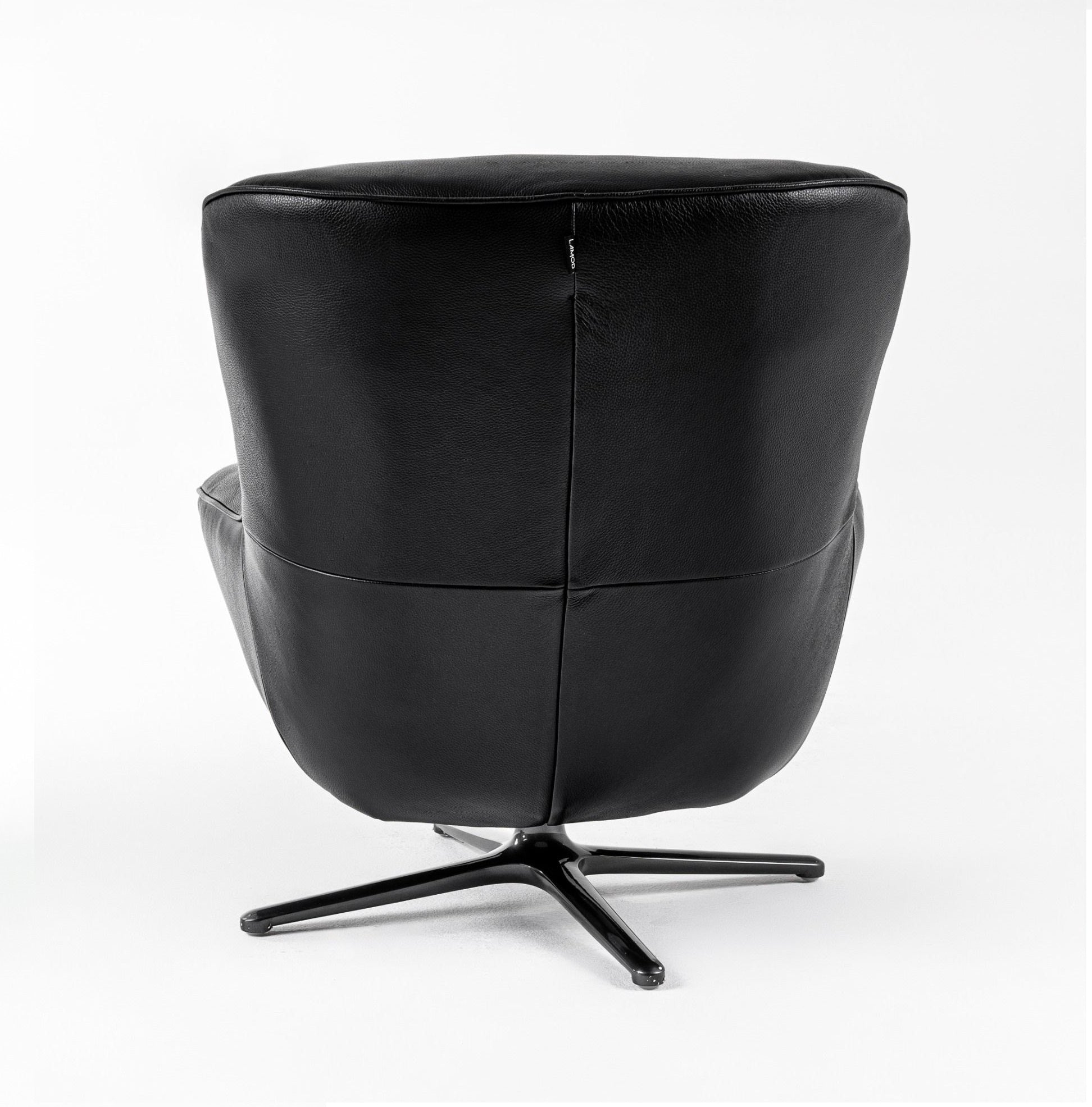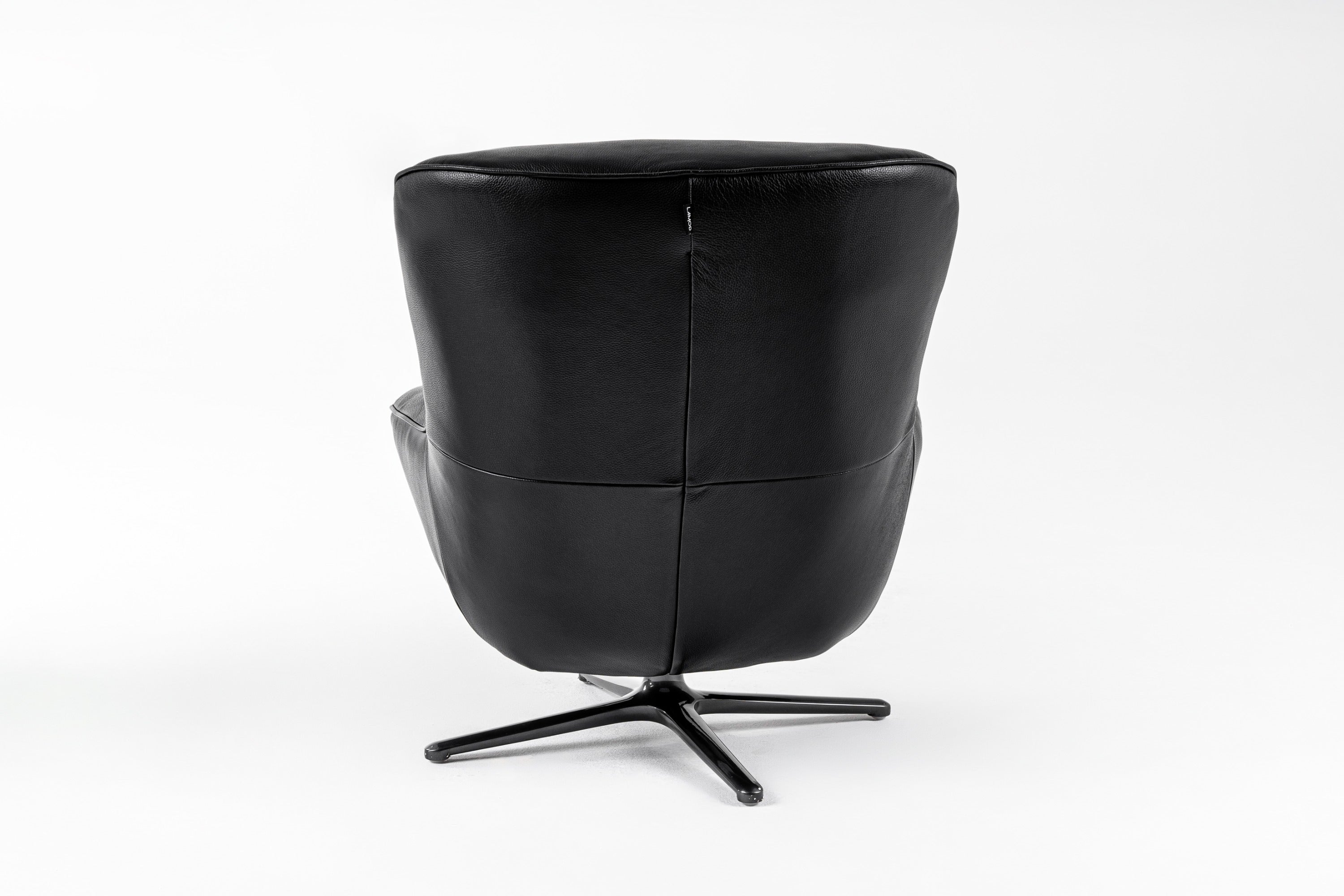 The Modrest Theo chair spreads its wings wider, to offer even more room to spread out. The design, in which the seat and back shells are pressed together, reveals the structure of this high-comfort armchair. While the curvature of the back offers users exactly the right level of support. Black leather upholsery and matching black metal legs make pairing with exisiting furniture and decor a simple and stress free.