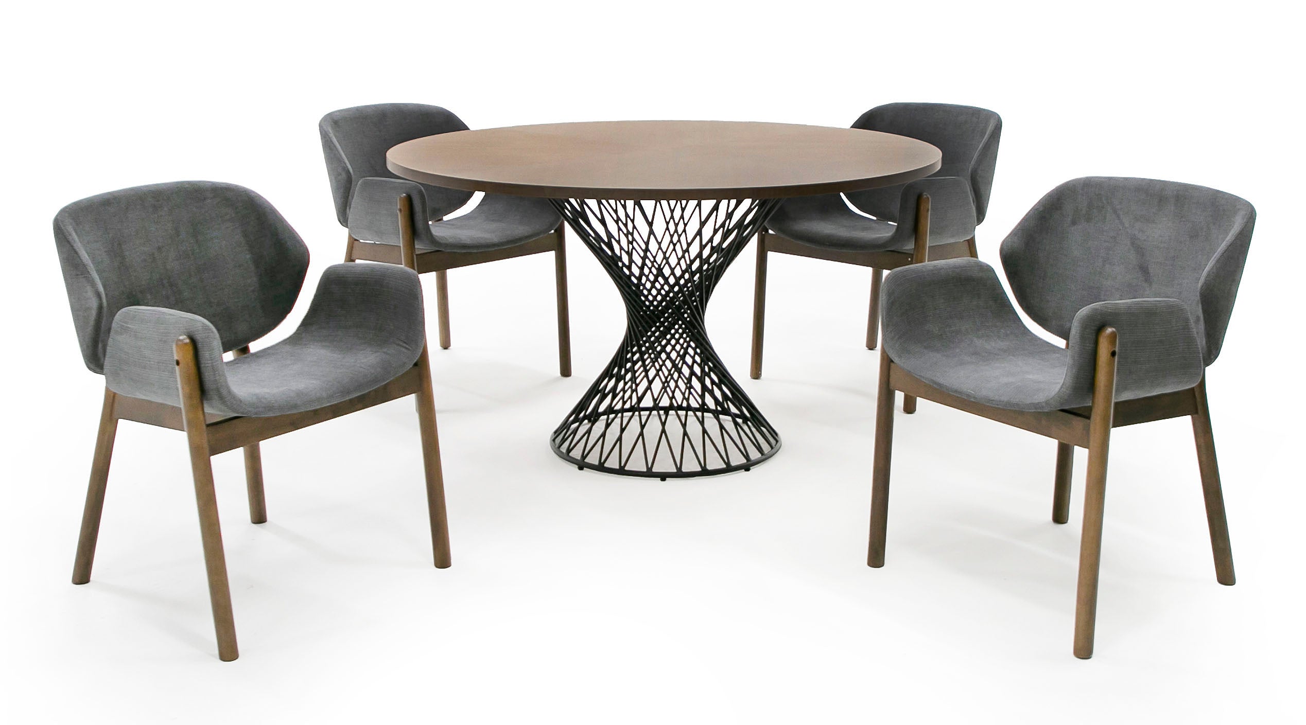 Capturing a crafty harmony between urban, minimalist and rustic design is the Modrest Theresa Modern Round Walnut & Black Table. Versatile and exquisite, it features a Walnut veneer 54-inch diameter round table top atop an intersecting black powder coated metal pedestal base. This modern dining table is perfect for a small living space, so gather your family for an intimate meal or your friends for a table game night.
