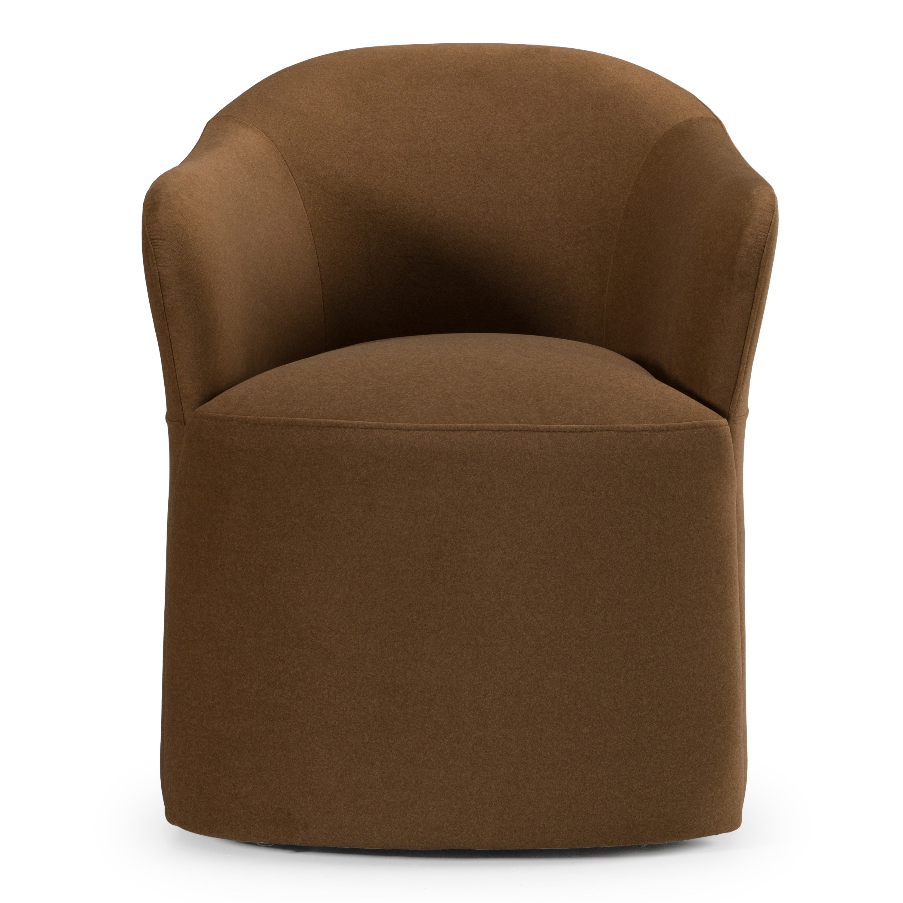 The Modrest Timothy Modern Brown Fabric Dining Chair redefines comfort and elegance for the modern dining room. Wrapped in sumptuous Vesper Tobacco fabric, this chair exudes understated sophistication while offering plush seating with its foam and fiber-filled cushioning. The solid poplar frame provides timeless stability, and the thoughtful addition of rolling casters blends function with style, making it as versatile as it is beautiful. Perfectly crafted for those who value both form and function, this chair adds a warm and inviting touch to any dining space.