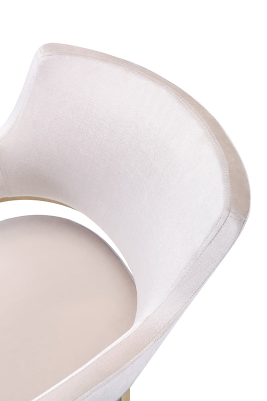 Impress your guests with delicious dinner and a comfortable seat with the Modrest Tulsa Modern Cream Velvet & Gold Dining Chair. It features a curved padded back, arms, and seat that hug the contours of your body and upholstered in luxe cream velvet 100% polyester fabric. Providing sturdy support is the gold stainless steel frame and the U-shape base. This charming modern dining chair has an airy structure that keeps you comfortable and relaxed even when seated for hours.