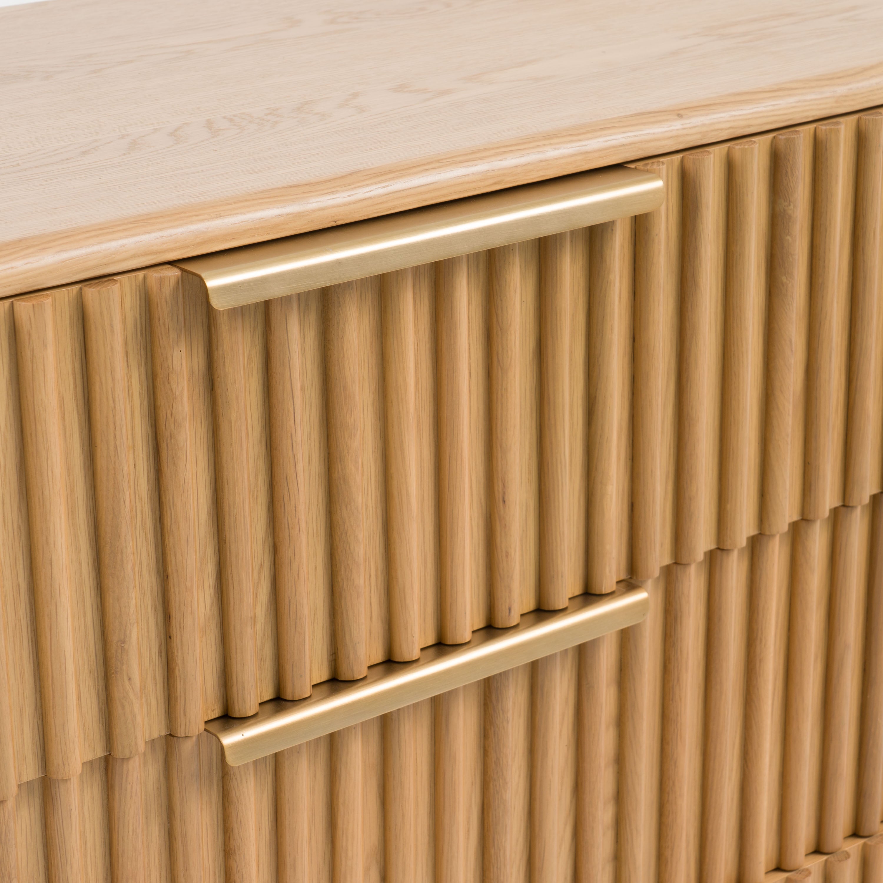 The Winters dresser comes from our new Winters Bedroom collection! This horizontal dresser features six drawers with a ball bearing glides and an elegant golden metal handle. The dresser is made from solid Oak wood with a natural finish all over. This piece combines excellent quality material and suburb design that makes it a wonderful addition in any bedroom space. The Winters bedroom collection also includes a Bed (available in Queen and Eastern King), nightstand, mirror and chest all with the same wood finish!