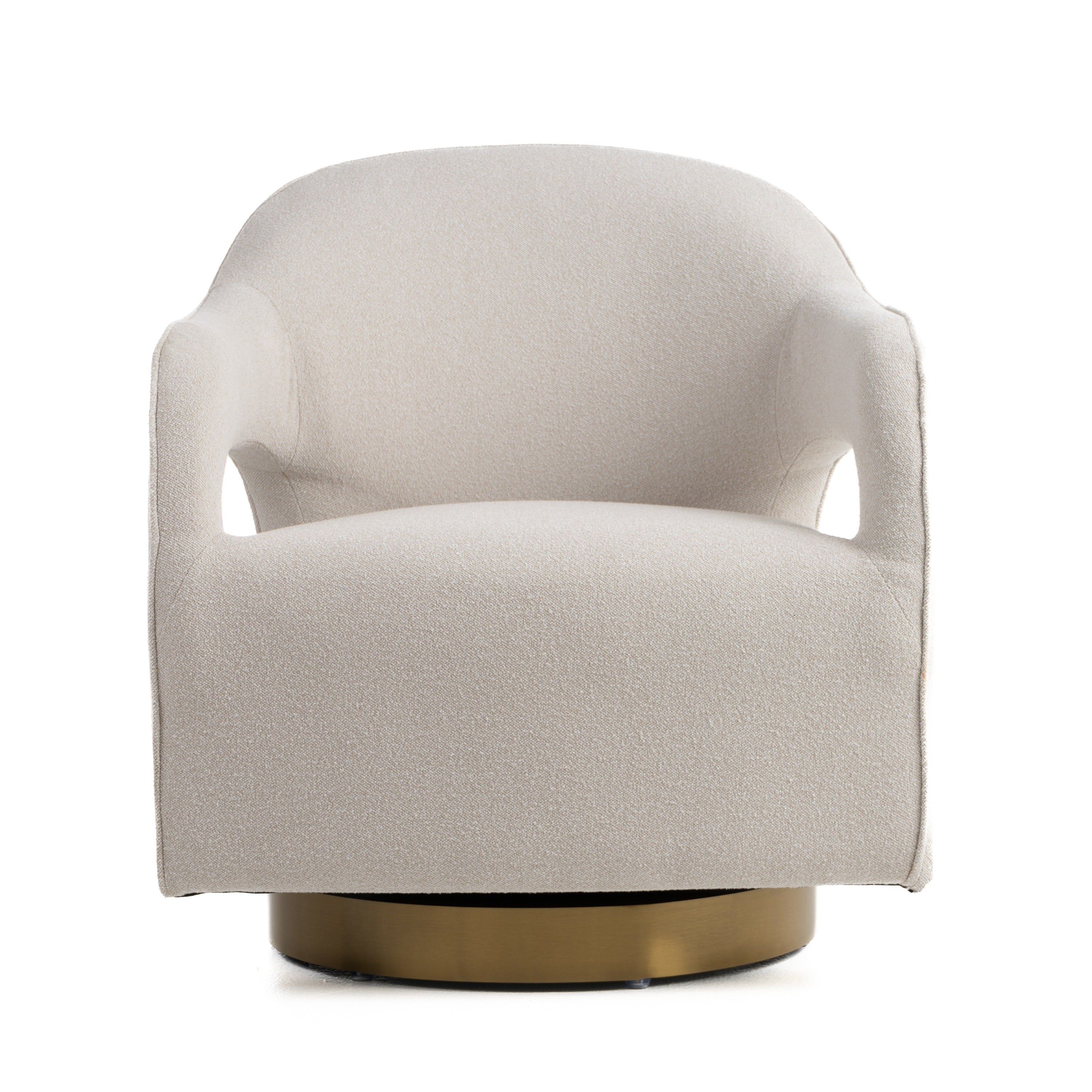 Modrest Worley - Modern Beige Fabric & Gold Swivel Accent Chair is an elegant and contemporary armchair designed for modern interiors. This chair features a swivel base in a luxurious matte gold finish, paired with soft beige upholstery made from 100% polyester fabric. The frame is constructed from stainless steel and manufactured wood, ensuring durability and stability. With its flared arms, cushioned back, and pocket spring seat, the chair offers both comfort and style, making it a perfect addition to any living space.