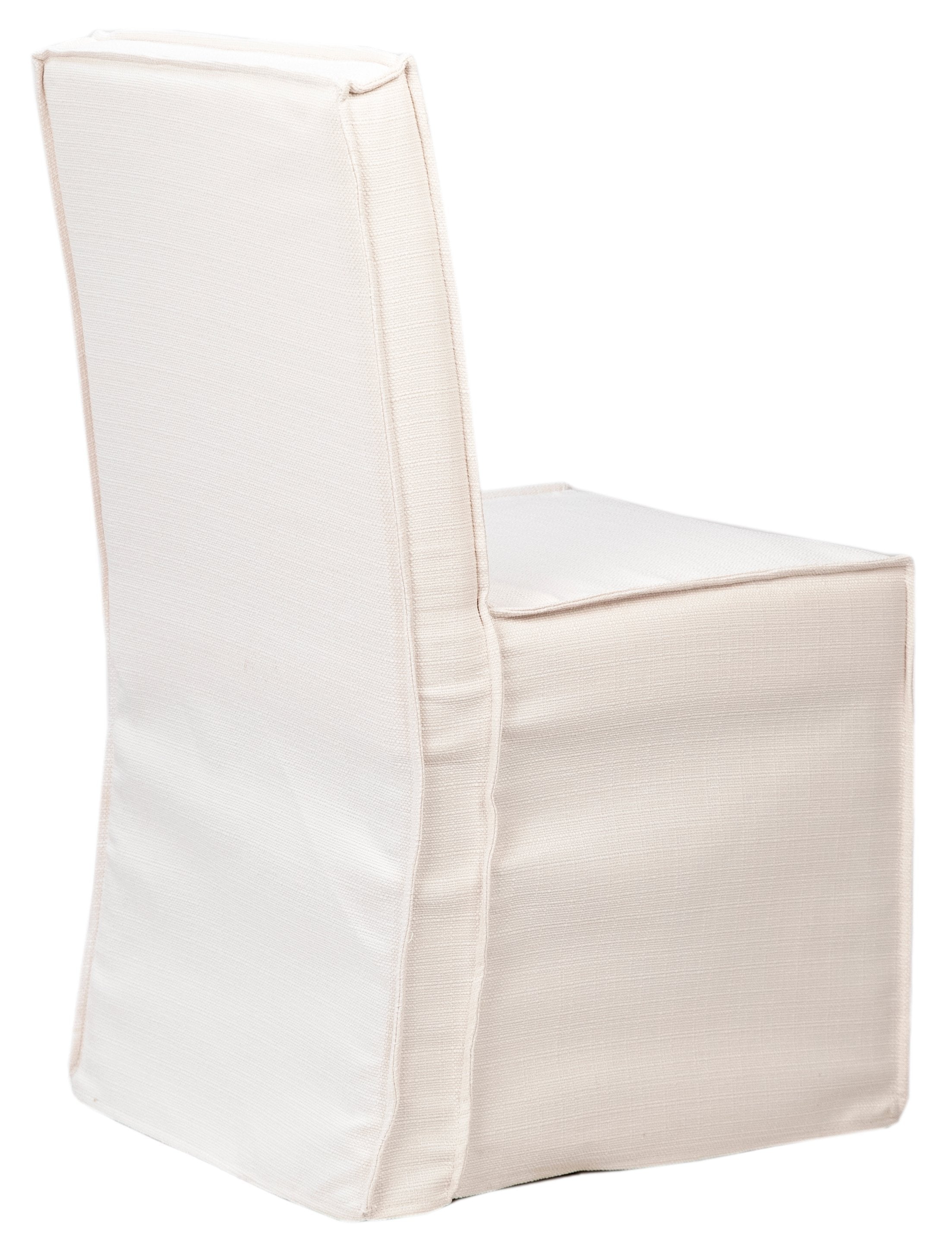Draped in a natural white cotton blend slipcover, this armless dining chair brings a classic-meets-modern feel to your dining room. Featuring a hardwood frame, generously padded seat, and French seams in the front and along the back. This dining chair is the perfect staple in your dining space for casual and formal occasions alike.
