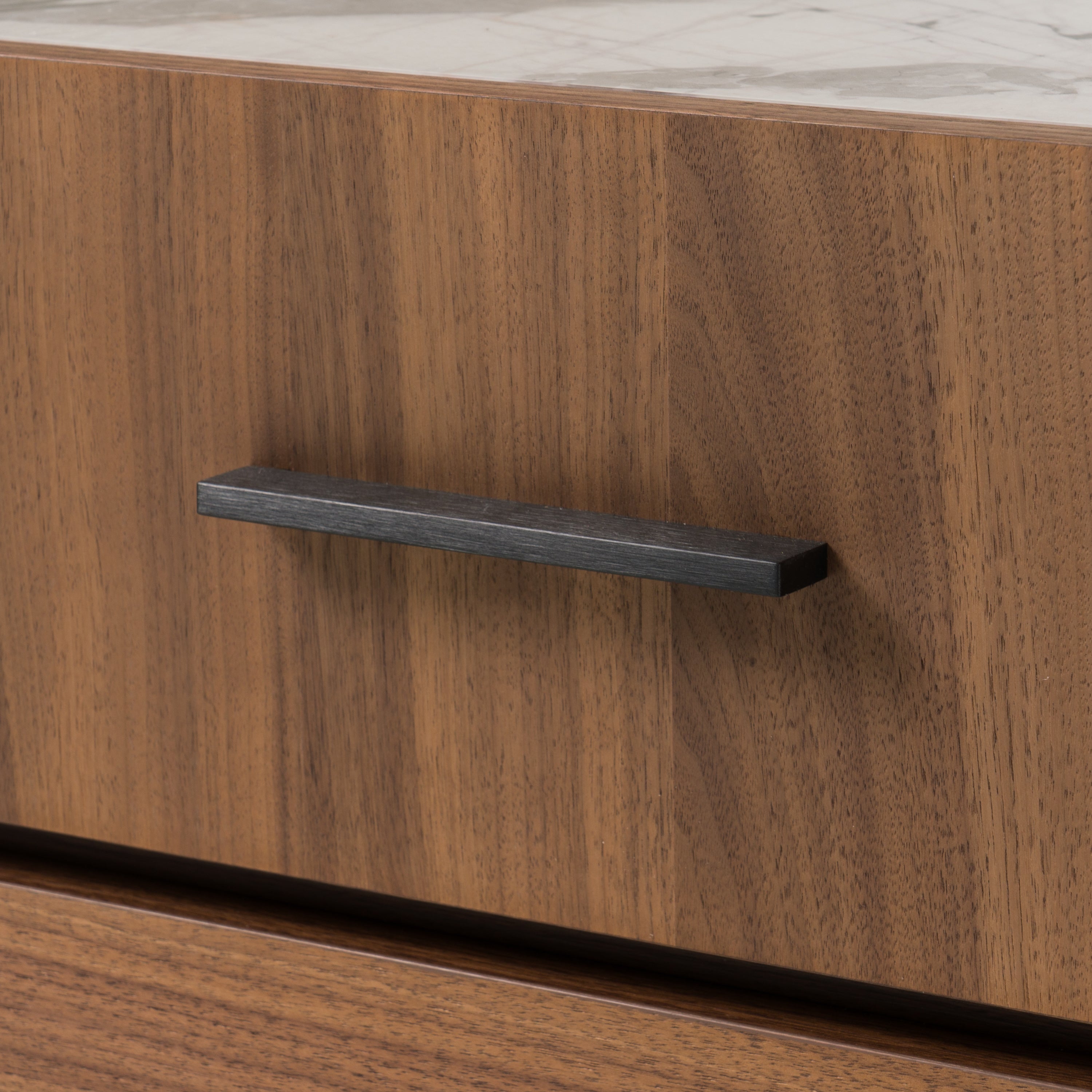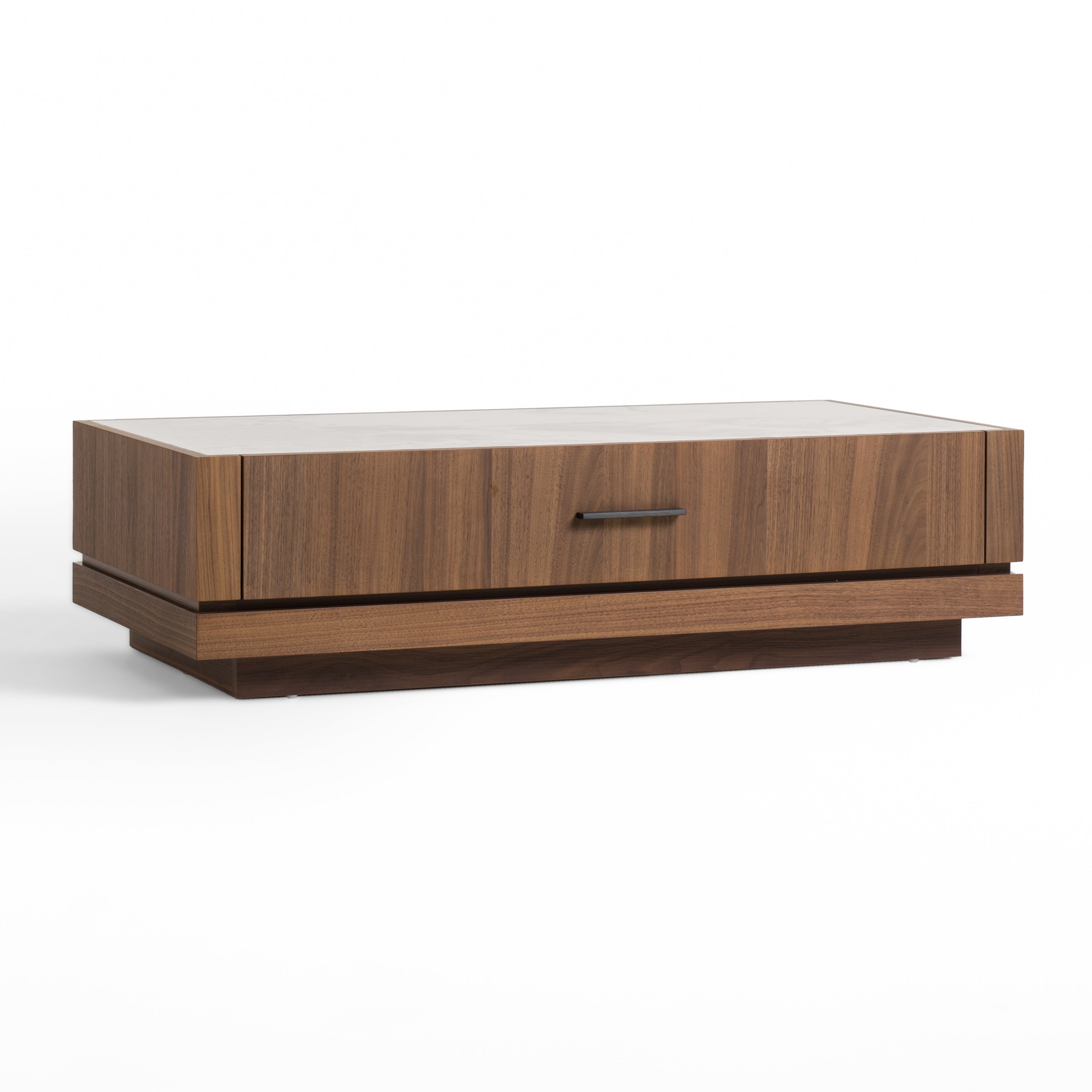 The Nova Domus Bailey Modern Walnut Rectangular Coffee Table is a stunning and contemporary furniture piece designed to elevate the aesthetic of any living room or lounge area. Crafted with a sleek and durable walnut veneer finish, this coffee table exudes elegance and sophistication. Its rectangular shape offers ample surface space for placing beverages, books, and decorative items. The unique design features a floating shelf underneath, providing additional storage and display options. The table's sturdy construction ensures long-lasting durability, while the minimalist metal legs add a touch of modernity. With its seamless integration of style and functionality, the Nova Domus Bailey coffee table is a perfect addition to any modern home decor.