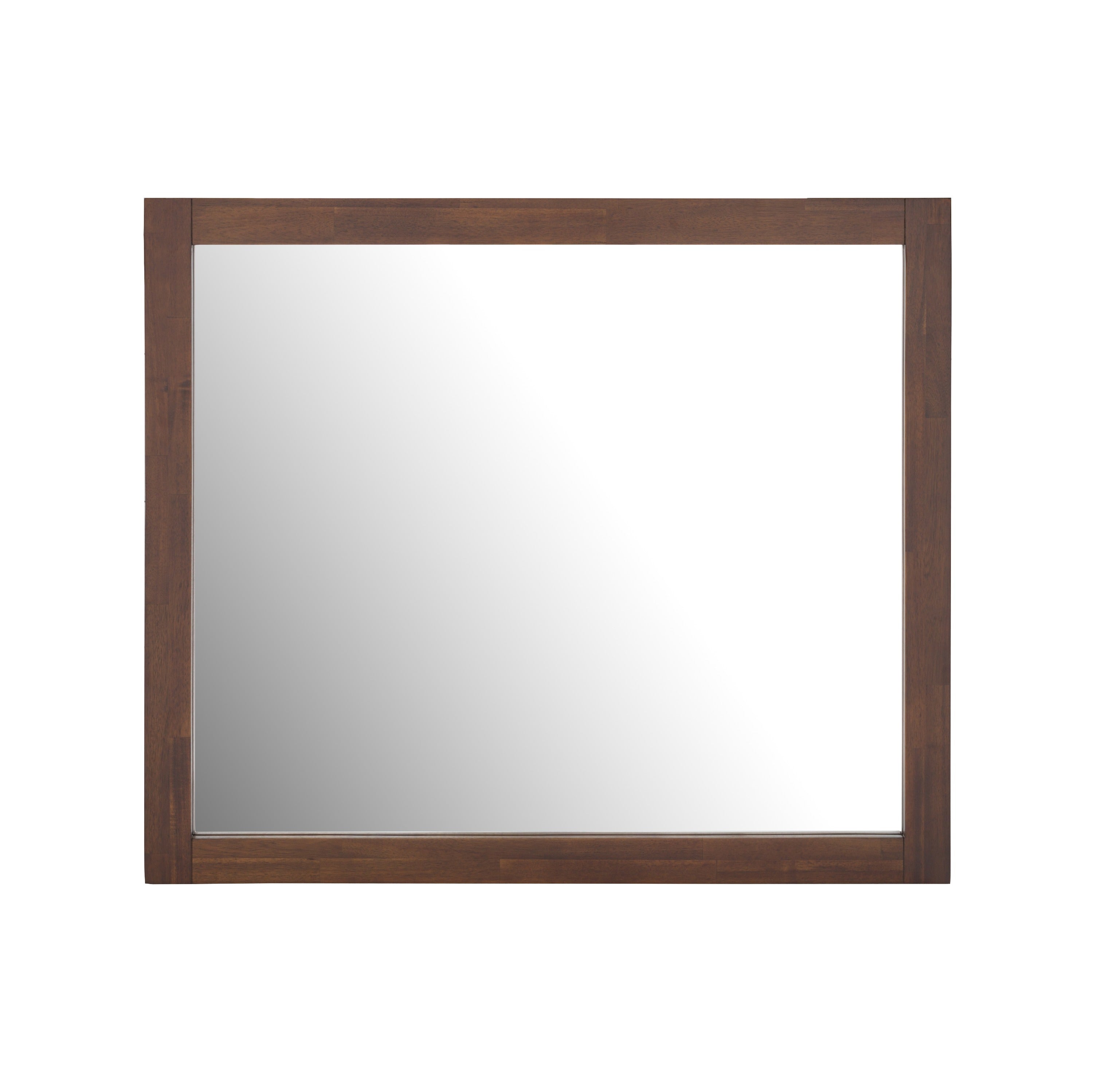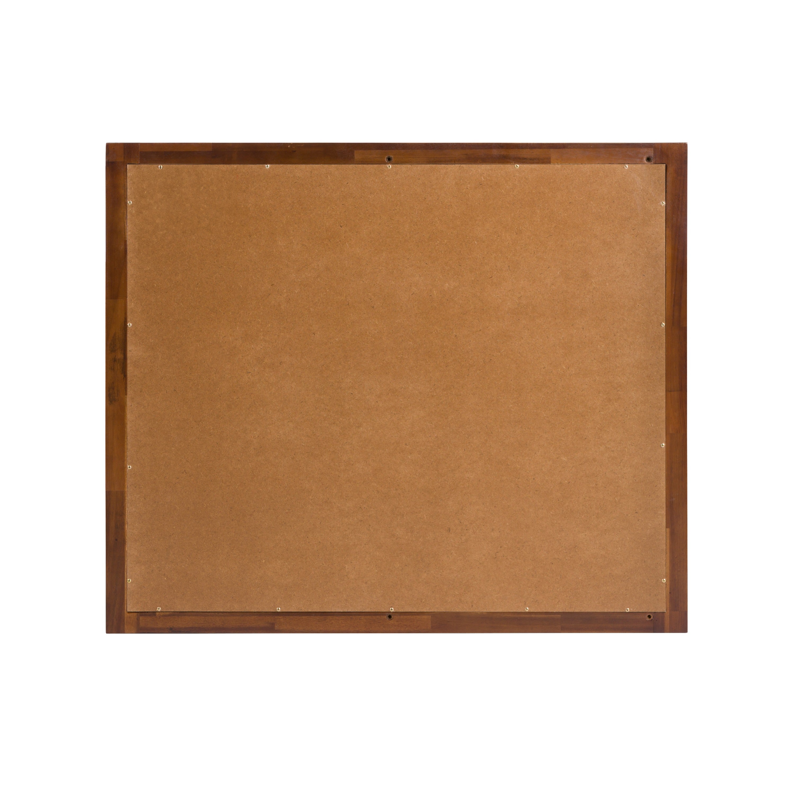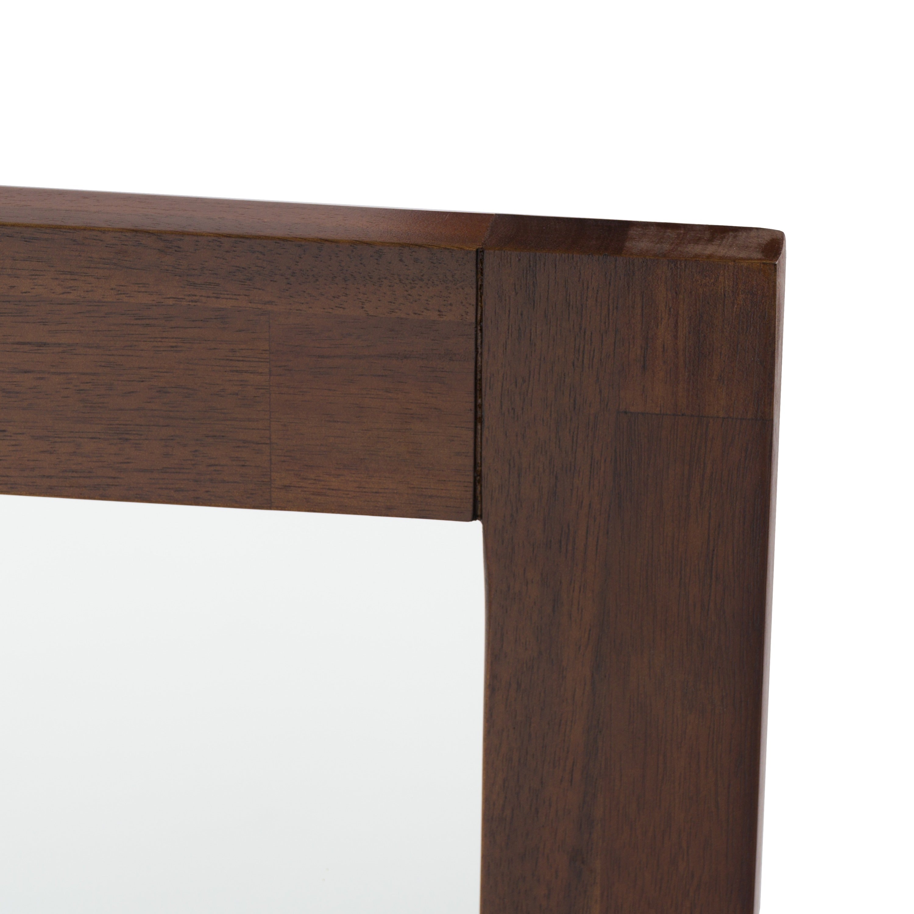 This contemporary mirror is constructed out of a solid acacia frame and finished with a warm, dark walnut finish.