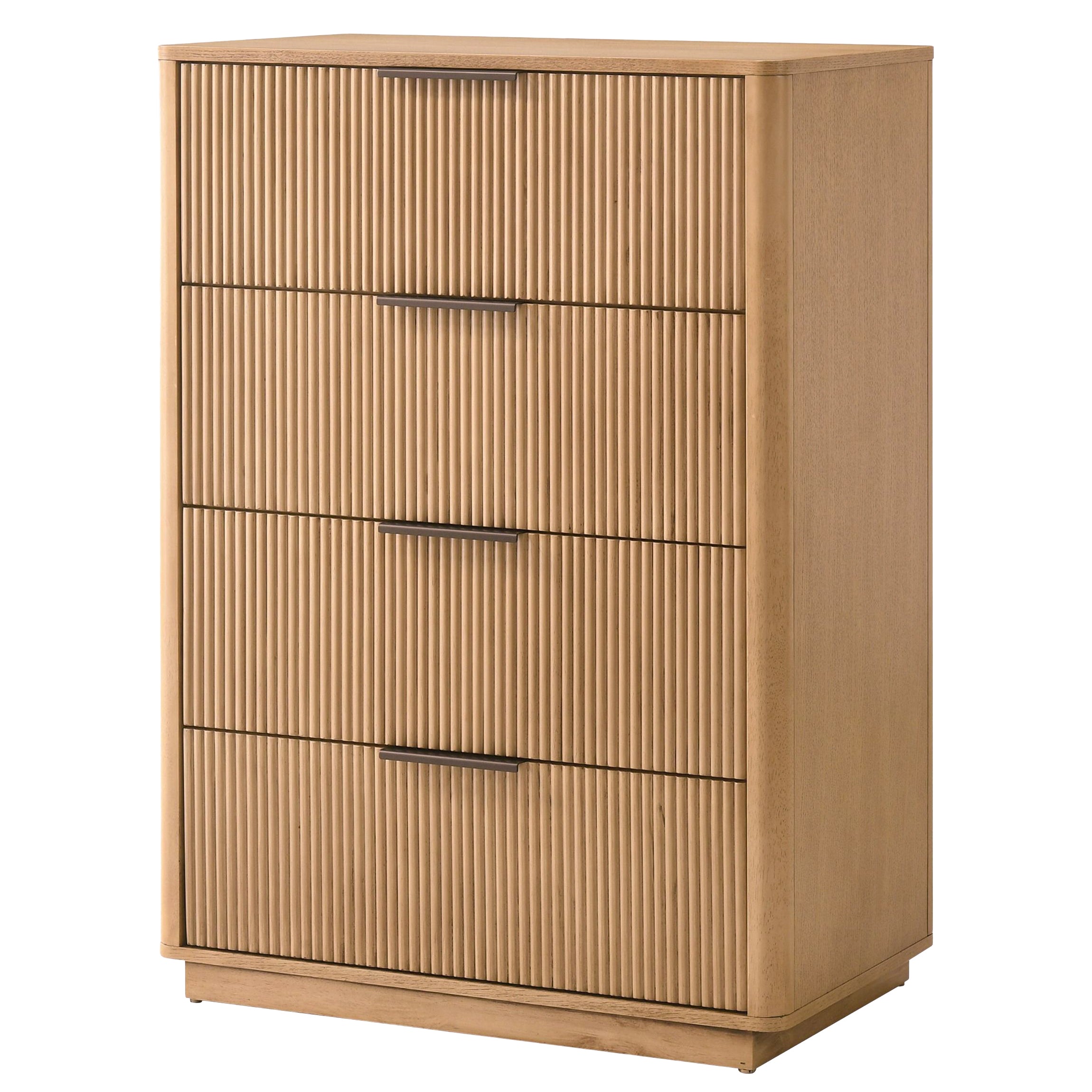 The Nova Domus Santa Monica Chest comes from our new Santa Monica Bedroom collection! This vertical chest dresser features four large drawers with a soft/self-closing mechanism and a simple black metal handle. The Santa Monica is made from solid rubberwood with a white Oak veneer finish all over. This piece combines excellent quality material and suburb design that makes it a wonderful addition in any bedroom space. The Santa Monica collection also includes a bed, nightstands, dresser and mirror all with the same wood finish!