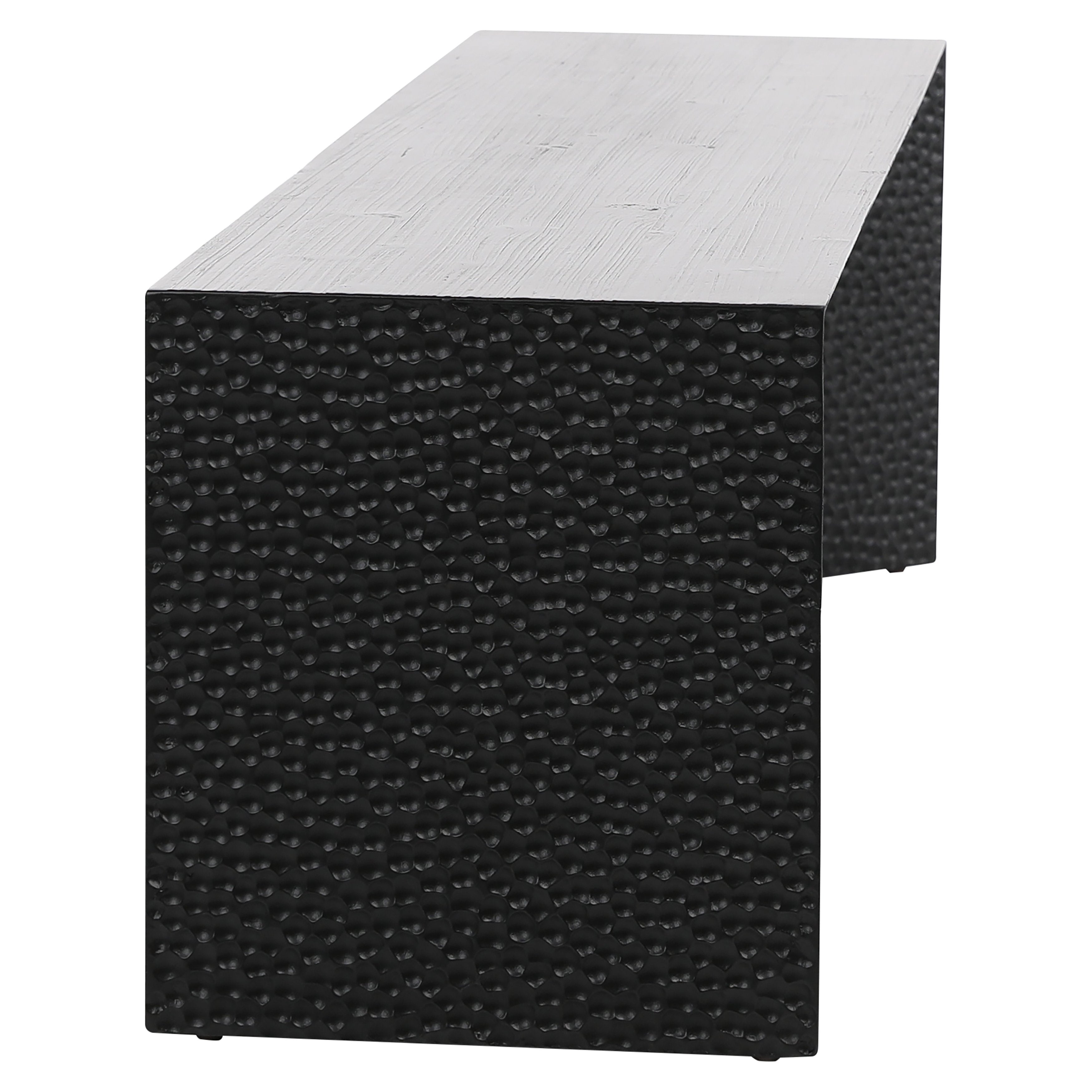 Beachy breezes are joined with contemporary style in this charming modern dining bench. Featuring a unique beveled texture pattern around all sides that begs to be touched. Measuring 60 in length, this simple silhouette is made from pine wood in a rich, black sealed finish.