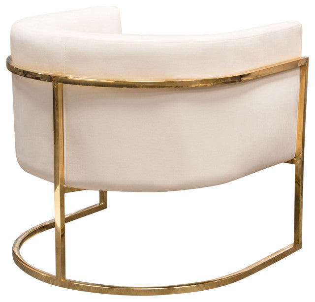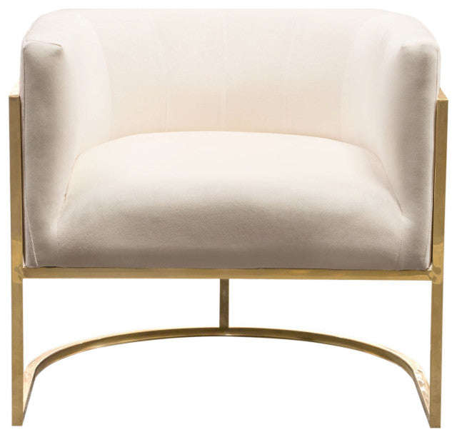 Pandora Accent Chair With Stainless Steel Frame, Cream Velvet By Diamond Sofa
