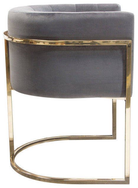 Pandora Dining Chair in Grey Velvet with Polished Gold Frame By Diamond Sofa