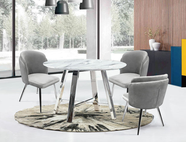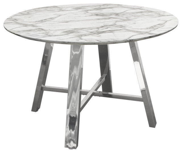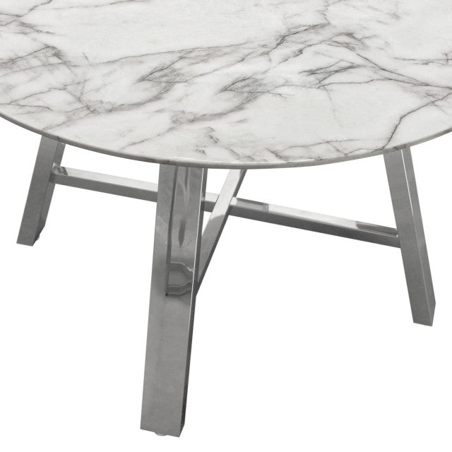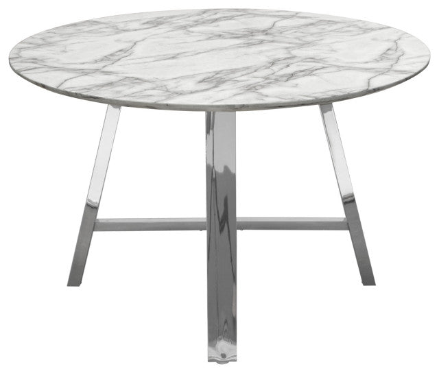 Paris 47" Round Dining Table With Faux Marble Top and Chrome Base By Diamond Sofa