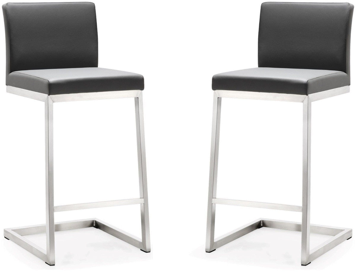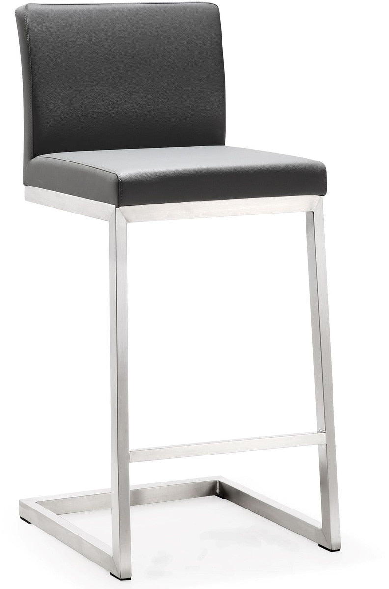 Parma Grey Performance Vegan Leather and Stainless Steel Counter Stool - Set of 2 Model: TOV-K3606
