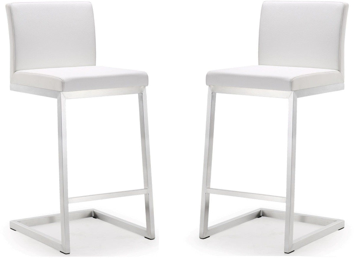 Parma White Performance Vegan Leather and Stainless Steel Counter Stool - Set of 2 Model: TOV-K3605