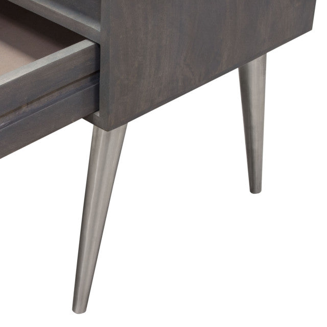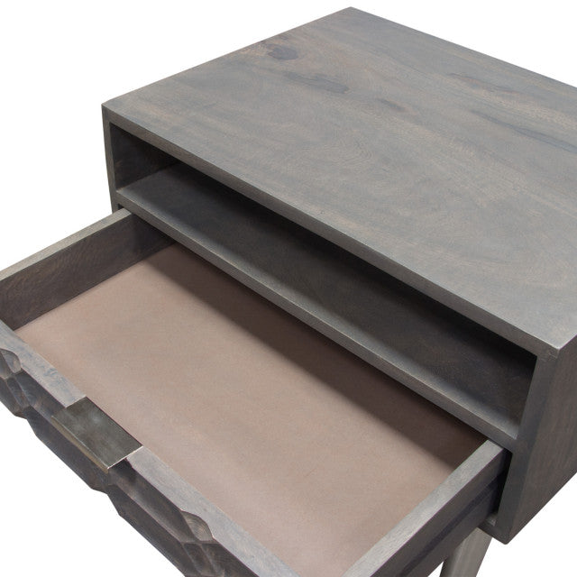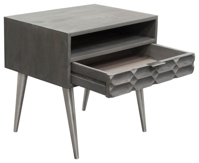 Petra Solid Mango Wood 1-Drawer Accent Table, Smoke Gray Finish With Nickel Legs By Diamond Sofa