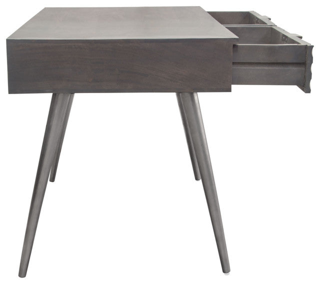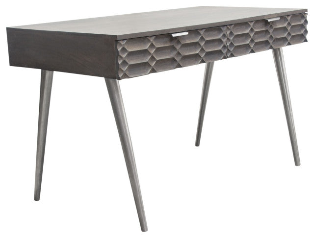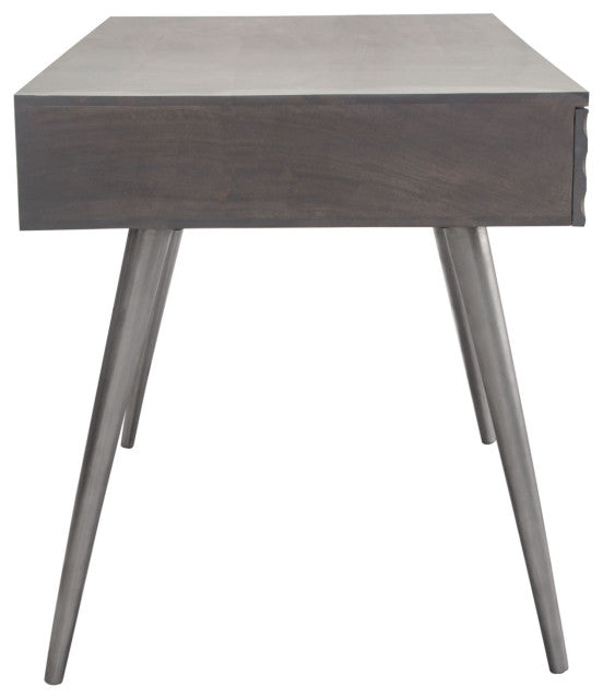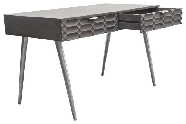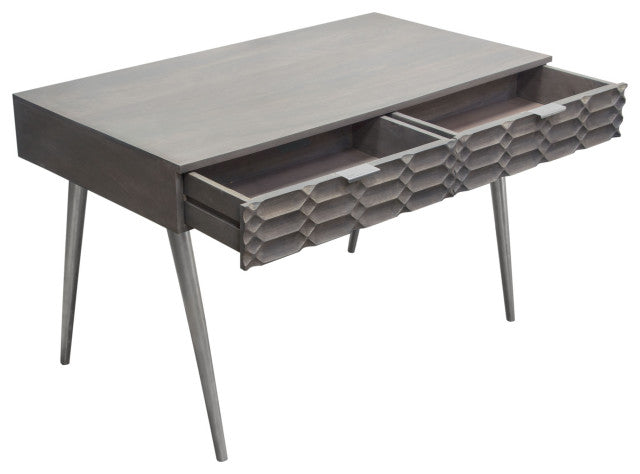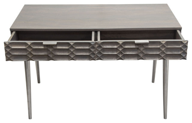 Petra Solid Mango Wood 2-Drawer Writing Desk, Smoke Gray Finish With Nickel Legs By Diamond Sofa