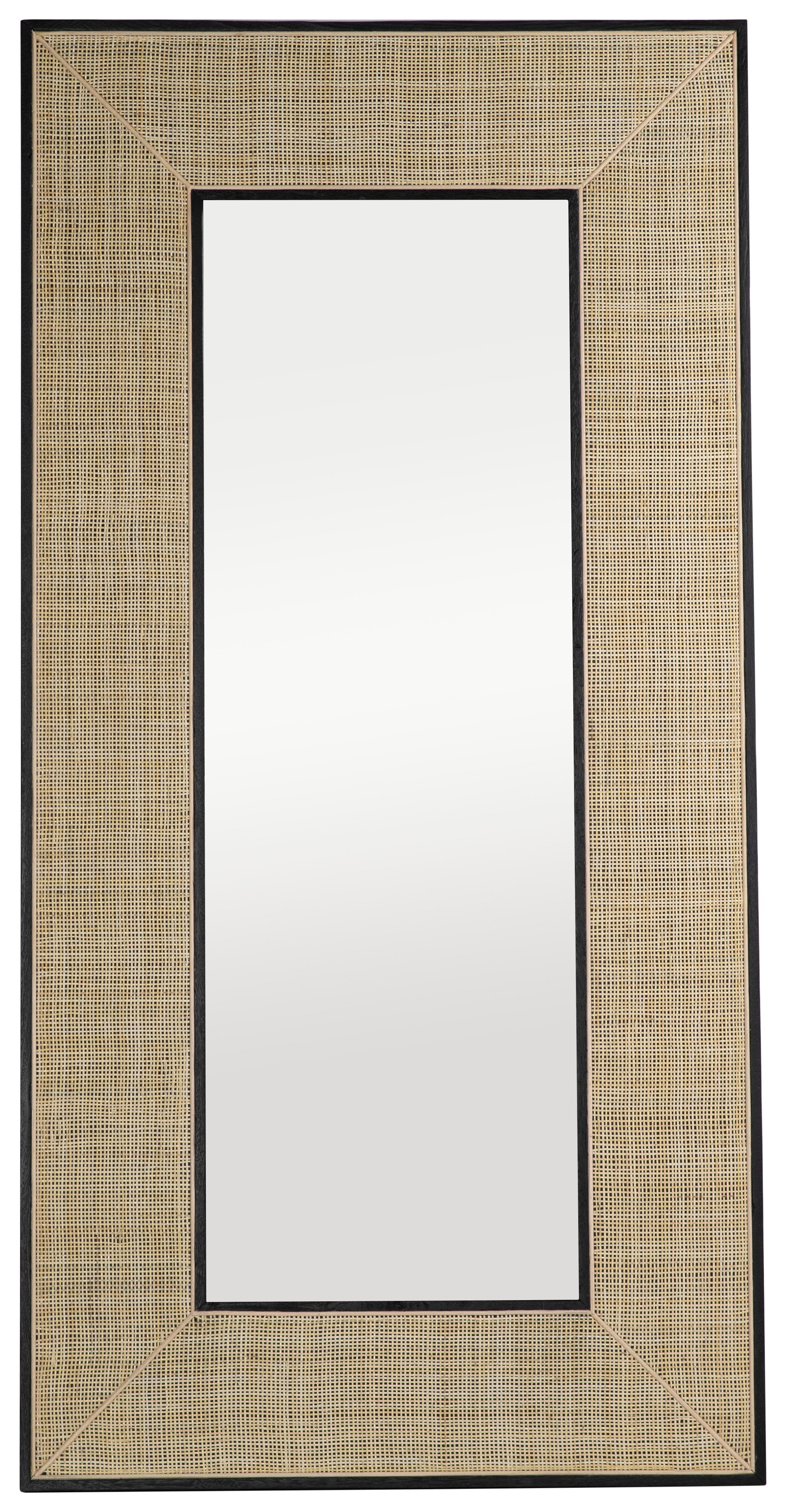 A reflection of your good taste, beautifully handmade with natural rattan and black teak wood around a flat polished mirror. The natural materials beautifully set off the mirror, complementing an organic or coastal theme setting perfectly. It measures 79" tall and 31" to infuse your home with texture and style.