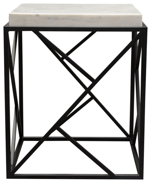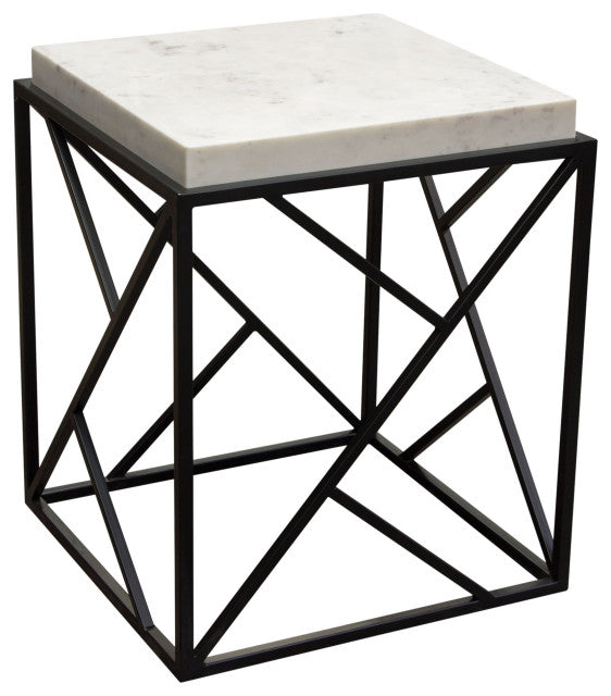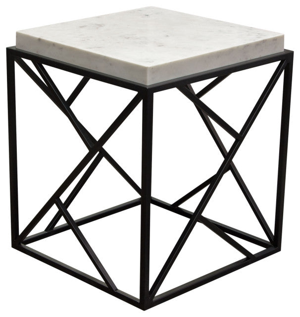 Plymouth Square Accent Table With Genuine Gray Marble Top and Black Metal Base By Diamond Sofa