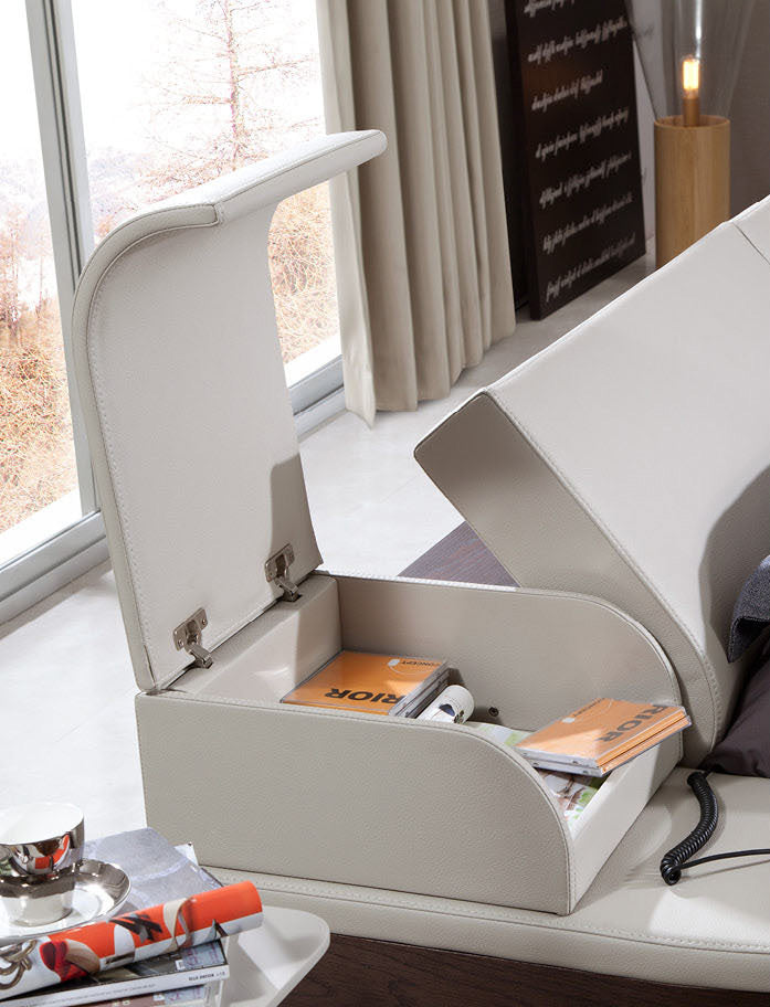 Portofino adjustable leatherette bed with built-in nightstands features a remote controlled headboard allowing you to position at your desired angle. The built-in nightstands have a flip open design revealing 3 small compartments for jewelry and a bigger compartment for other personal items. It has a wooden frame with a leatherette base top. Wooden legs provide stable support.