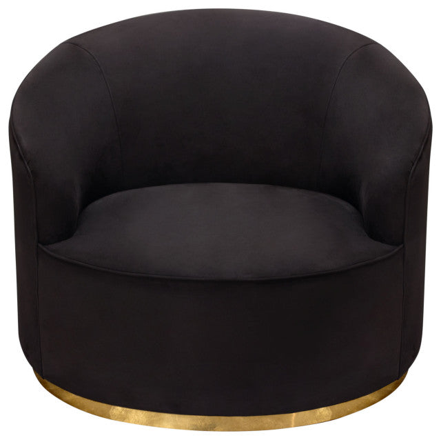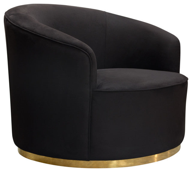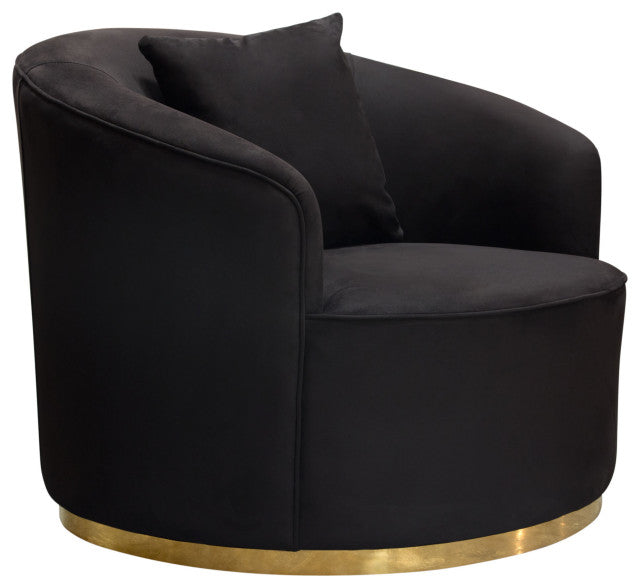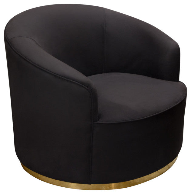 Raven Chair in Black Suede Velvet Brushed Gold Accent Trim By Diamond Sofa