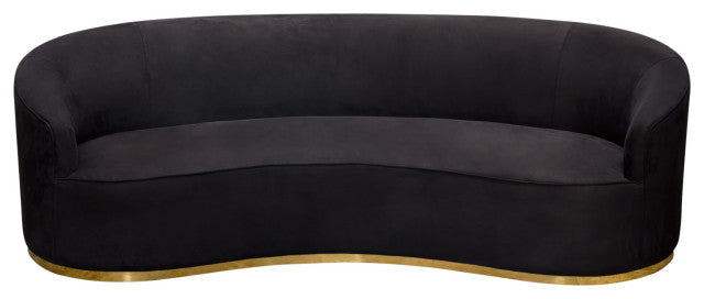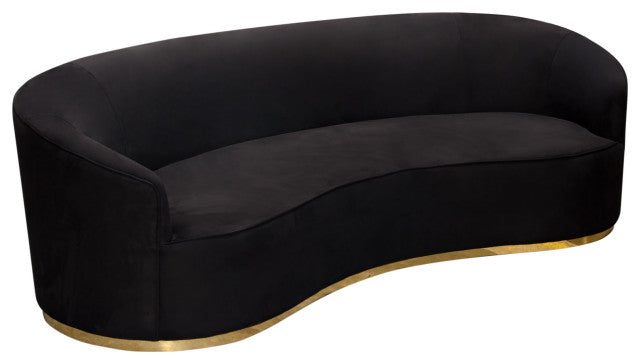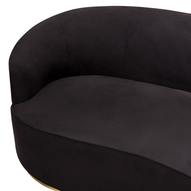 Raven Sofa in Black Suede Velvet Brushed Gold Accent Trim By Diamond Sofa