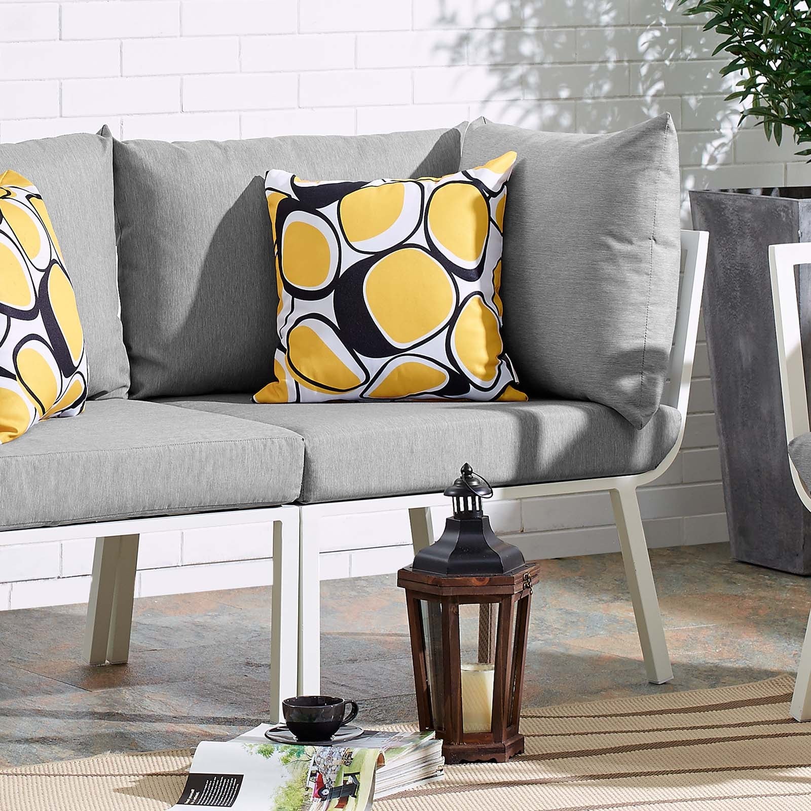 Refresh your outdoor decor with the Riverside Outdoor Patio Aluminum Corner Chair. Defined by a crisp, coastal style, this installment of the Riverside outdoor sectional sofa furniture collection features an open slatted back design, angled back legs, and plush 4" thick all-weather UV-resistant fabric cushions. Solidly constructed with a powder-coated aluminum frame, the Riverside outdoor corner chair will enhance the look of your patio, backyard, balcony, porch, deck, or poolside area. Includes foot caps. Chair Weight Capacity: 300 lbs