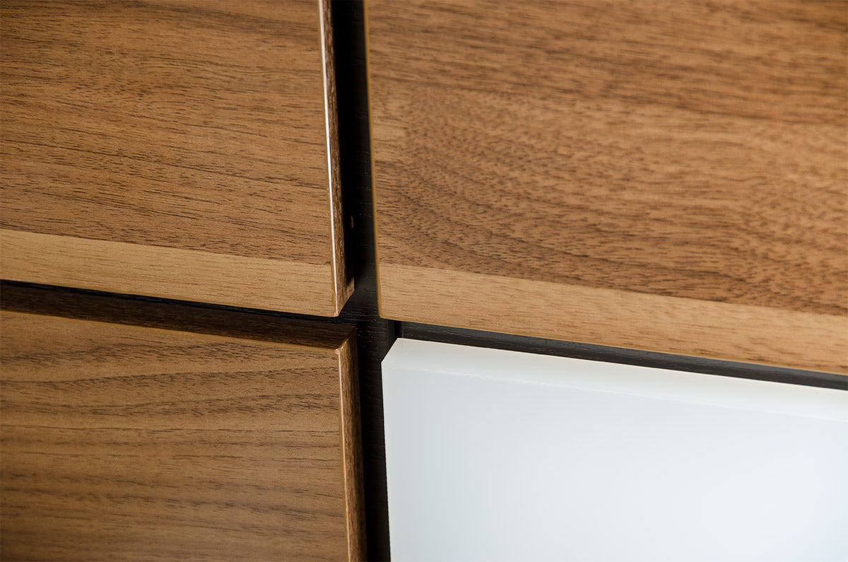 - Walnut wood grain veneer finish