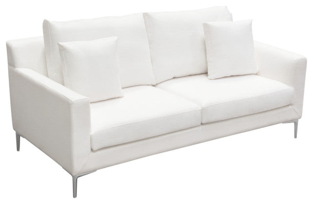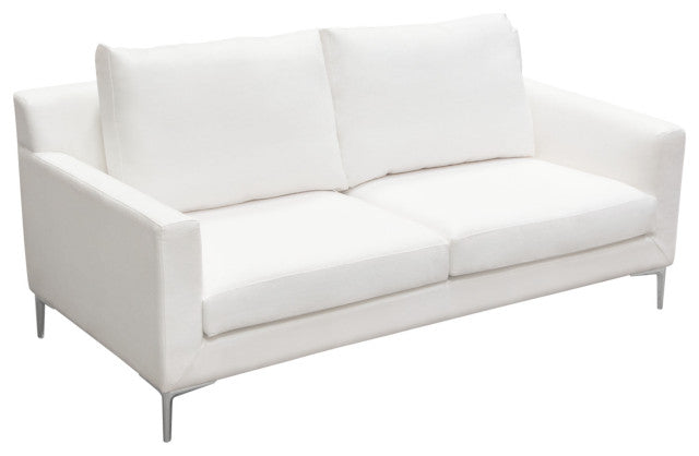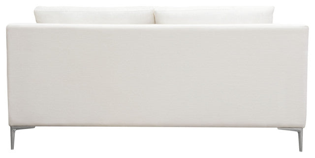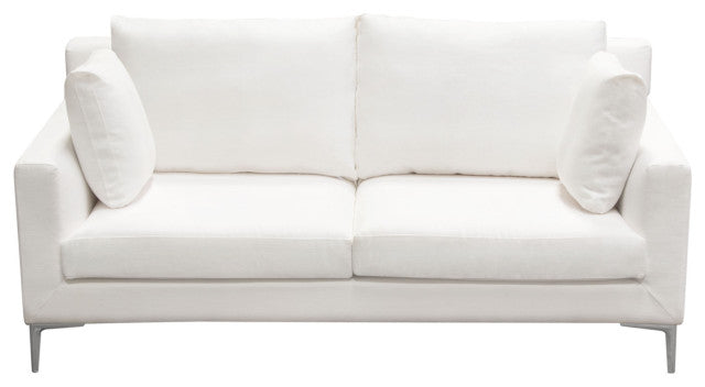 Seattle Loose Back Loveseat in White Linen Polished Silver Metal Leg By Diamond Sofa