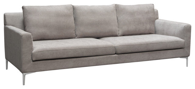 Seattle Loose Back Sofa in Grey Polyester Fabric Polished Silver Metal Leg By Diamond Sofa