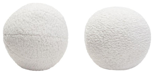 Set of (2) 10 Round Accent Pillows in White Faux Sheepskin By Diamond Sofa